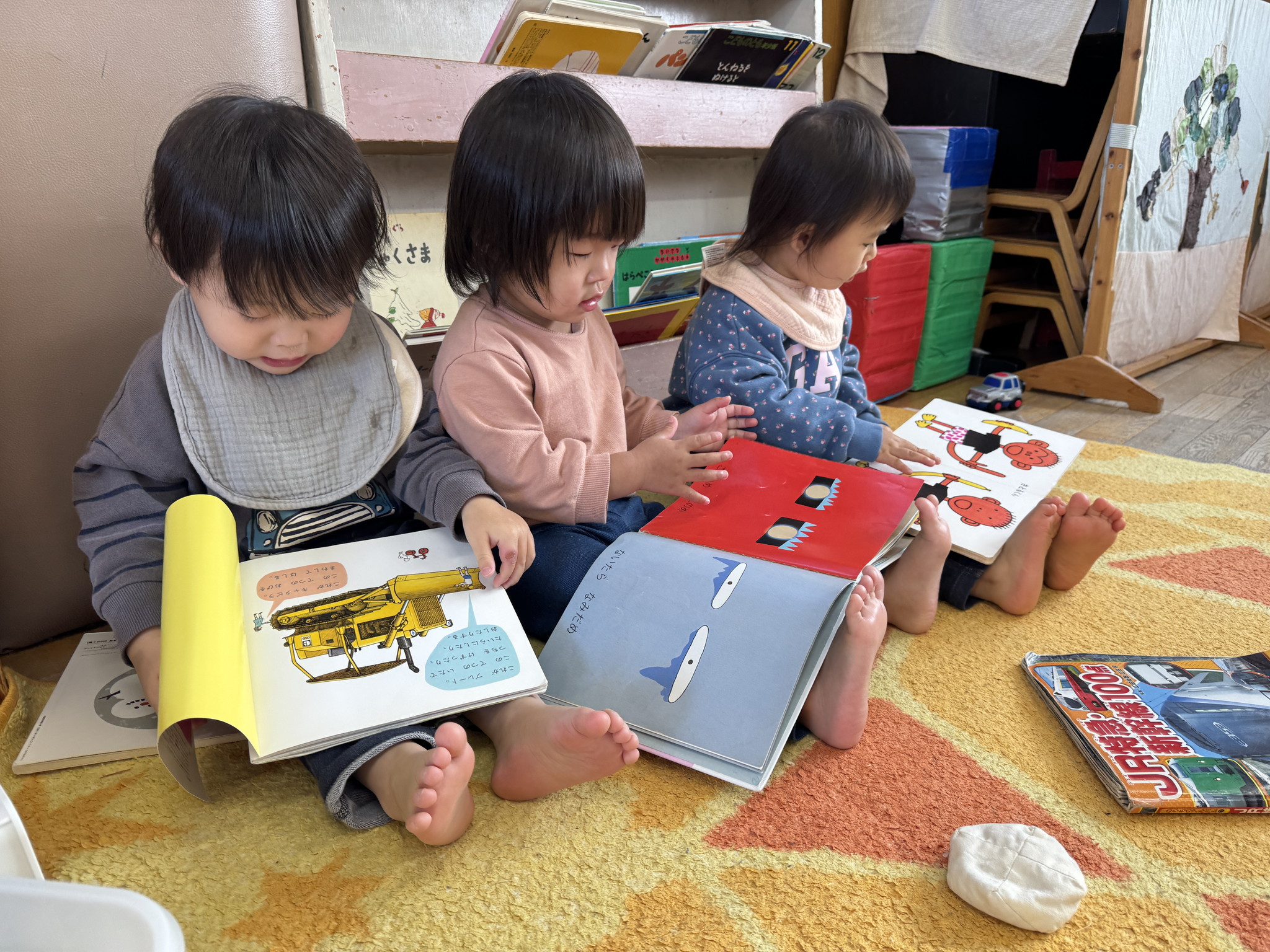 【 ひよこ 】 2人で仲良く絵本TIME 私はじっくり絵本TIME いただきまーす! くるくる上手に回すよ 手つなぎでお散歩♪ 園庭でも元気いっぱいあそびました 今年もありがとうございました! 来年もたくさんあそんでたくさん寝て楽しくすごせますように…♪