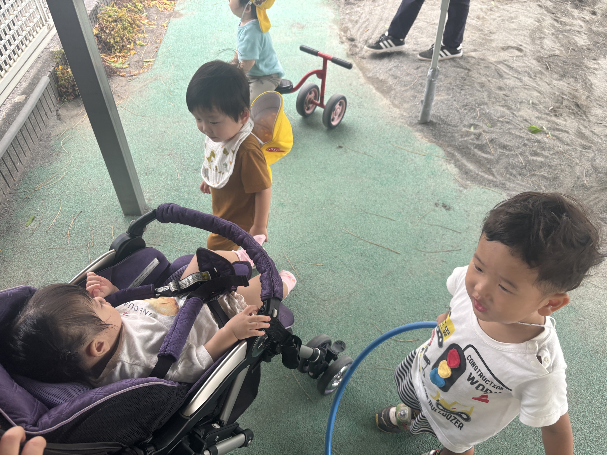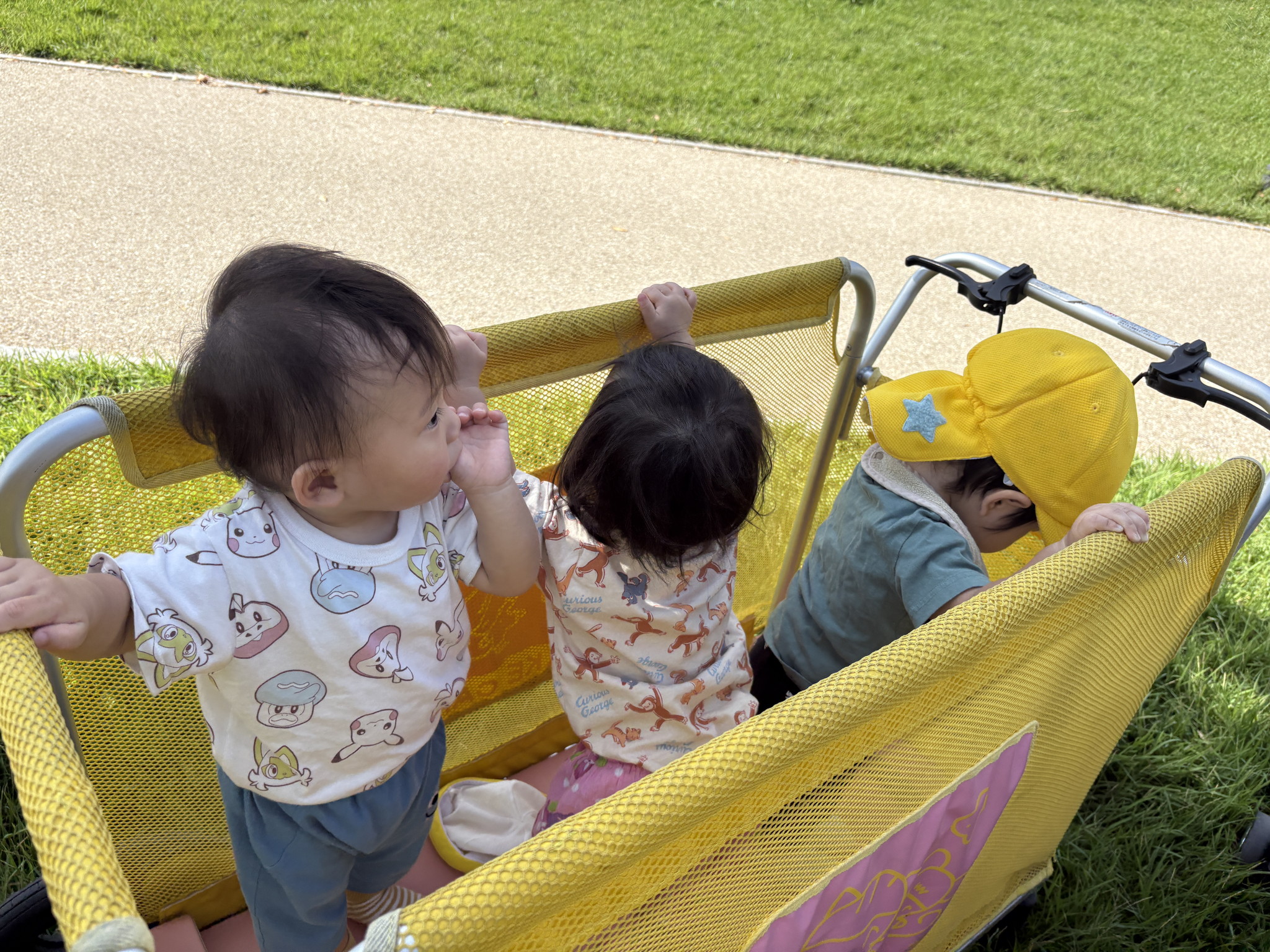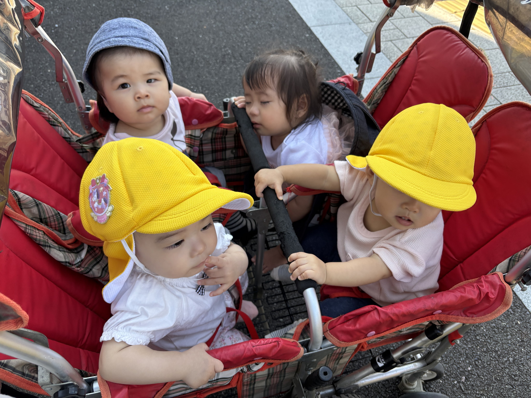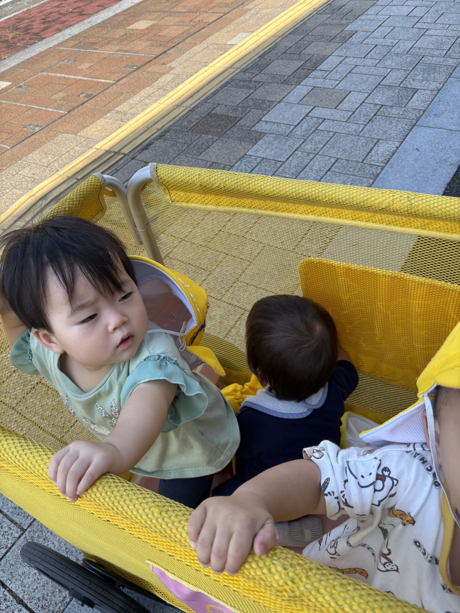 【 ひよこ 】 今日もみんなでお散歩♪バギーにもすっかり慣れてきました ひとりで立っちできたよ! すべり台が好きなボク バス、いた! ねぇね、きてくれた♡