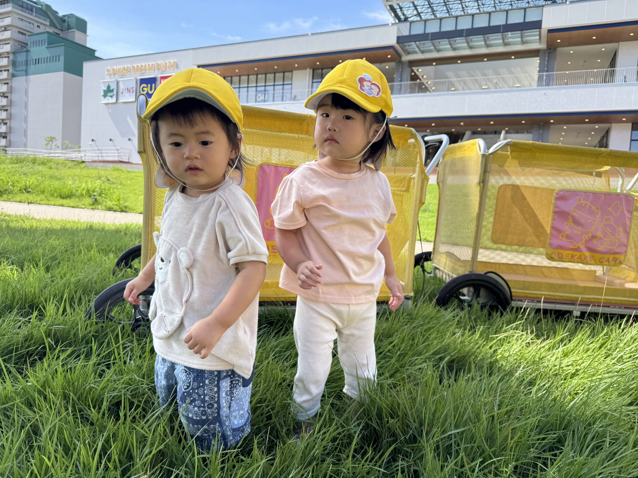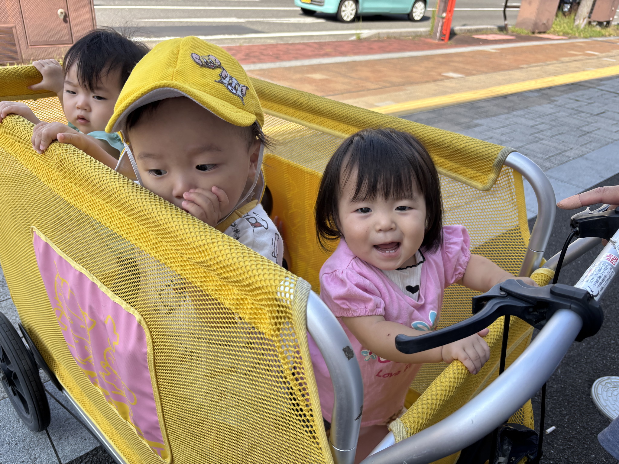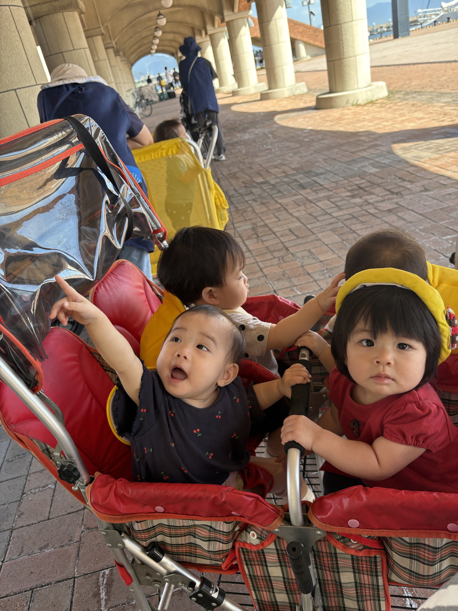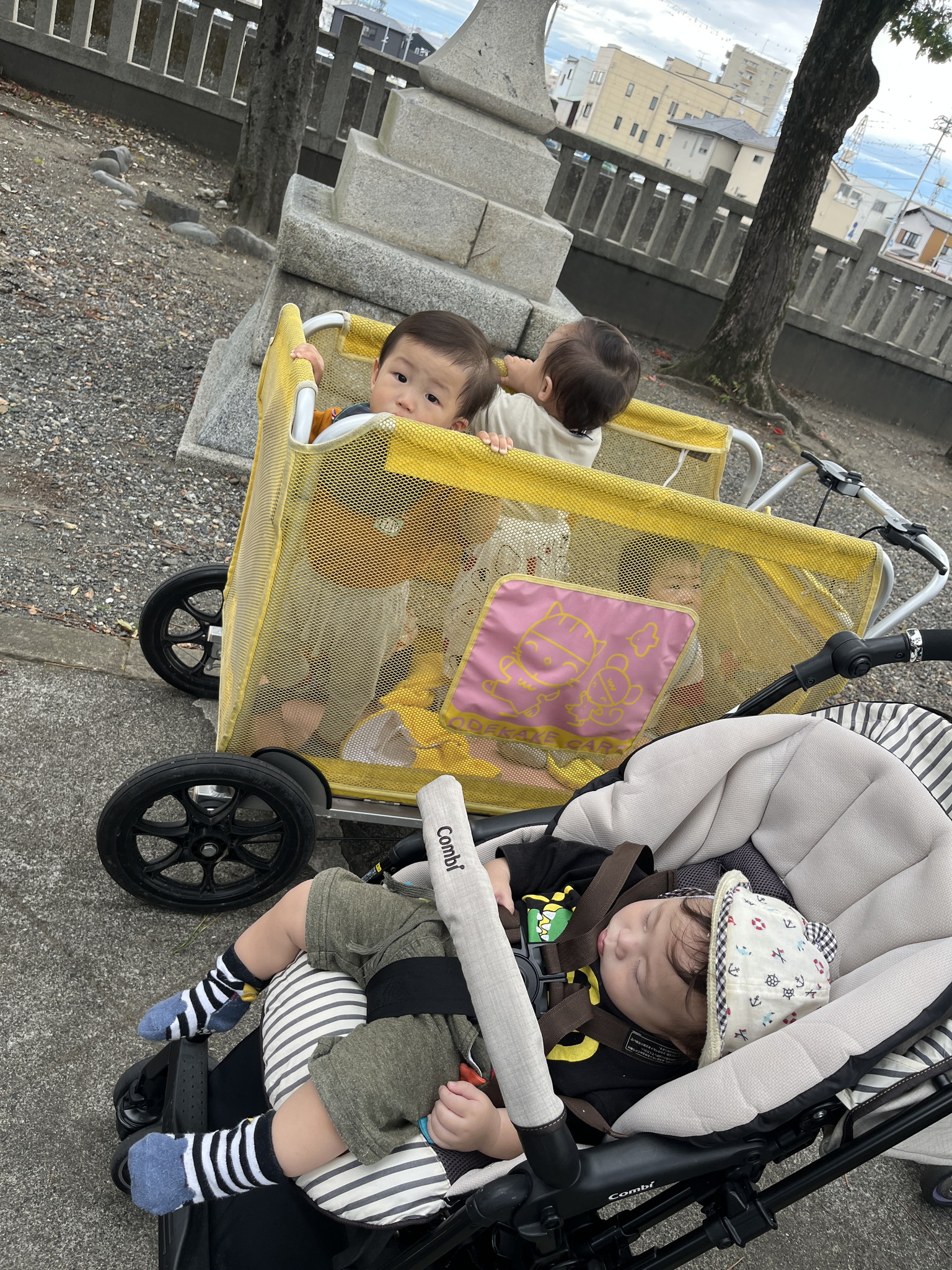 【 ひよこ 】 今日もみんなでお散歩♪バギーにもすっかり慣れてきました ひとりで立っちできたよ! すべり台が好きなボク バス、いた! ねぇね、きてくれた♡