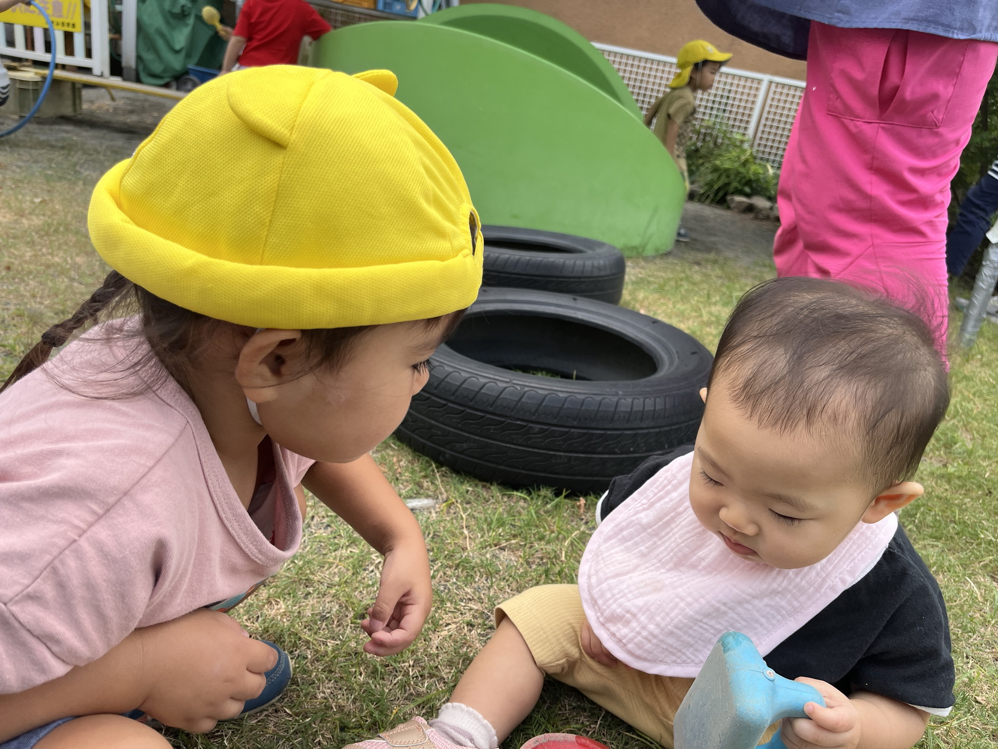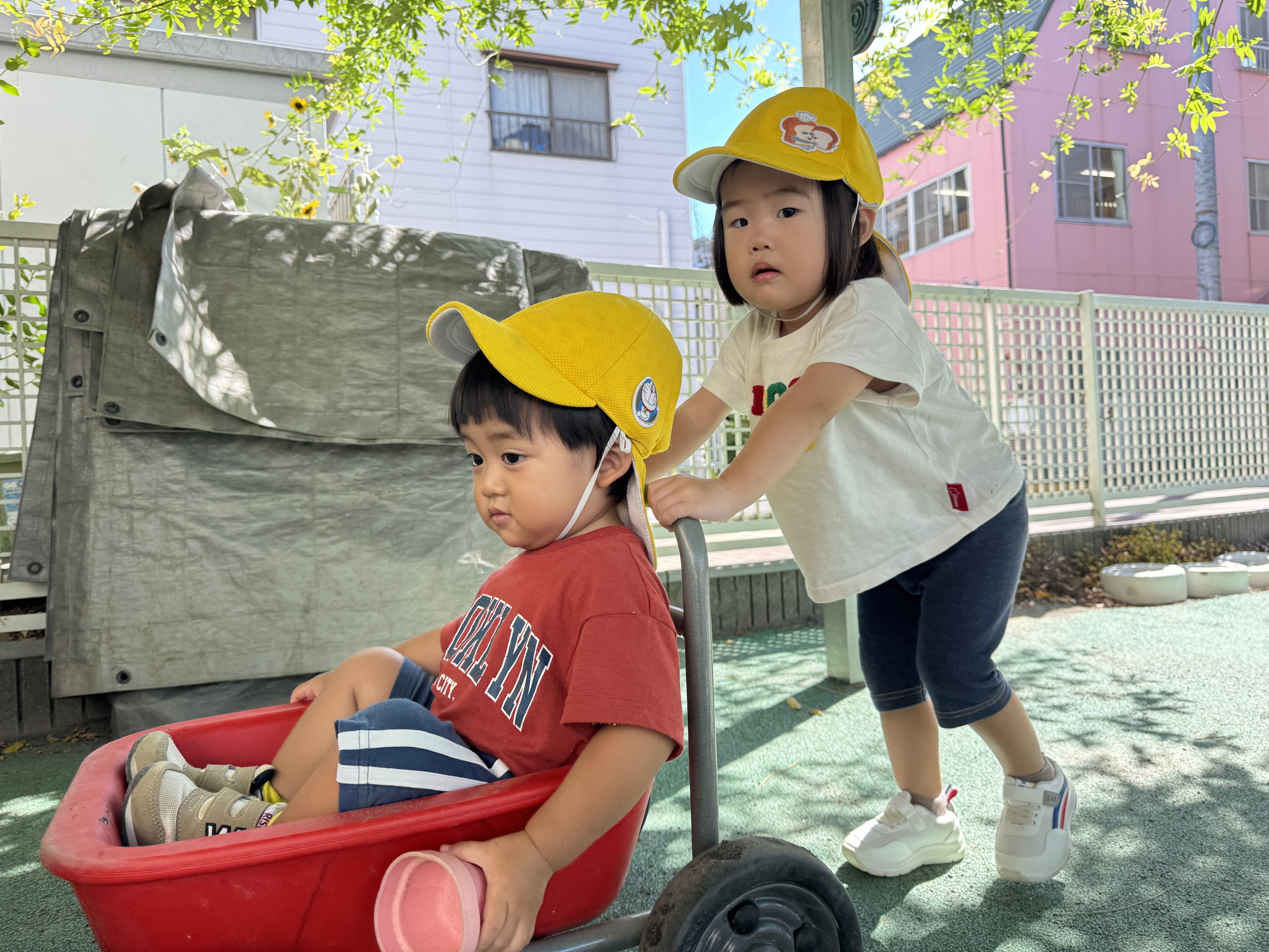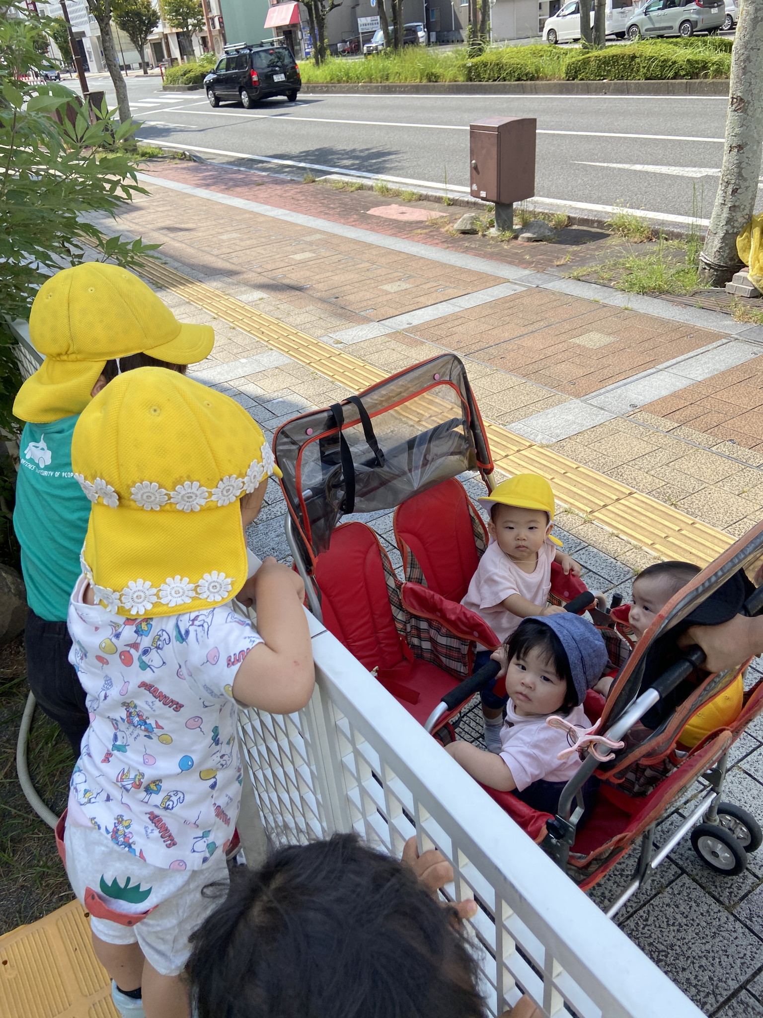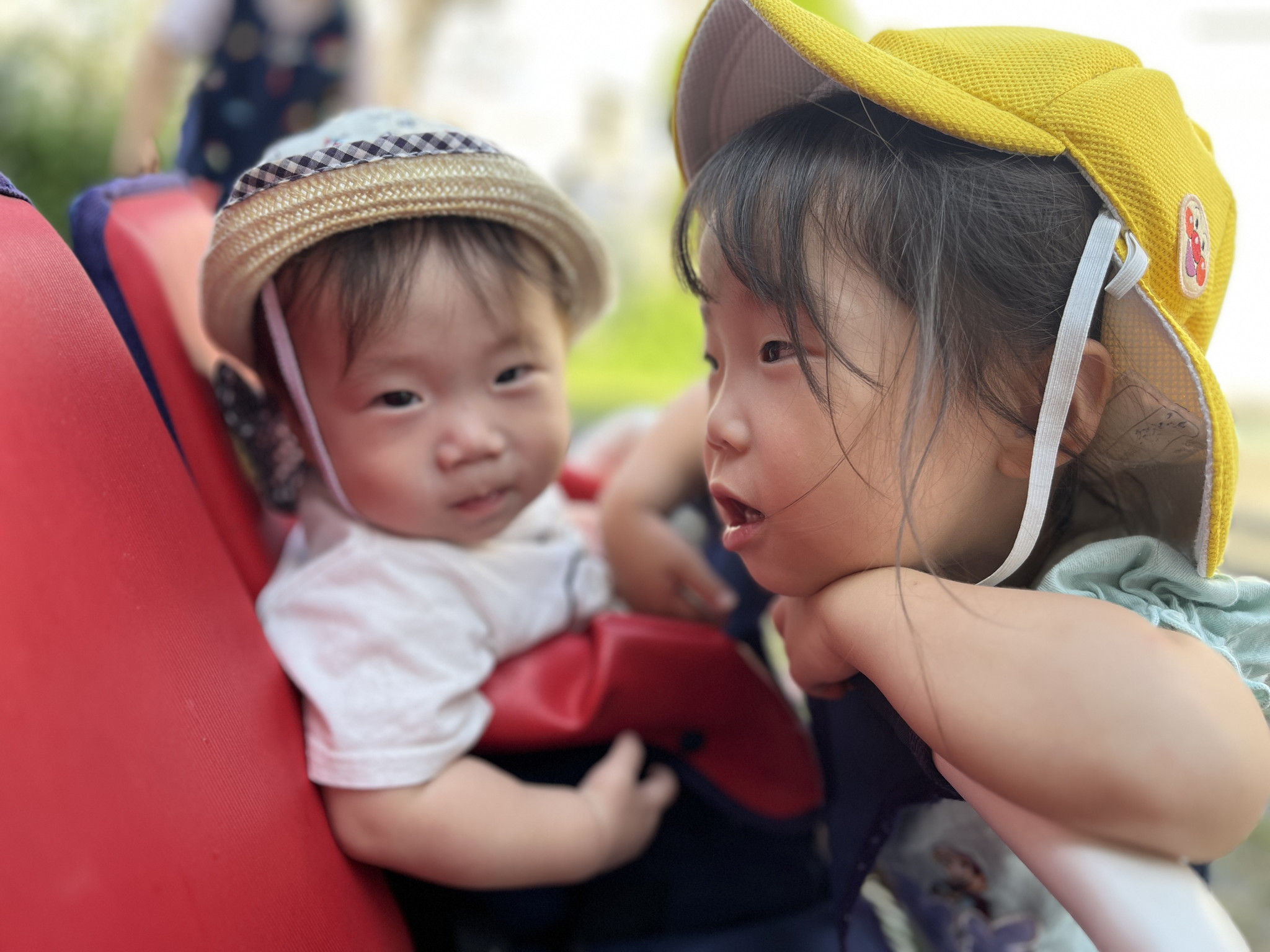 【 ひよこ 】 今日もみんなでお散歩♪バギーにもすっかり慣れてきました ひとりで立っちできたよ! すべり台が好きなボク バス、いた! ねぇね、きてくれた♡
