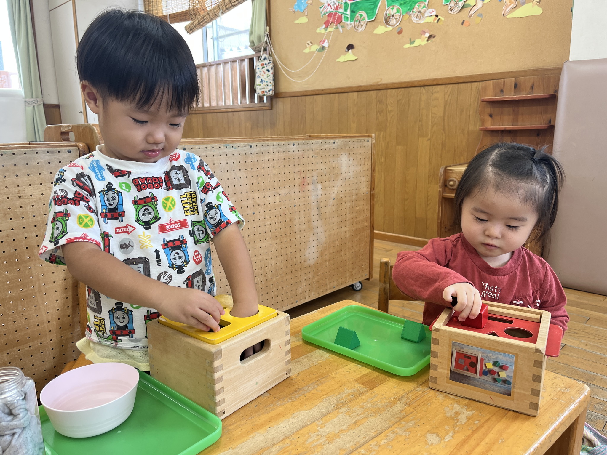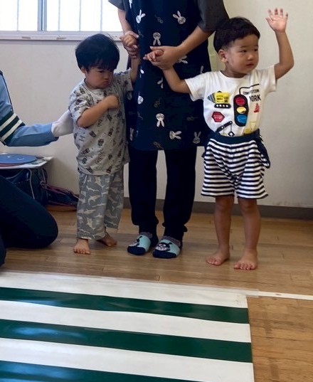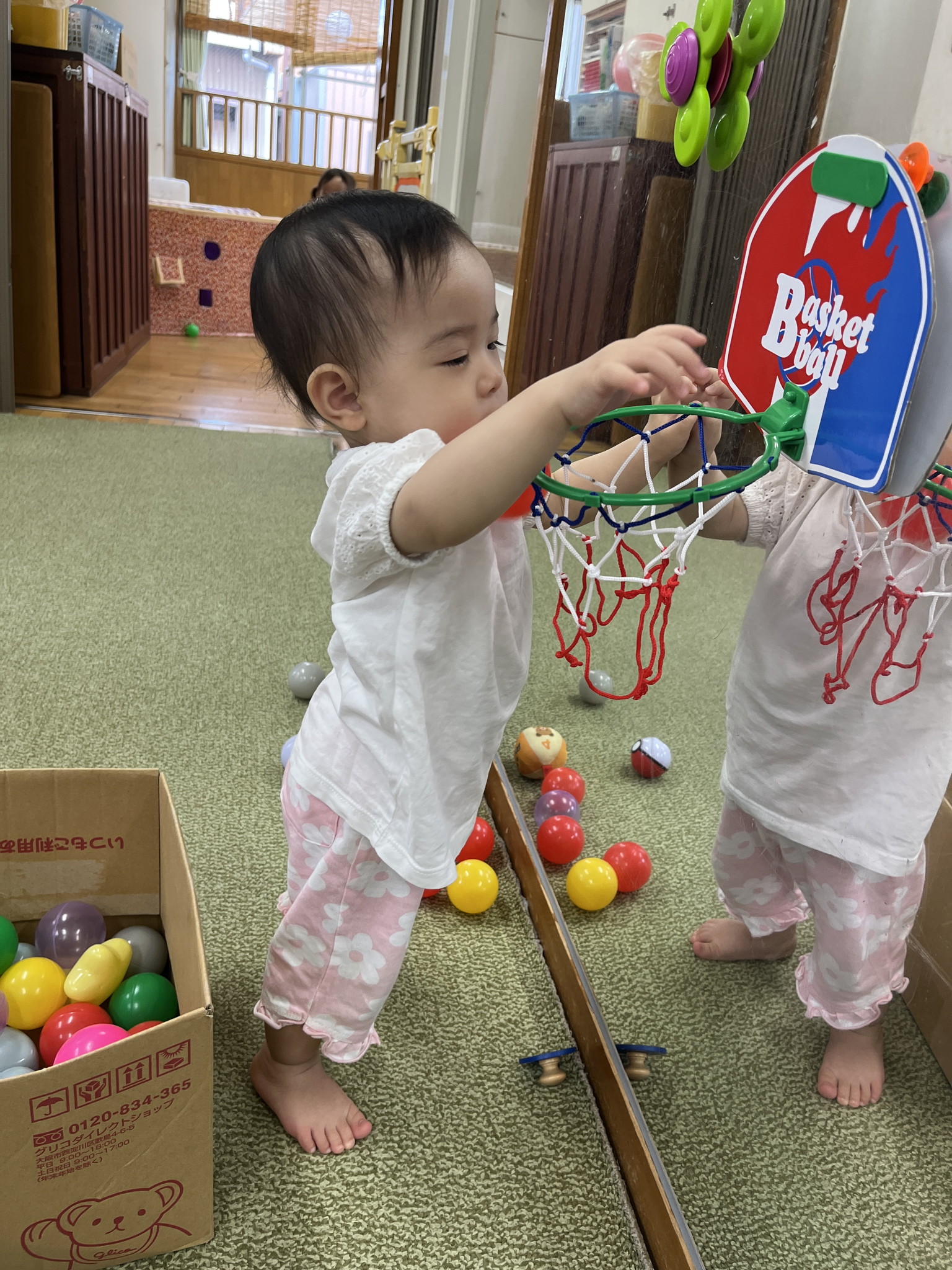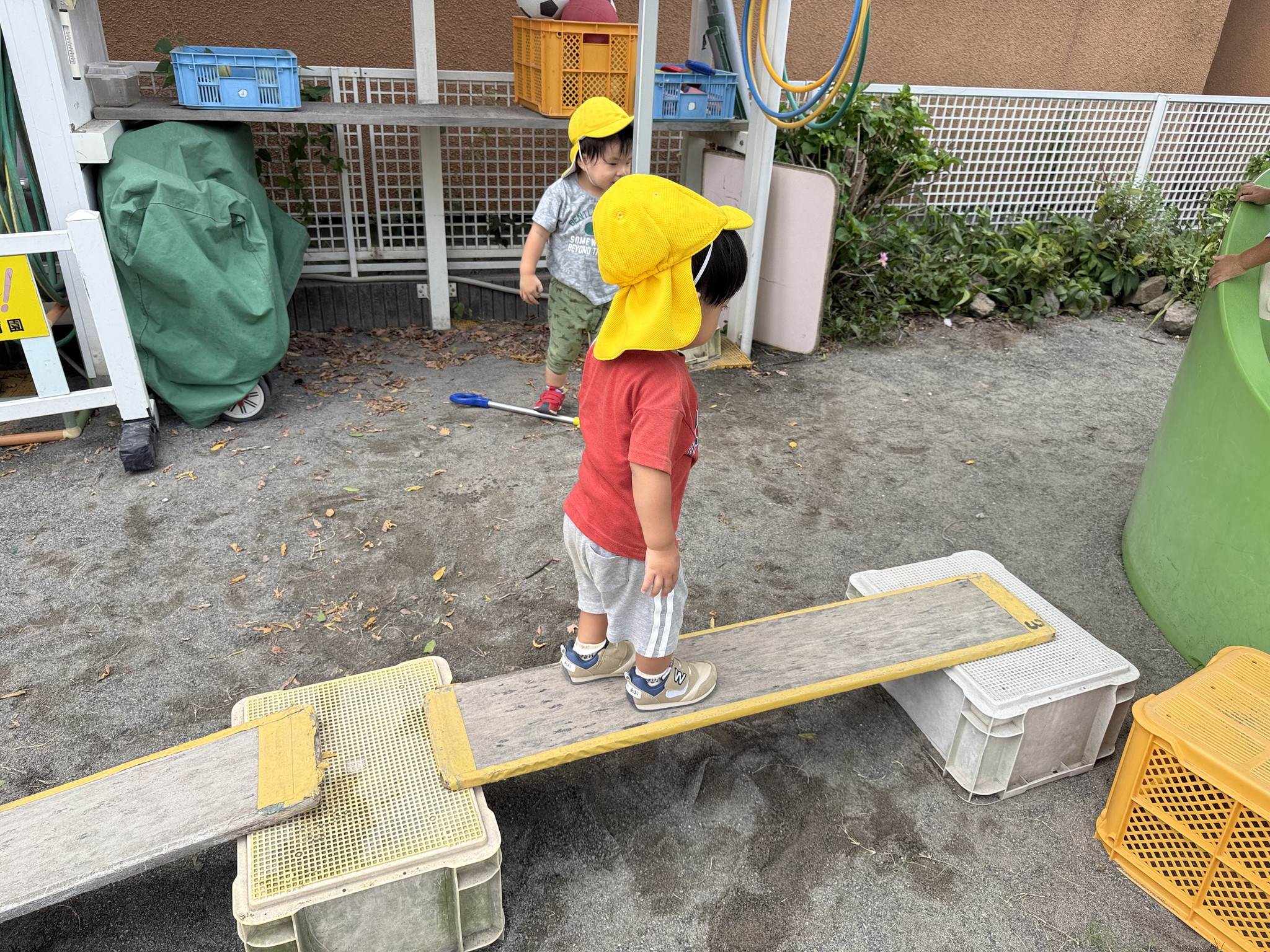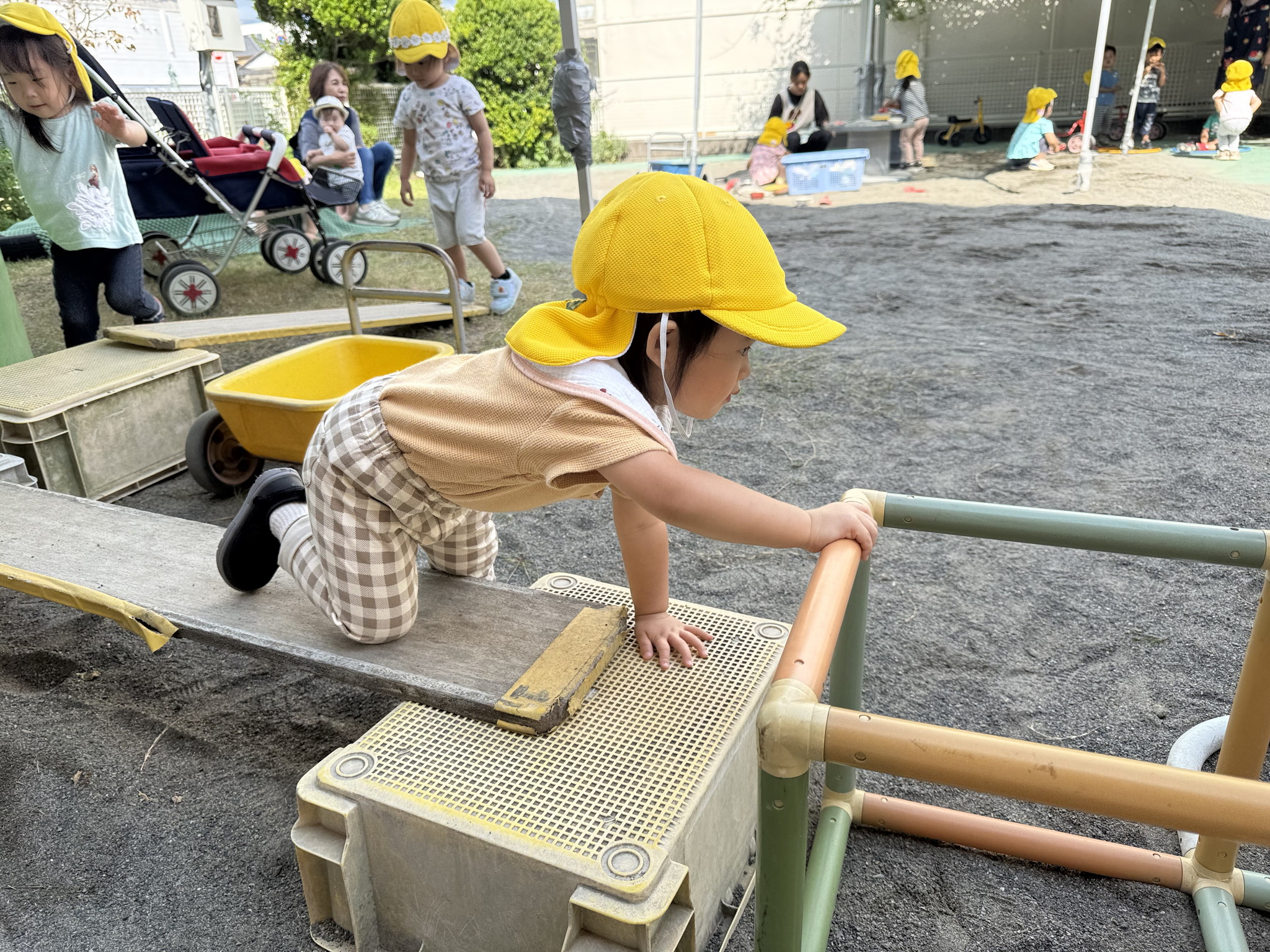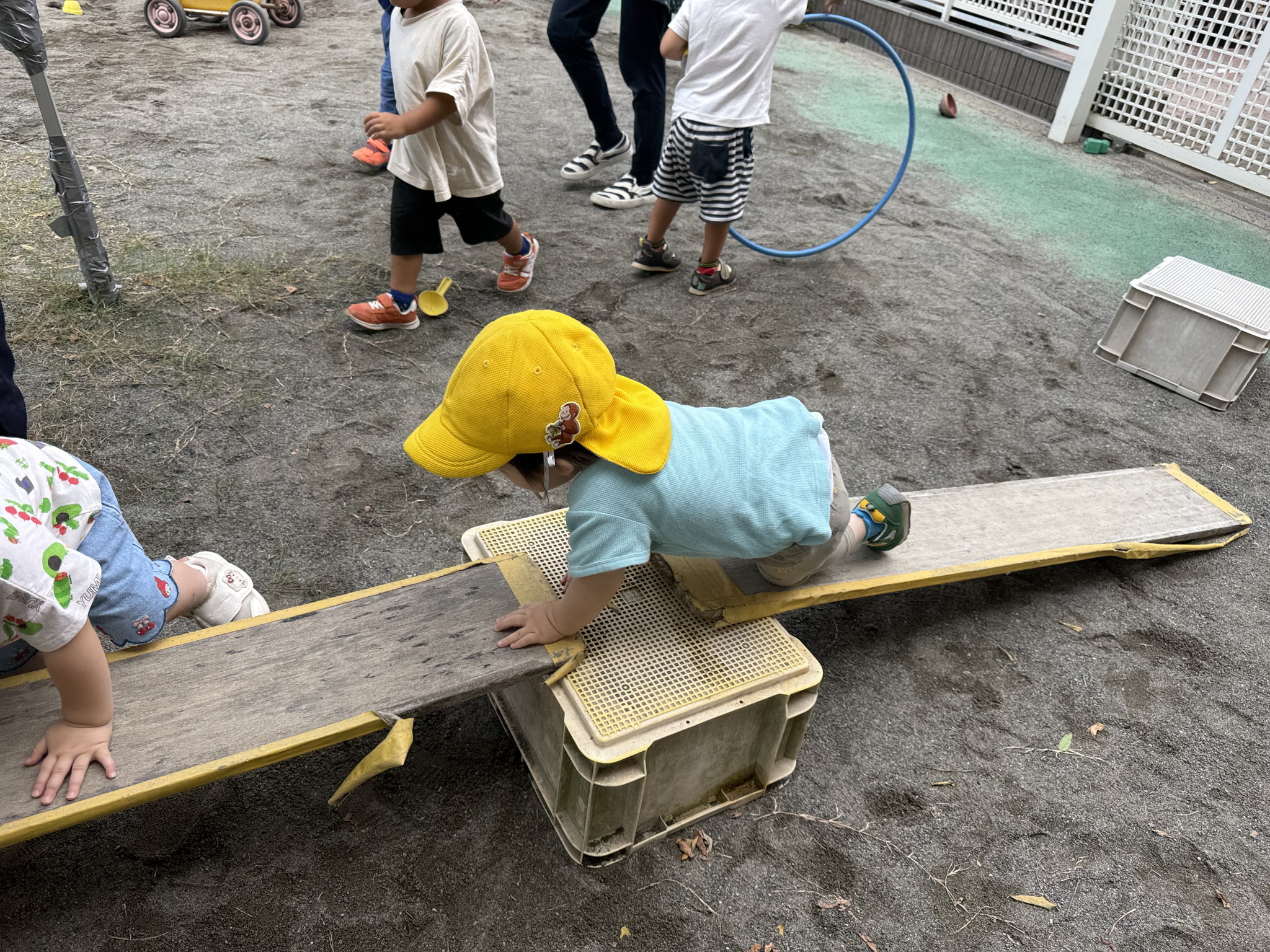 【 あひる 】 どこまで高くなるのかな? お部屋でもすべり台に挑戦 3人でごはんづくり! 私たちは緑のすべり台がお気に入り 一本橋も渡れるよ