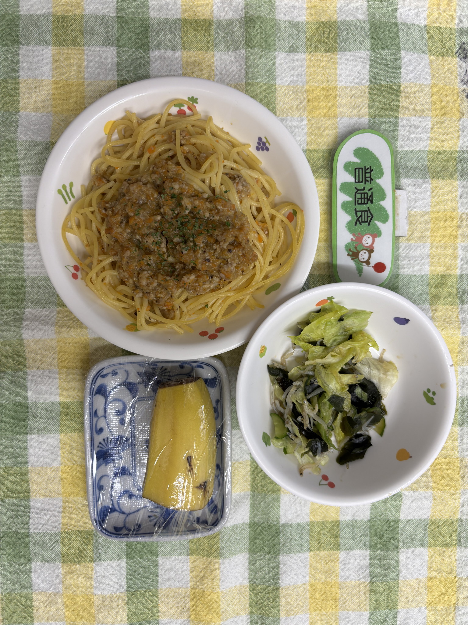 肉味噌スパゲッティは大人気! サラダもさっぱりしていていっぱいおかわりしました
