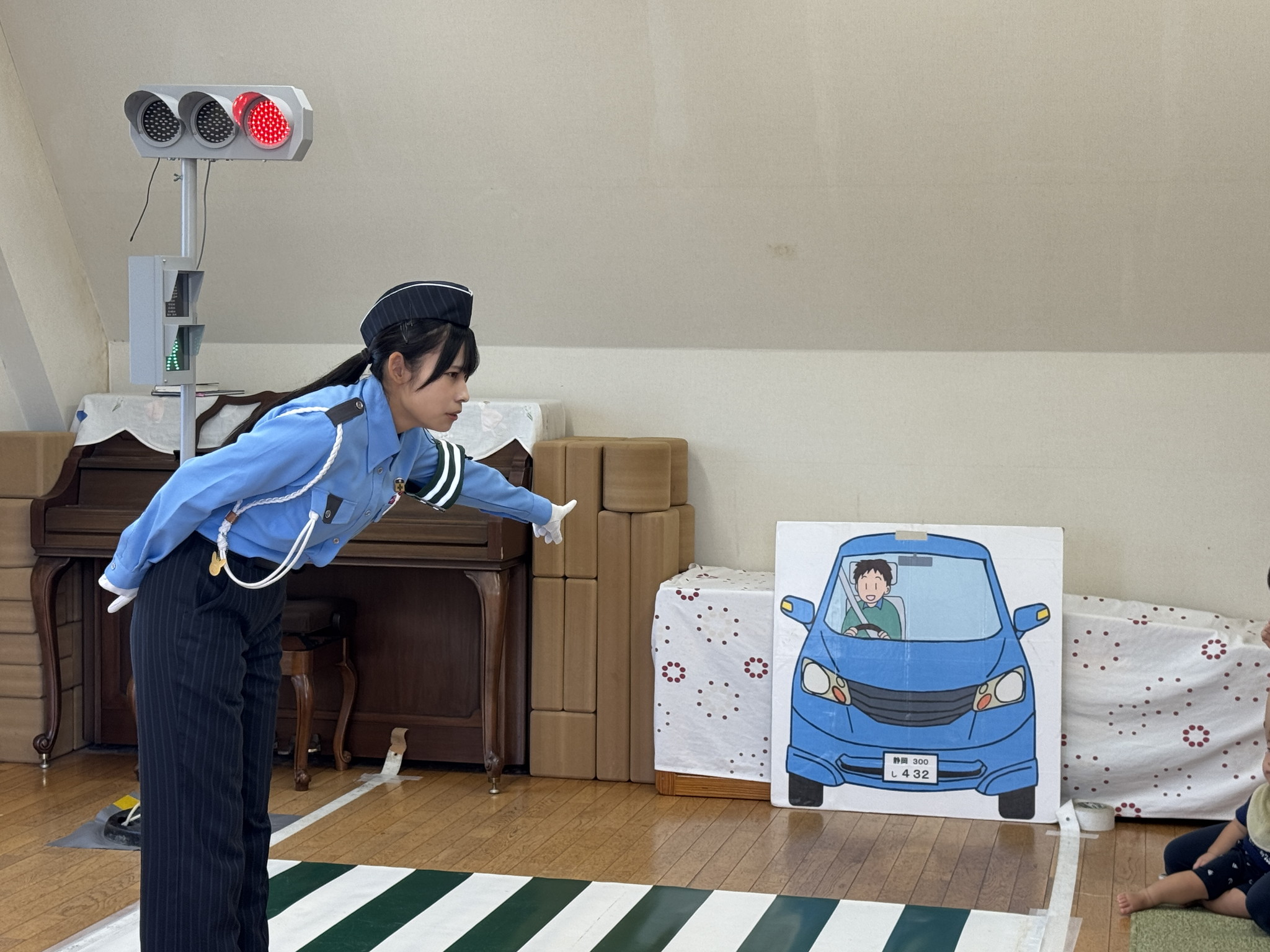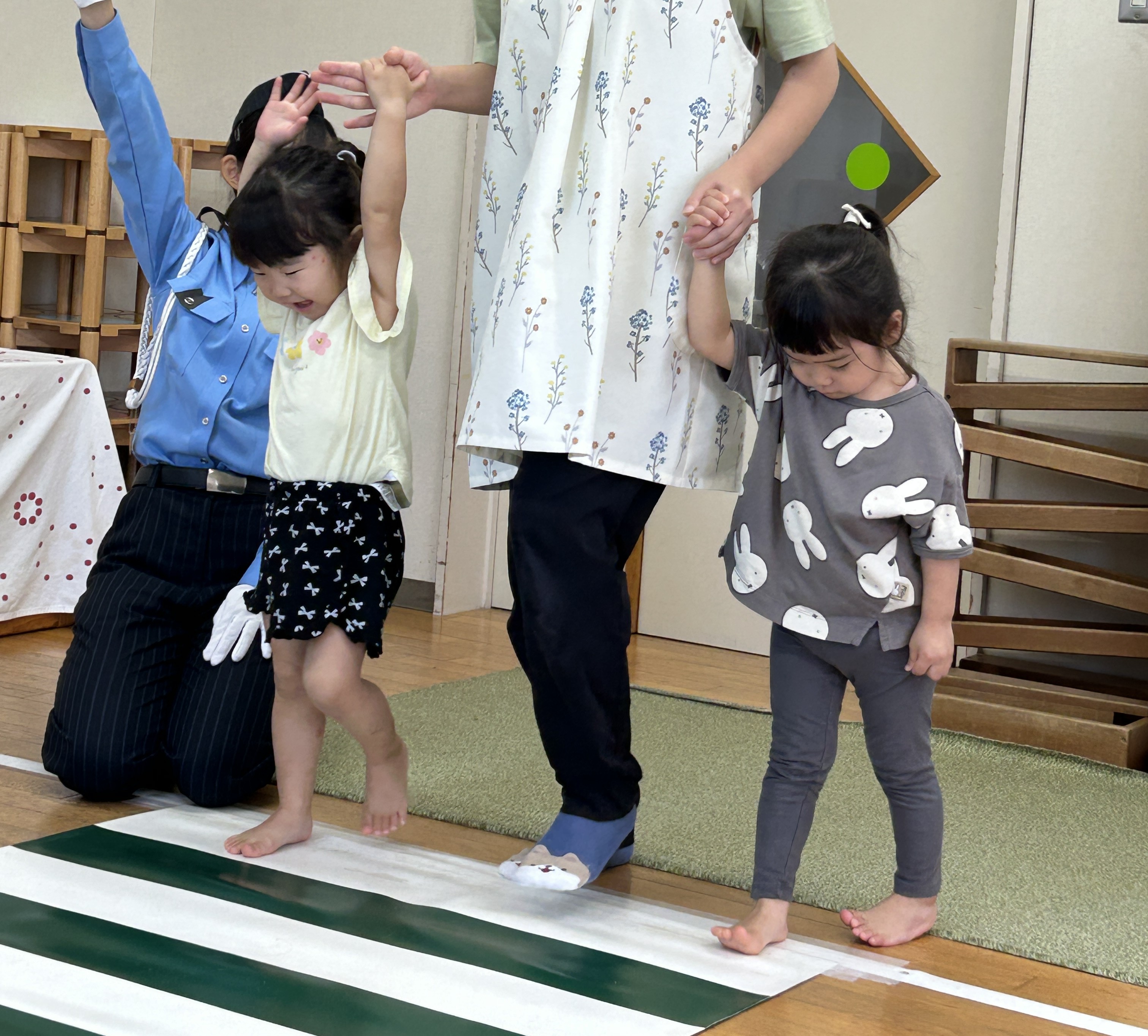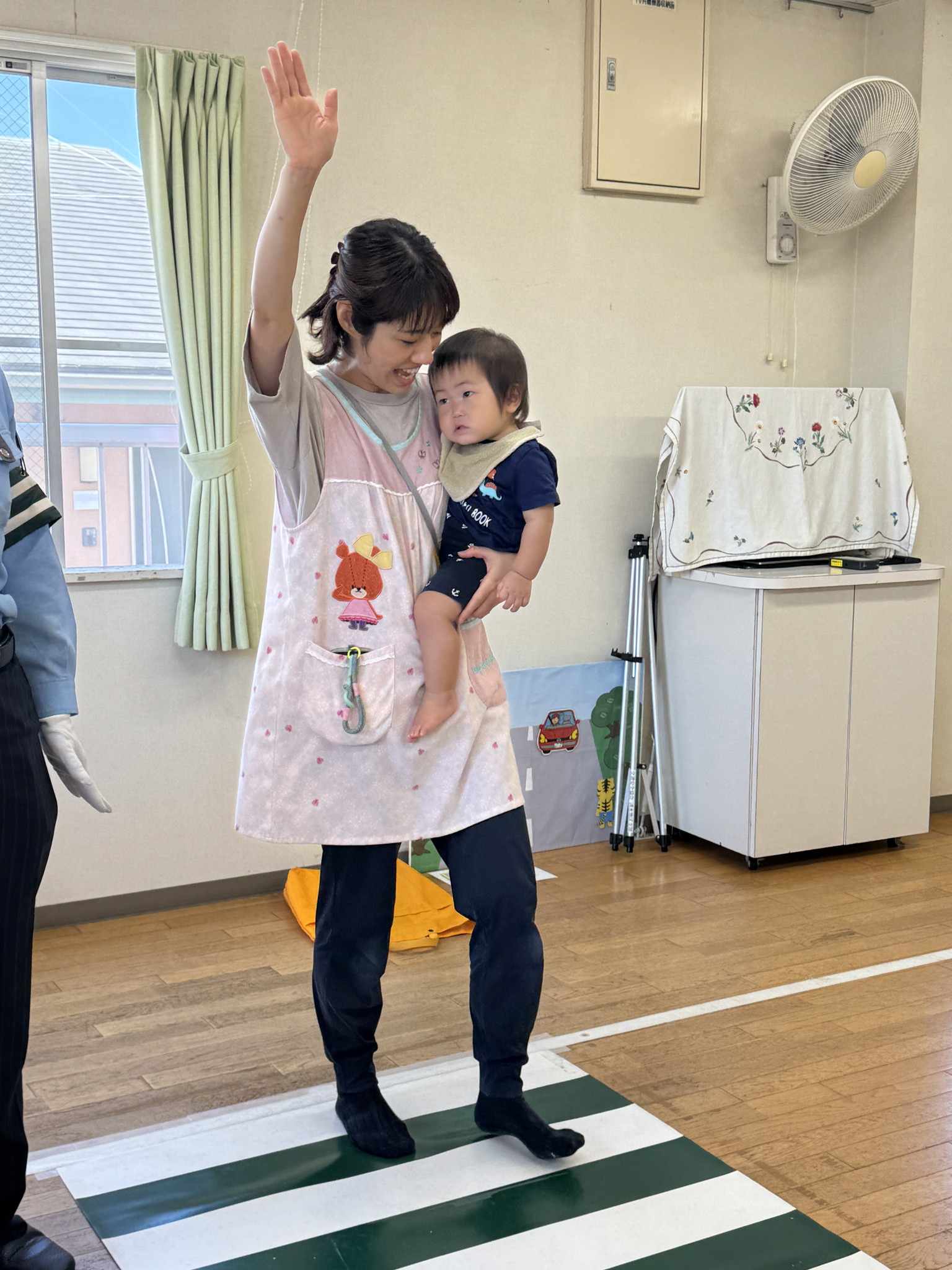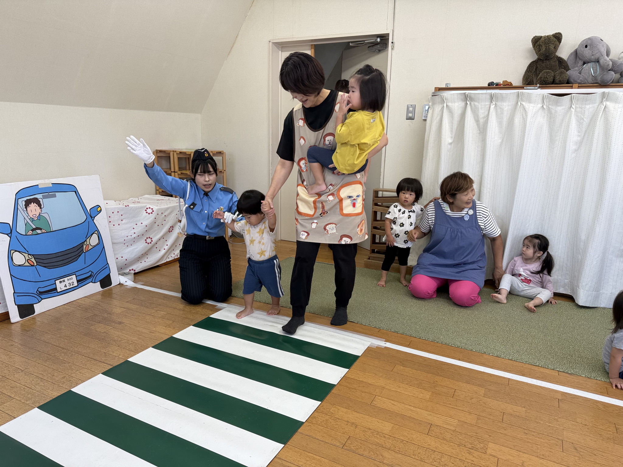 【 うさぎ 】 今日は交通安全指導日! 指導員さんのお話をよく聞けました 手を挙げる練習をして・・・ 先生やお友だちと一緒に横断歩道を渡る練習をしました 車が来てないか、左右を確認して手を挙げて渡りまーす
