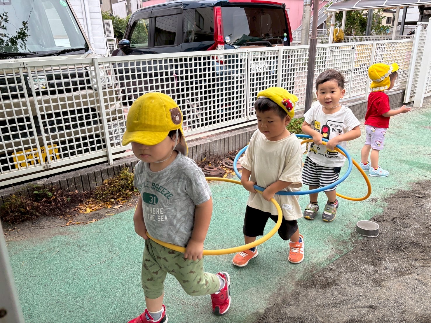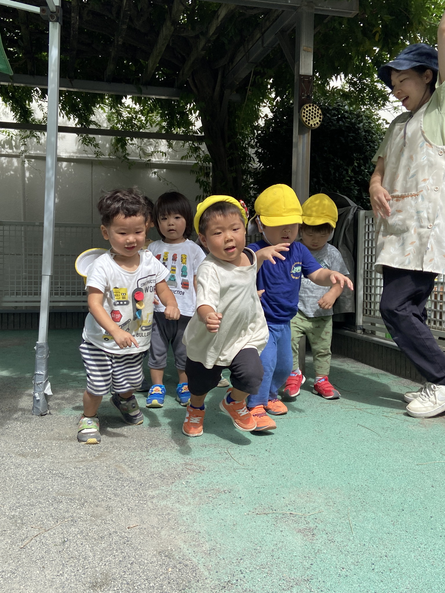 【 うさぎ 】 みんなでスタンプしたよ シュッシュッポッポー がんばるぞ!エイエイオー! よーいスタート! お散歩に行ってきたよ