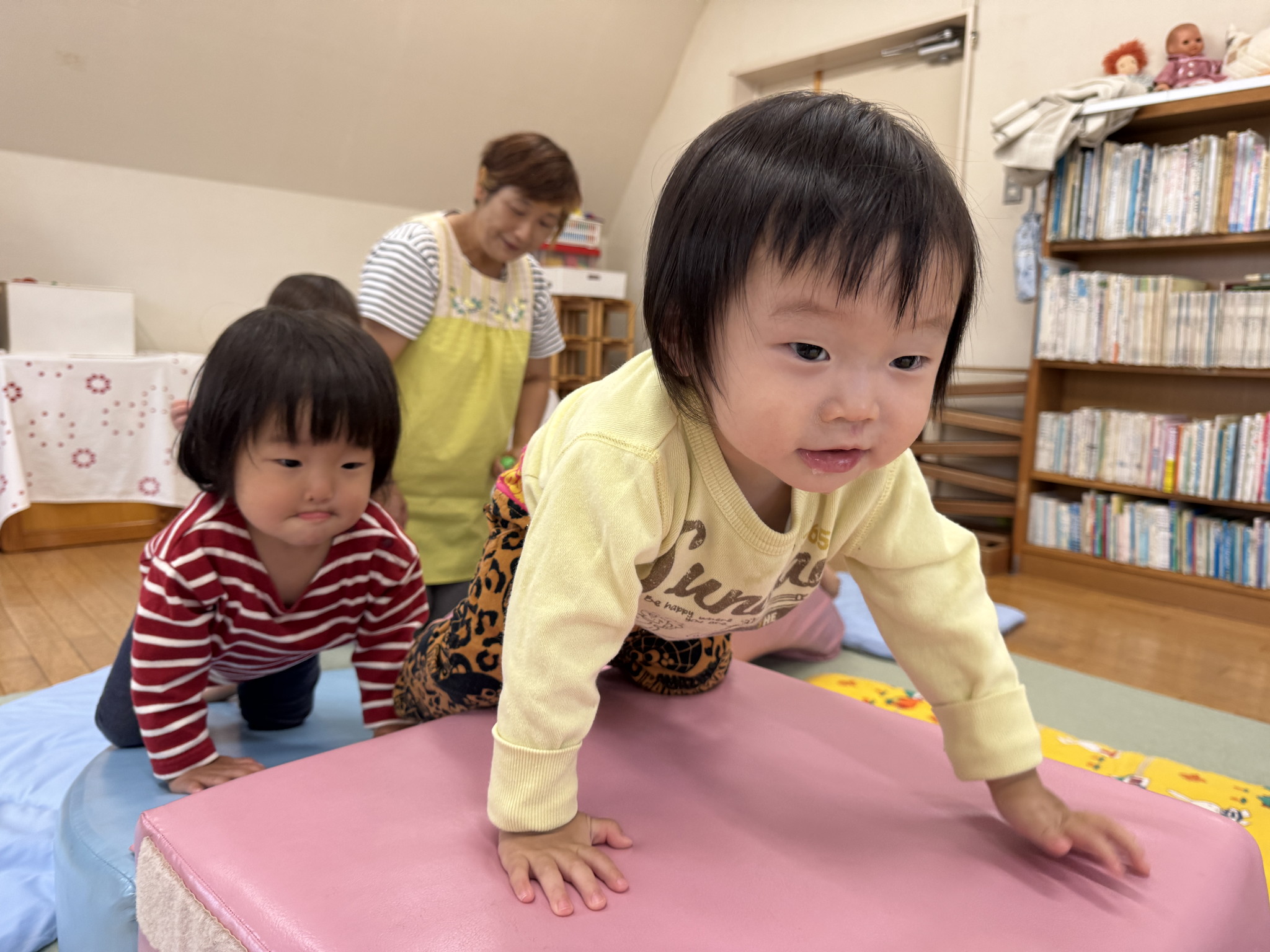 【 あひる 】 ゆらゆら、たのしいね バランスとって立つよ のぼるぞー 布団の中から・・・ 雨の日でも身体を動かしていっぱいあそんだよ!