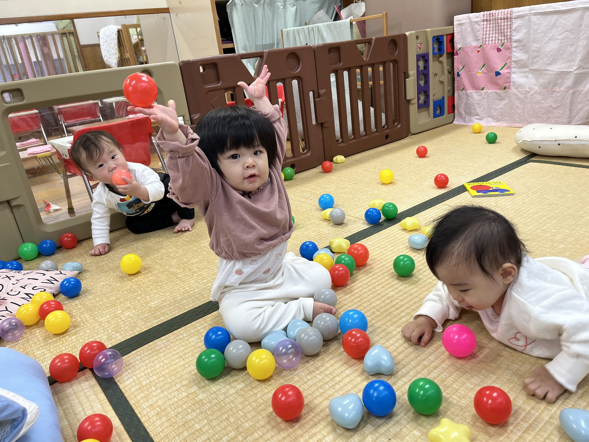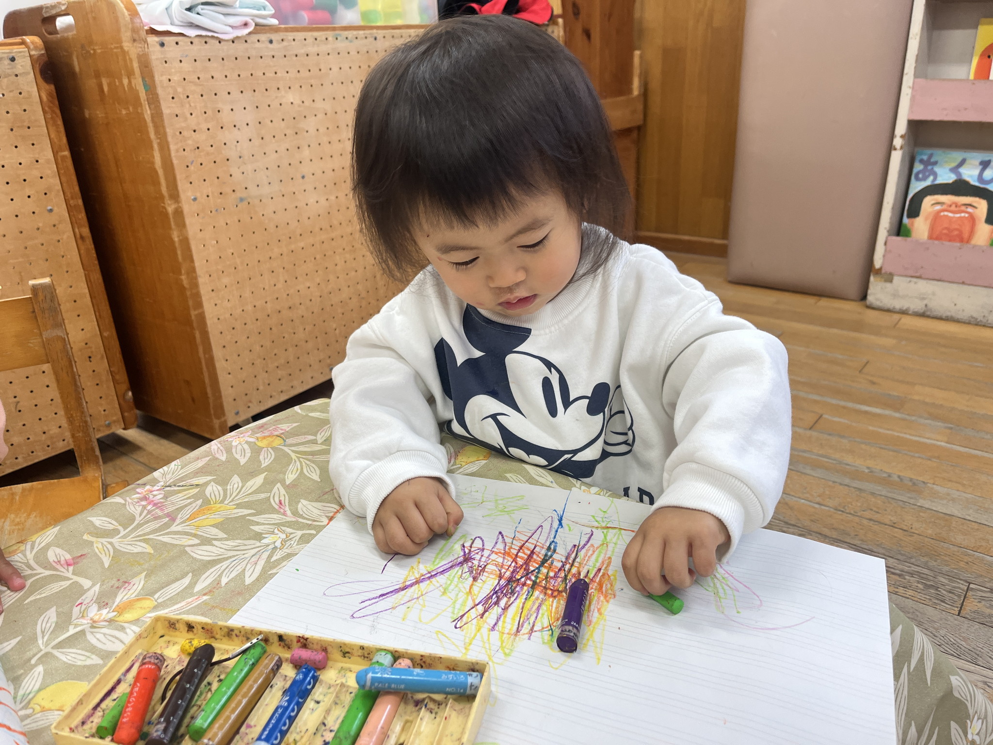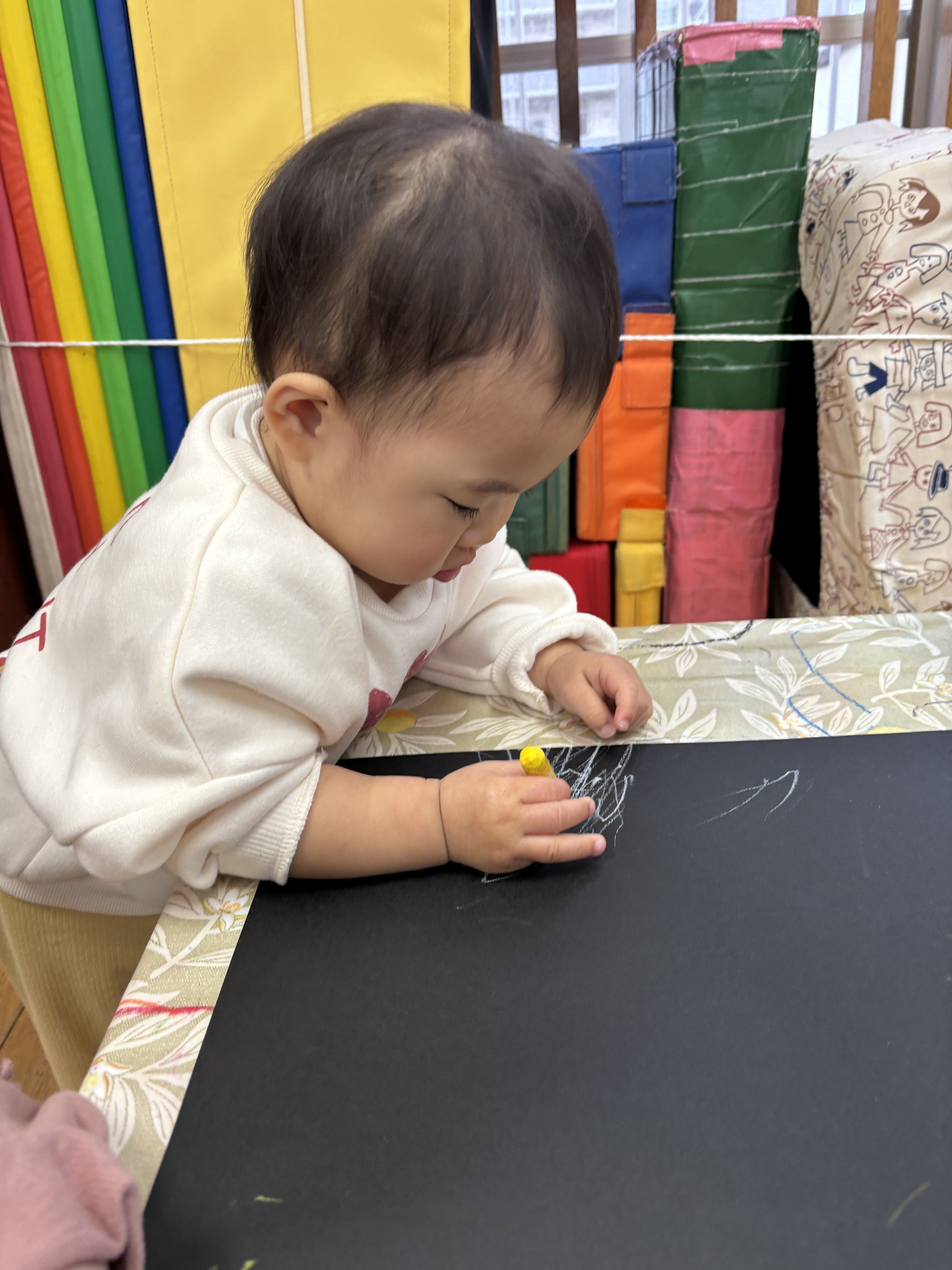 【 ひよこ 】 お散歩いってきまーす! お気に入りのくまさん♡ みんな集まって お絵描きTIME♪クレヨンを上手に持ってカキカキ~ ボールたーくさん!たのしいね