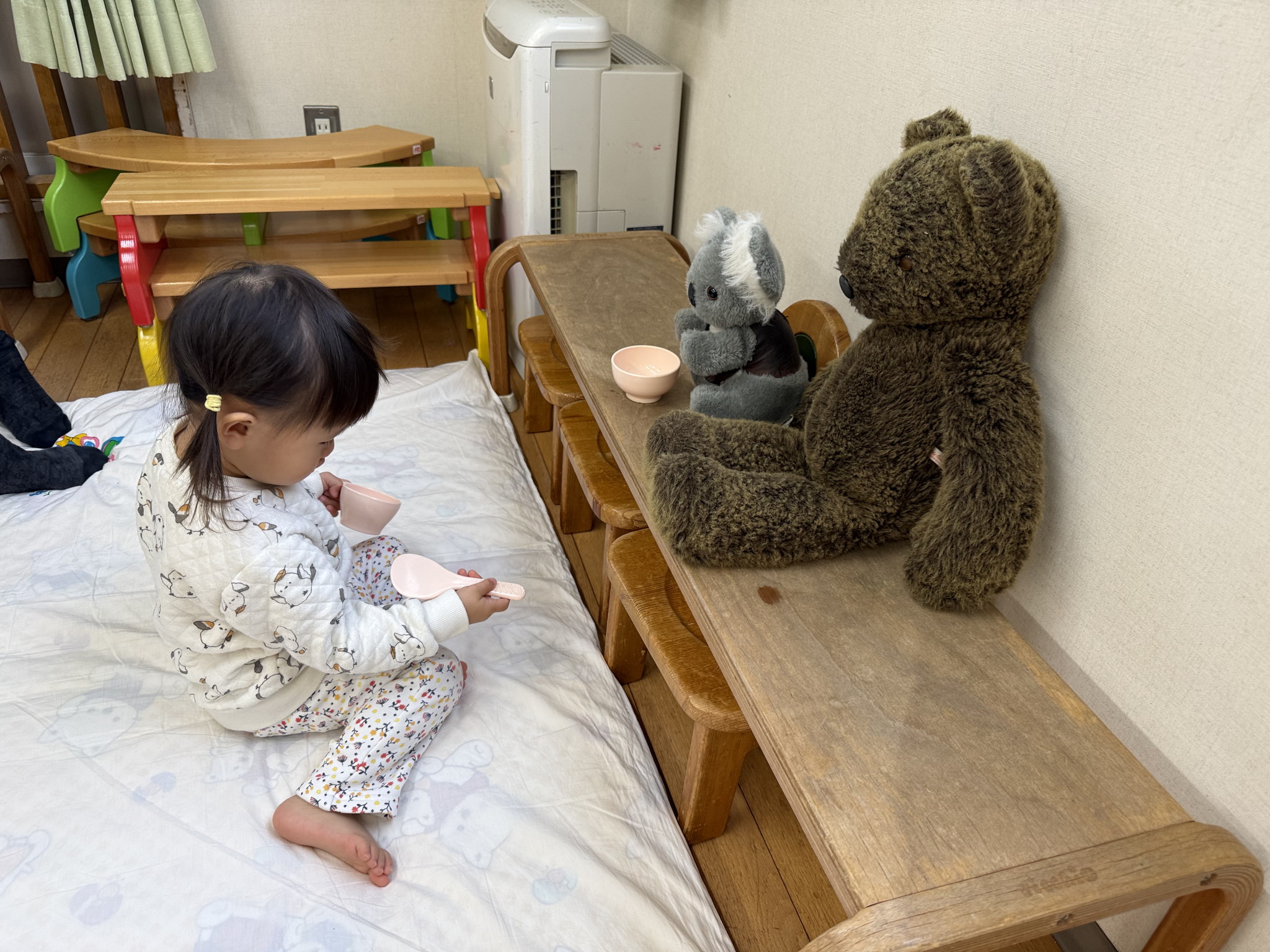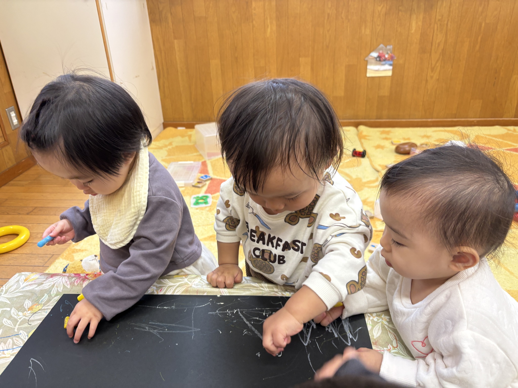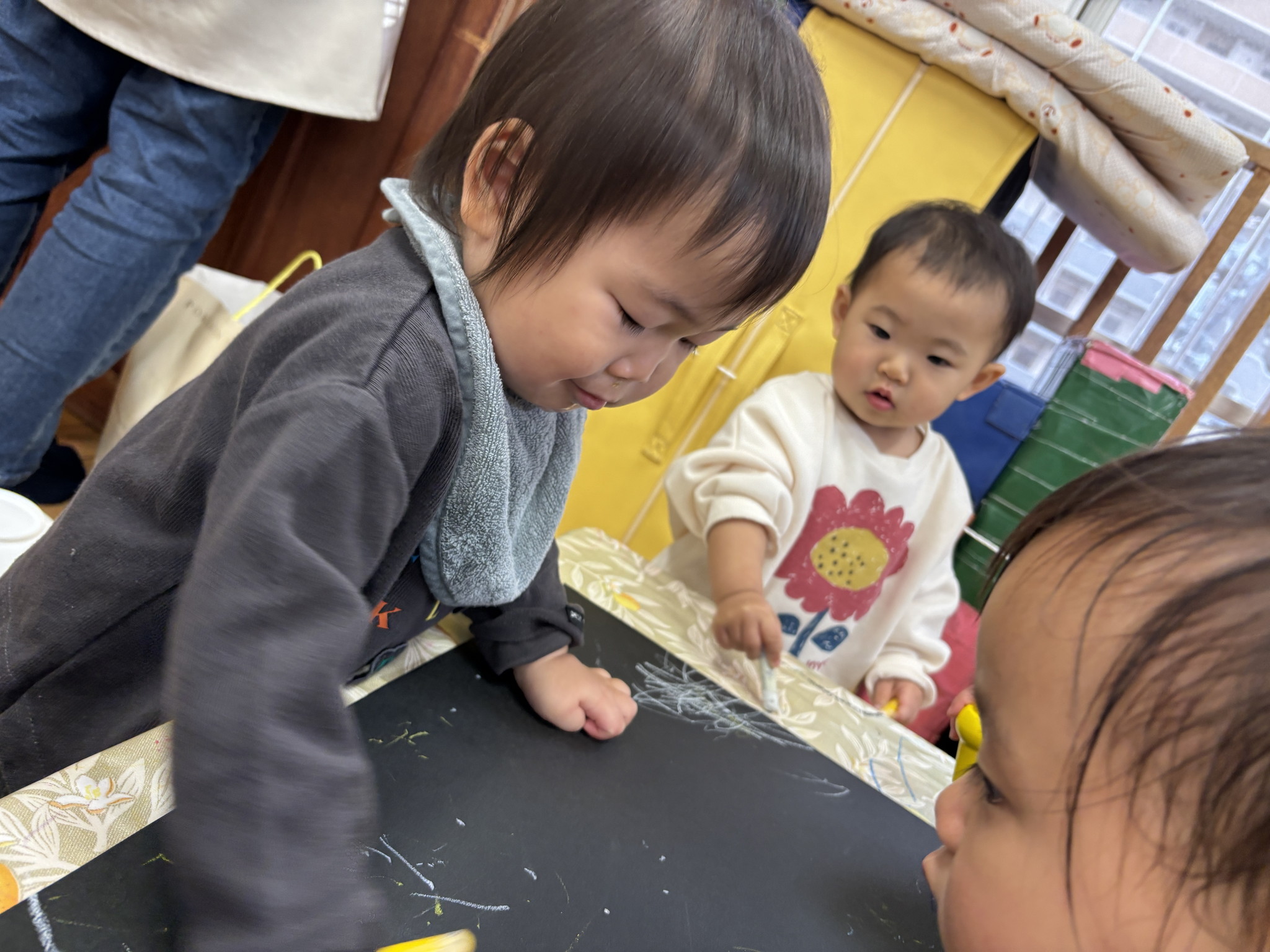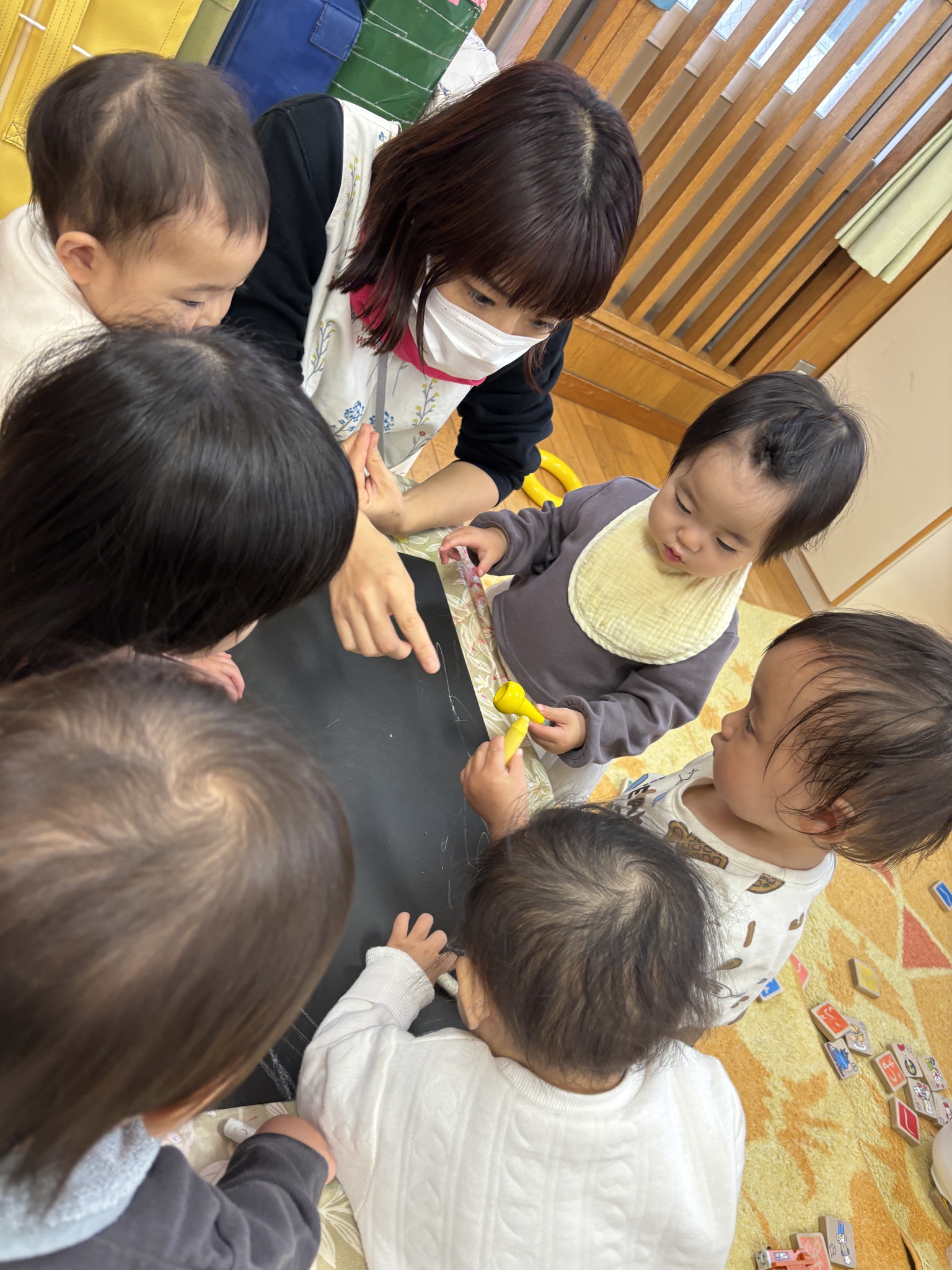 【 ひよこ 】 お散歩いってきまーす! お気に入りのくまさん♡ みんな集まって お絵描きTIME♪クレヨンを上手に持ってカキカキ~ ボールたーくさん!たのしいね