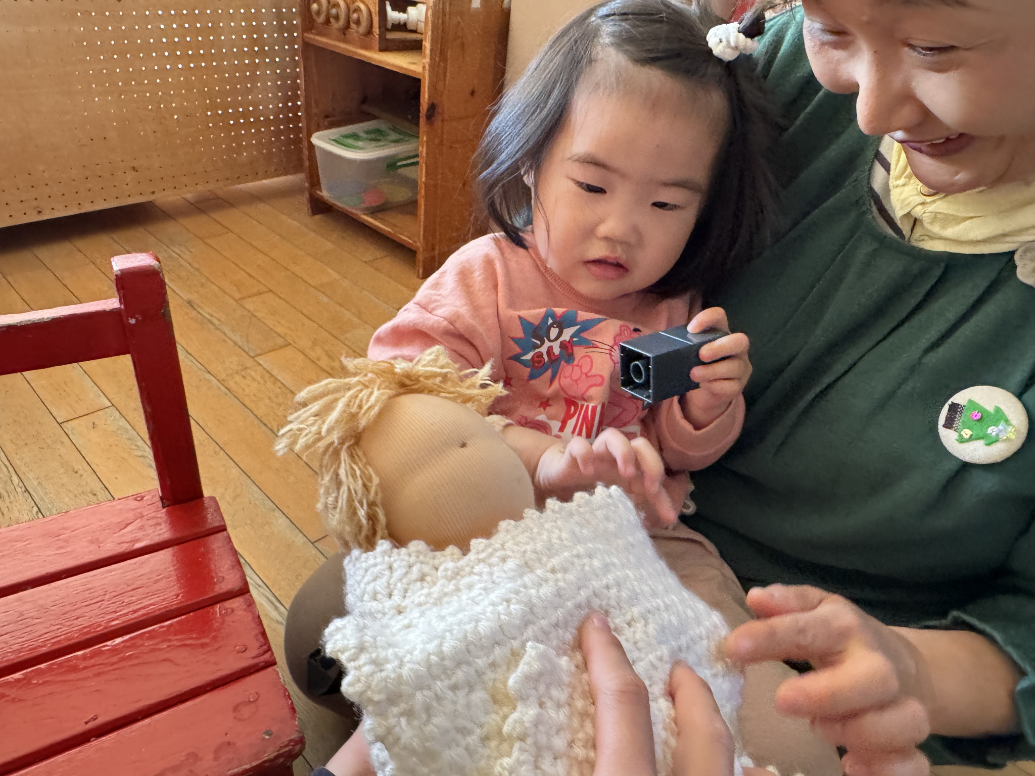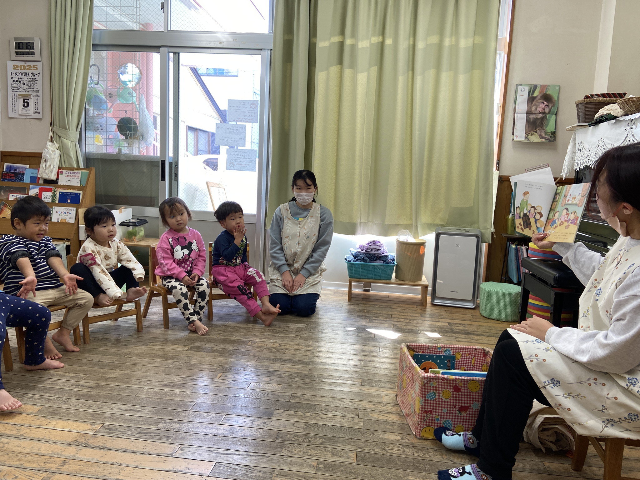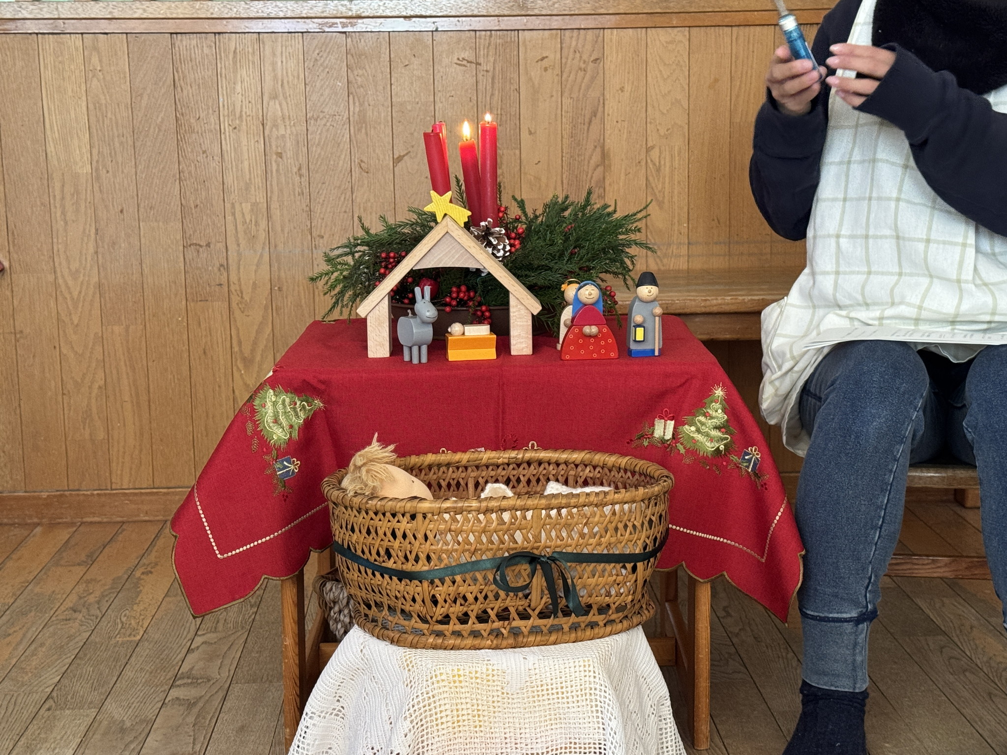 【 あひる 】 アドベント礼拝2回目でした 2本のろうそくに火が灯ったよ 今日はイエス様がお誕生するまでのお話を聞きました