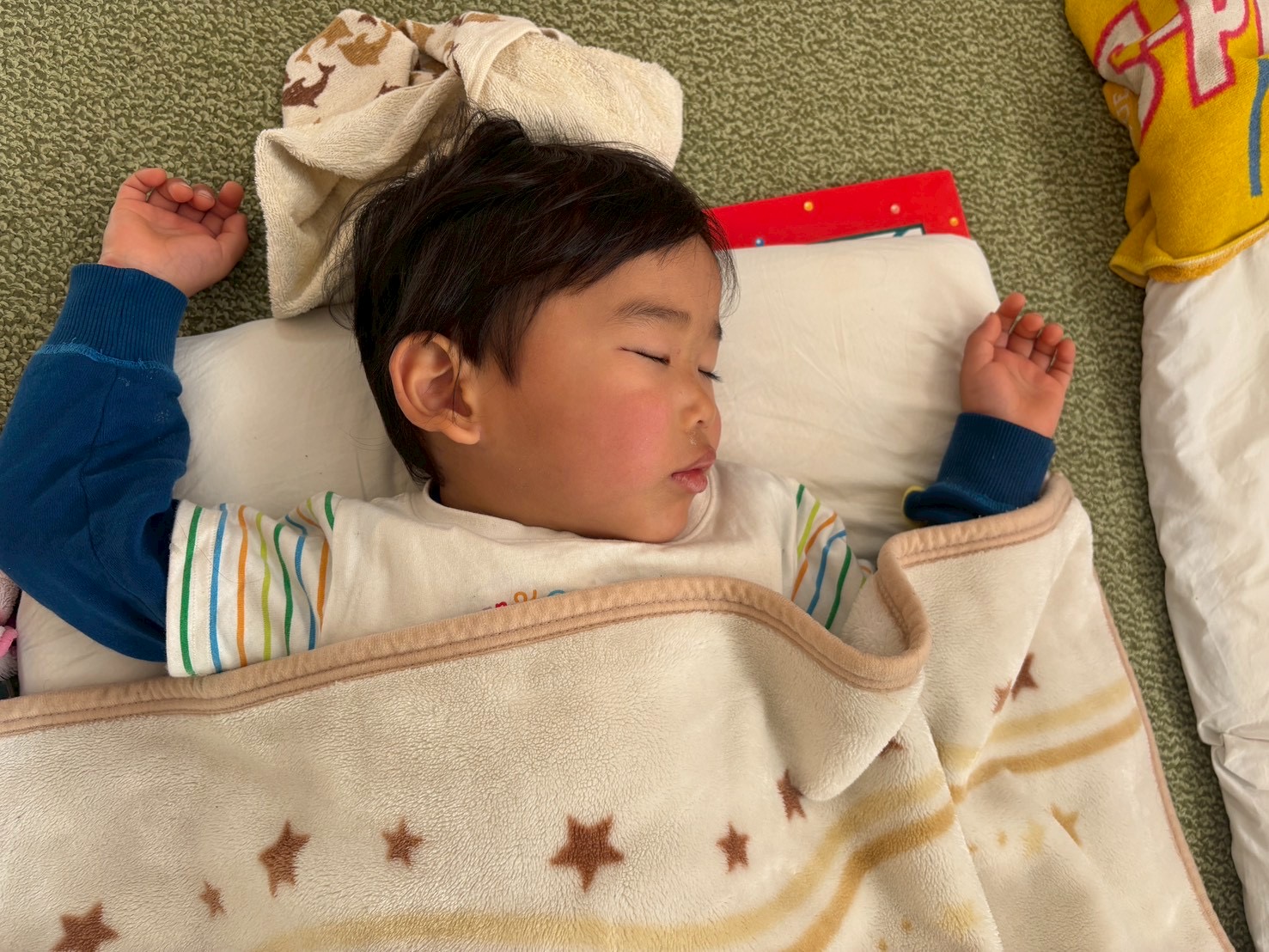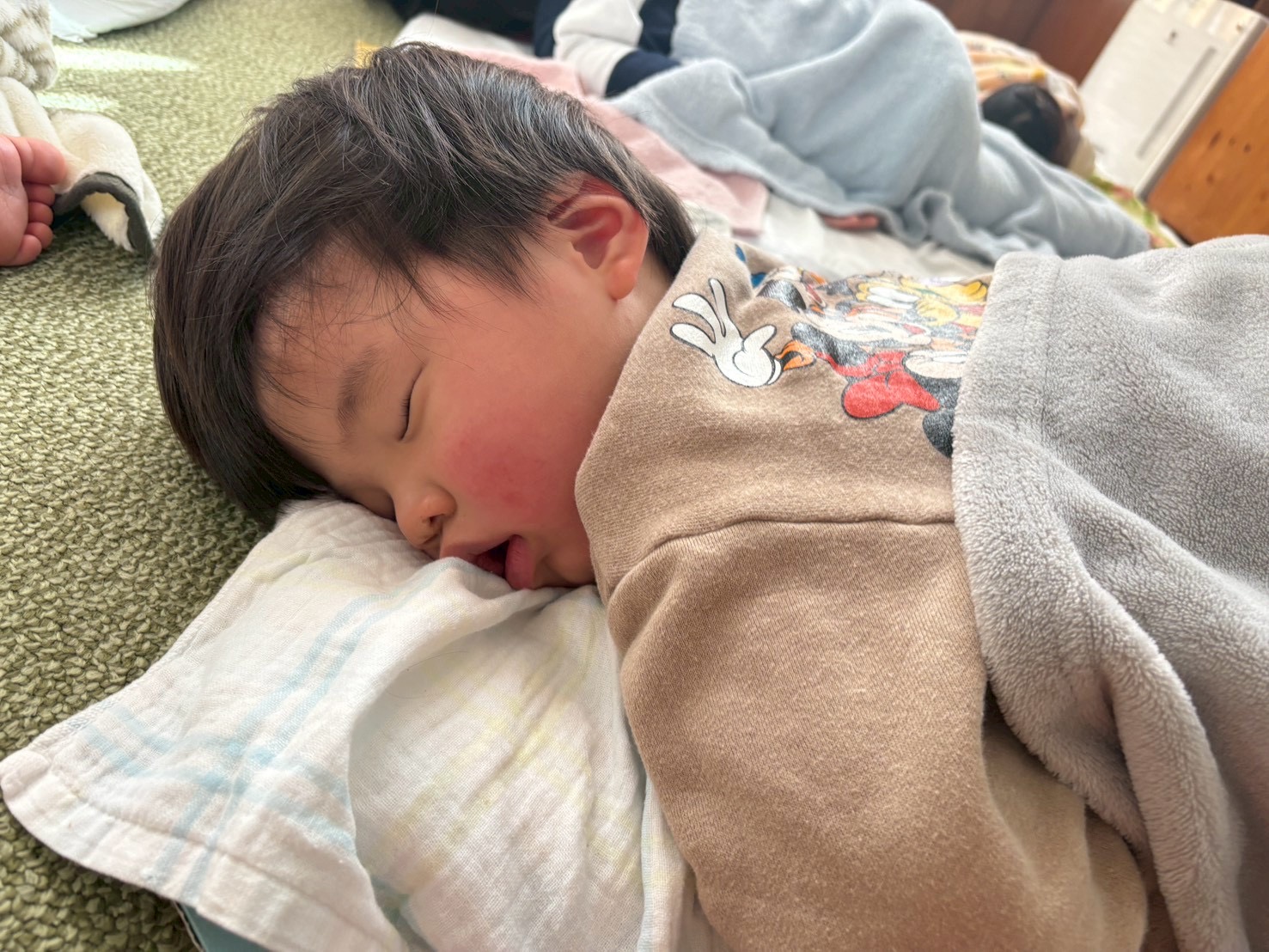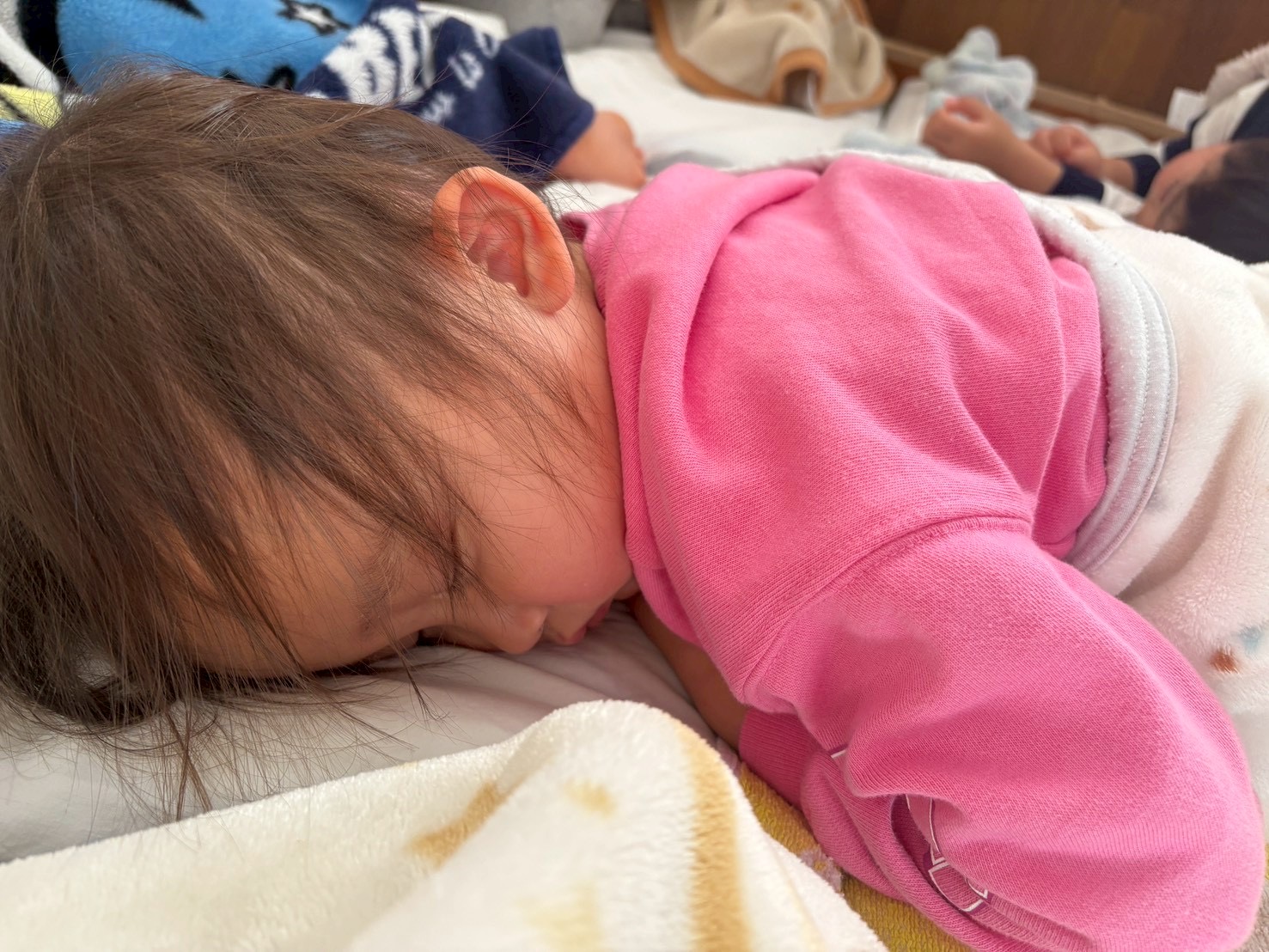 【 うさぎ 】 今日はのぞみ文庫の日でした♪ いただきまーす 今日もおいし~! スヤスヤよく眠ってます