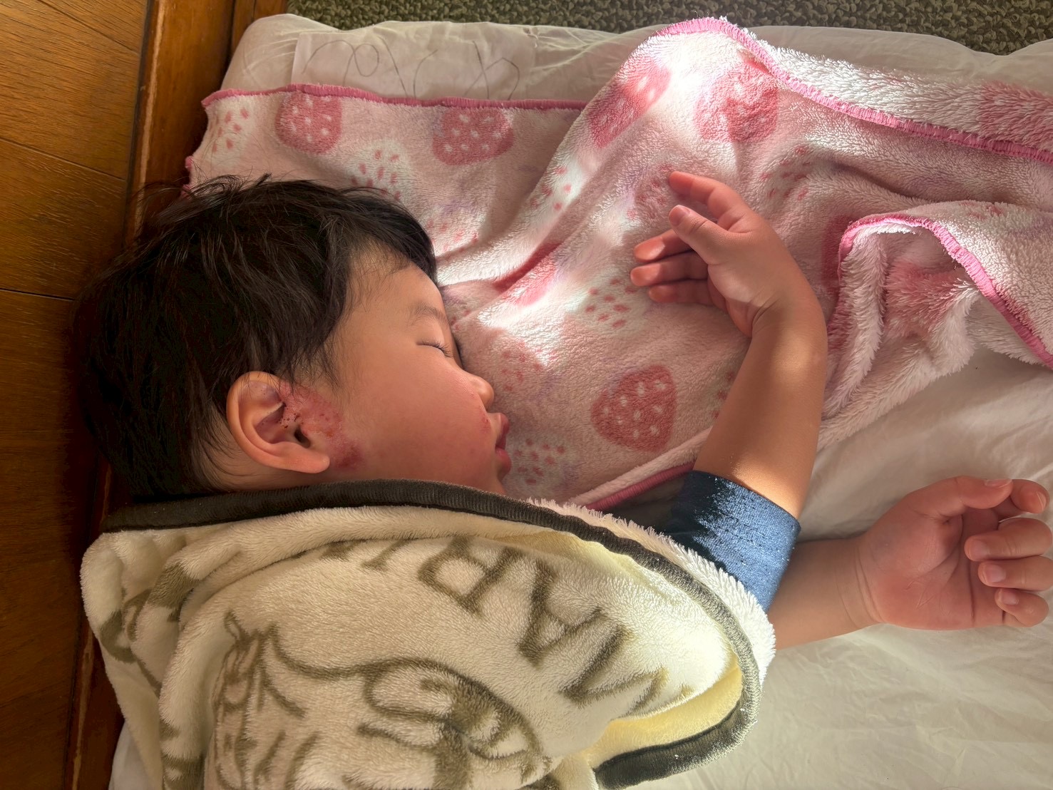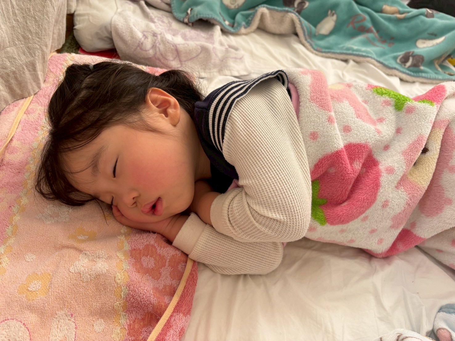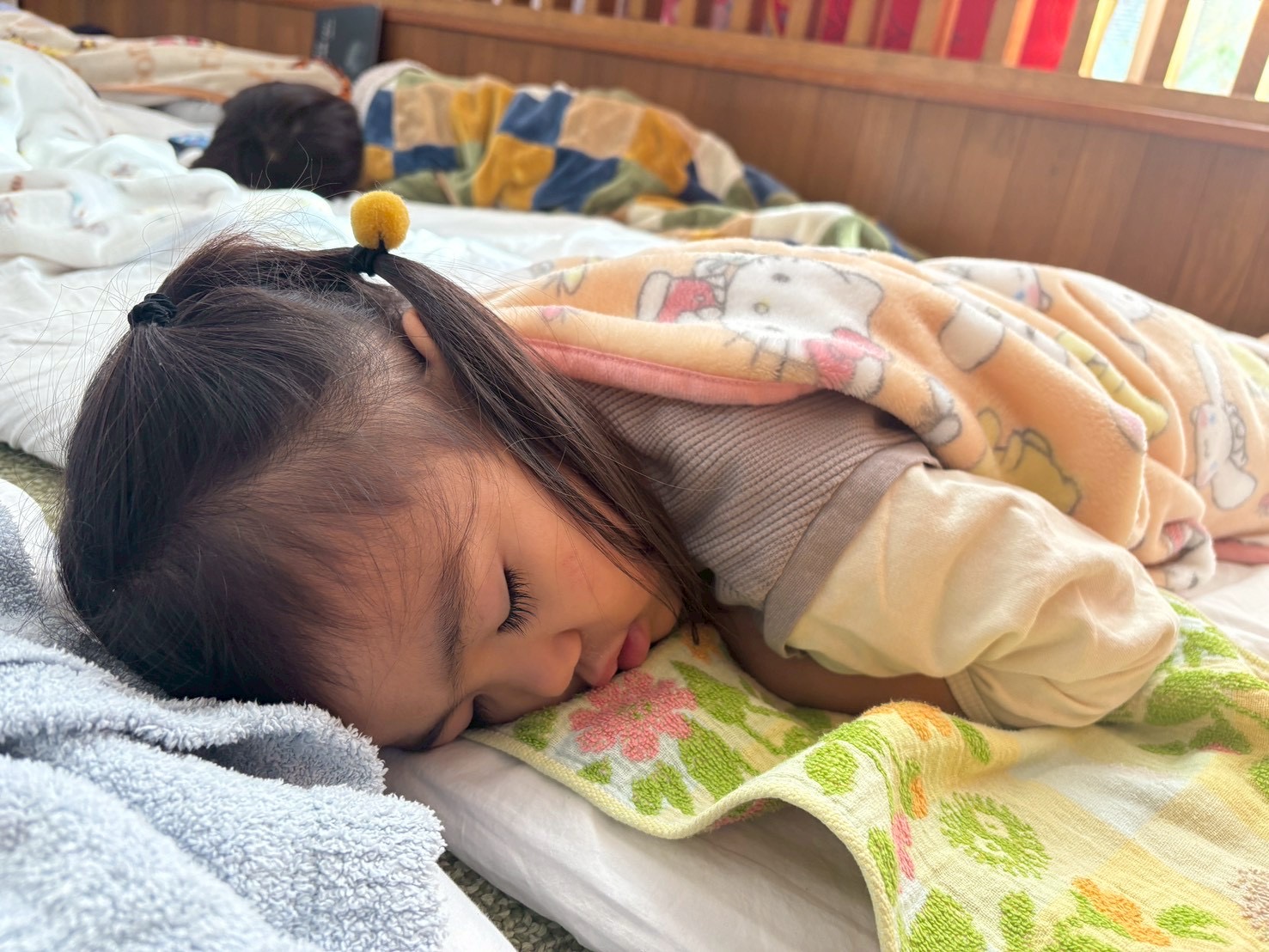 【 うさぎ 】 今日はのぞみ文庫の日でした♪ いただきまーす 今日もおいし~! スヤスヤよく眠ってます