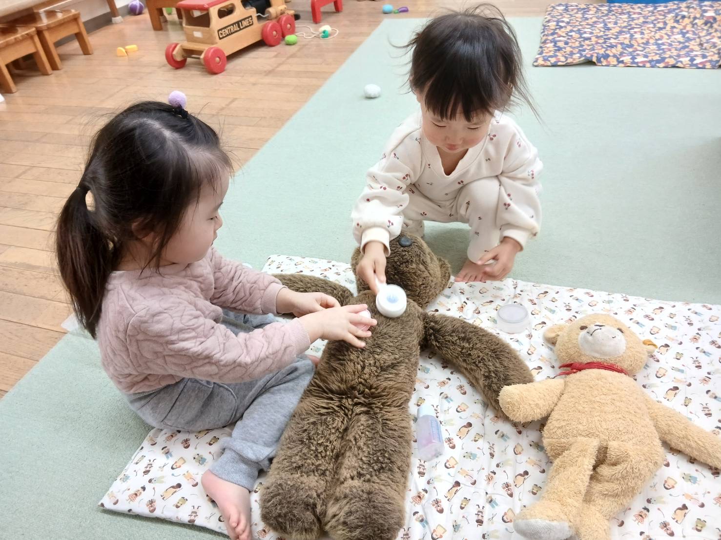【 あひる 】 お医者さんごっこ お薬ぬりまーす 電子レンジで温めまーす さらすなづくり シャラシャラ~ ゆっくり安全運転