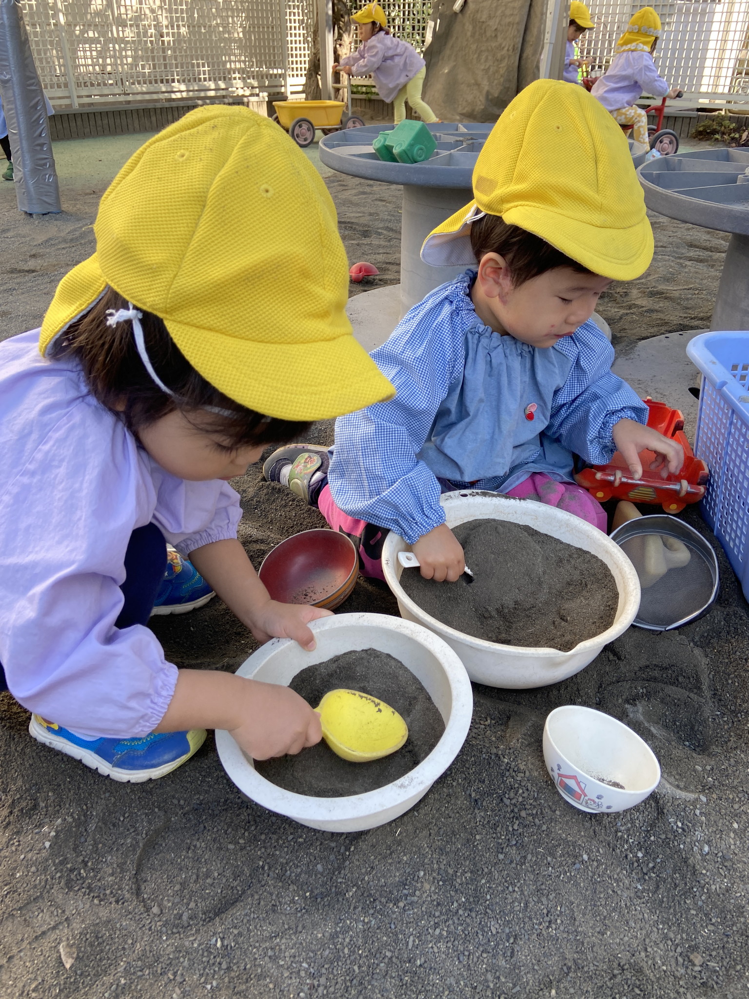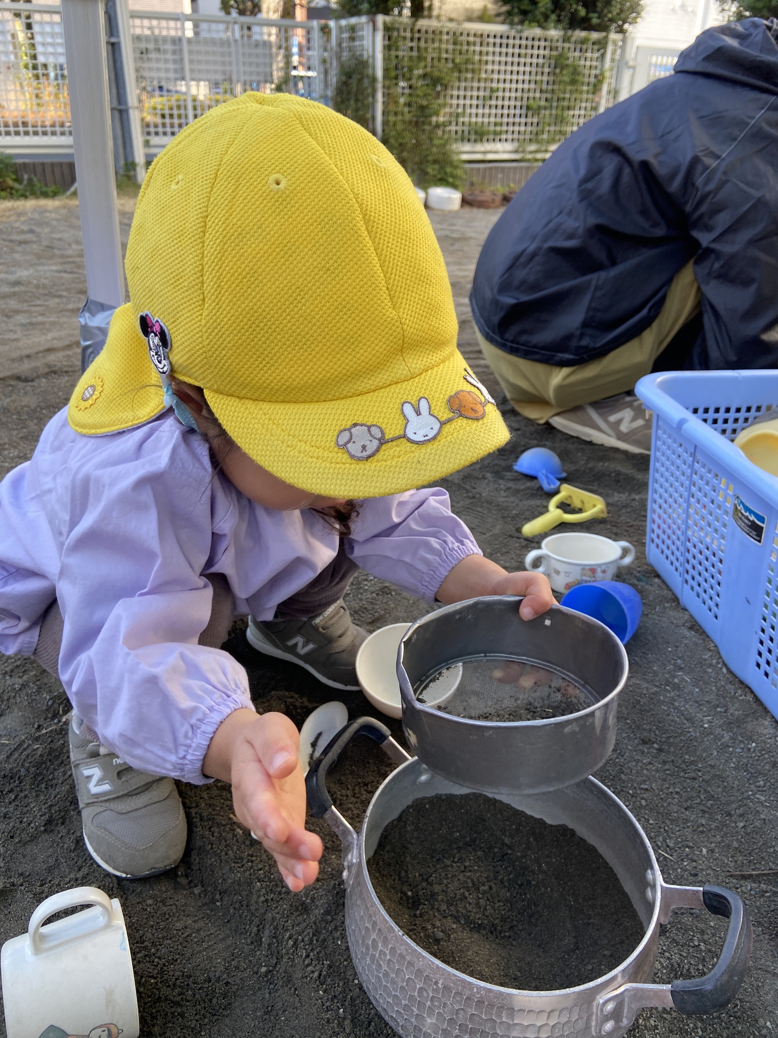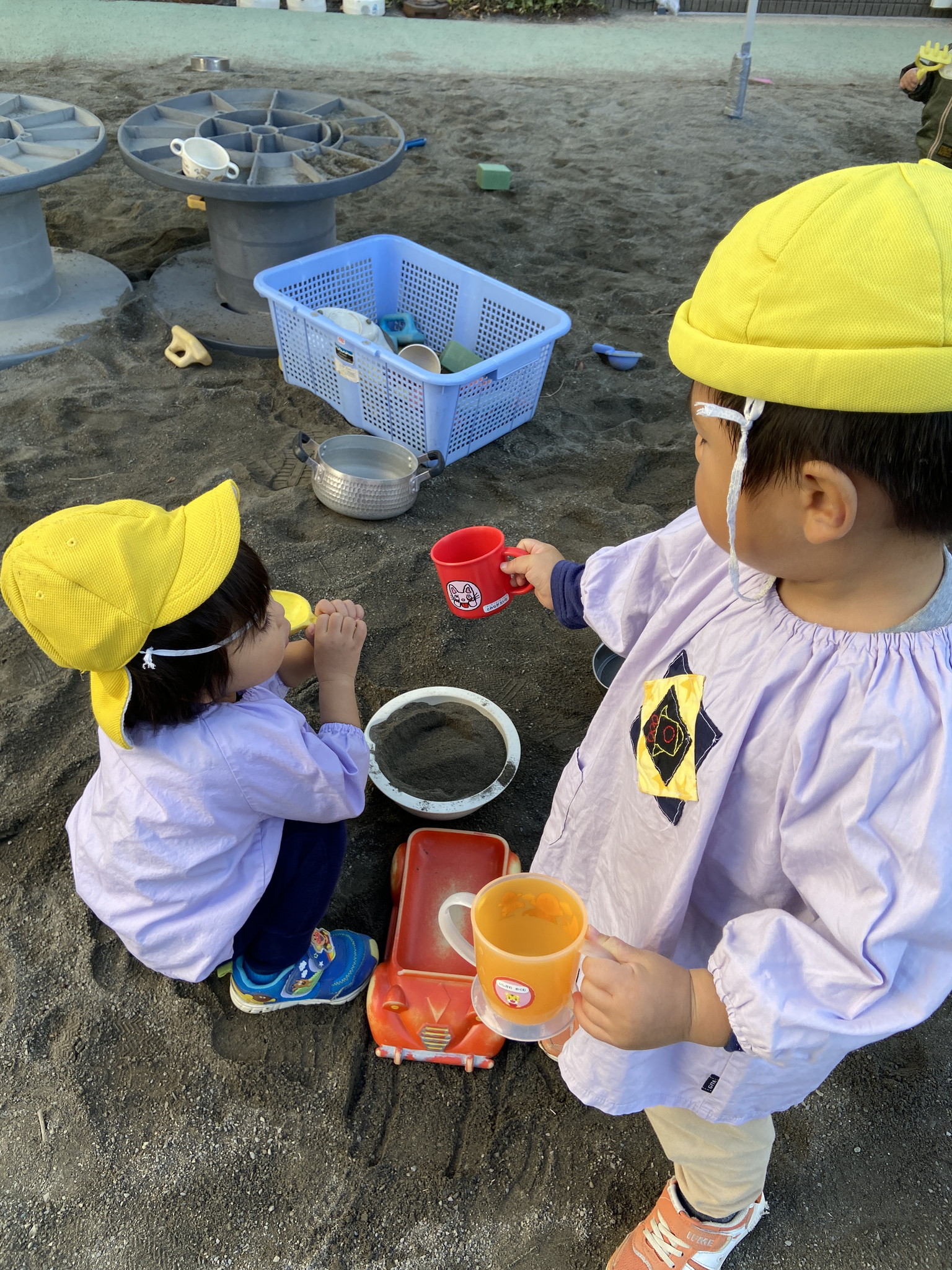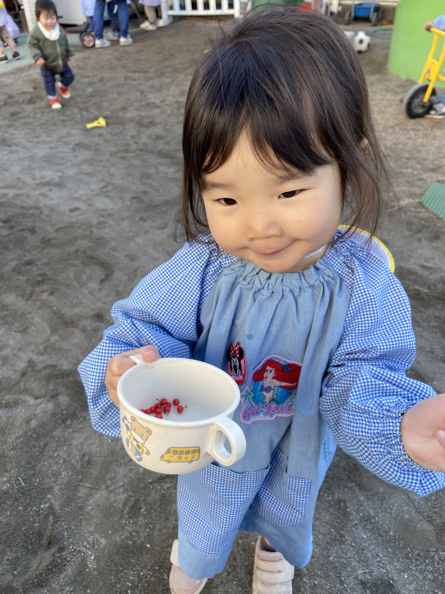 【 うさぎ 】 サラ砂たくさん作ったよ みて~赤い実いっぱい! お茶どうぞ~ ぼくのまねしてみてね! 鼻水ふいてあげるね ひよこ組さんかわいいね