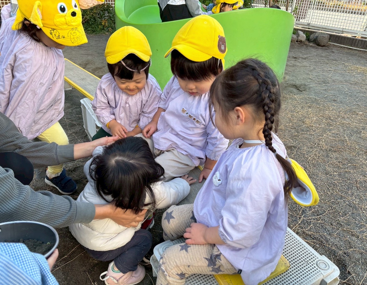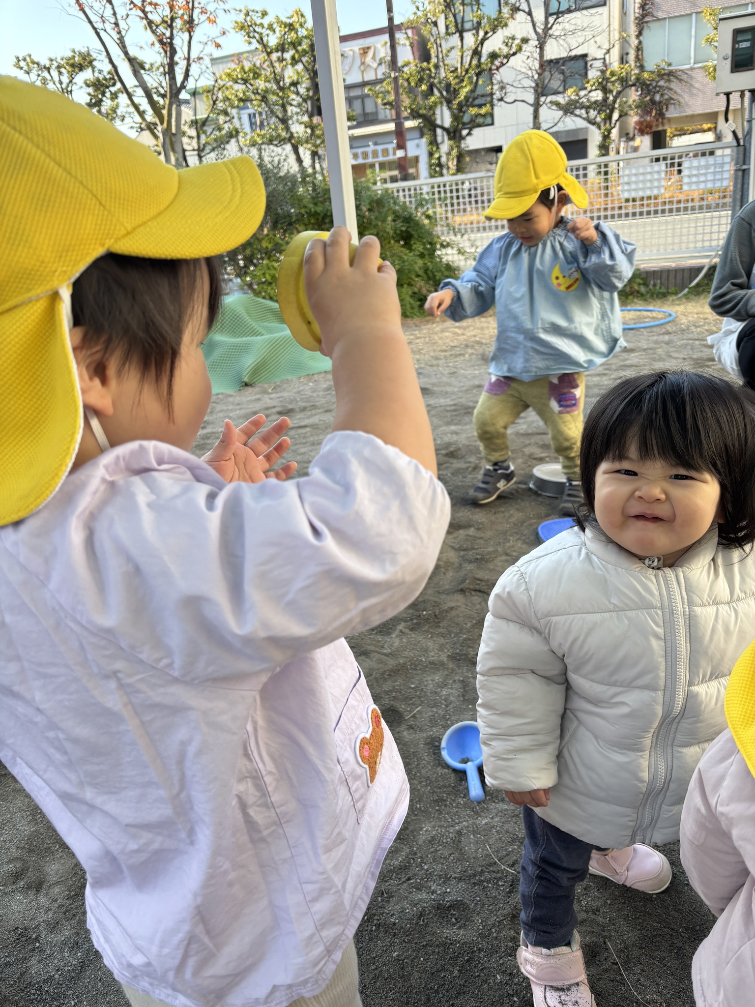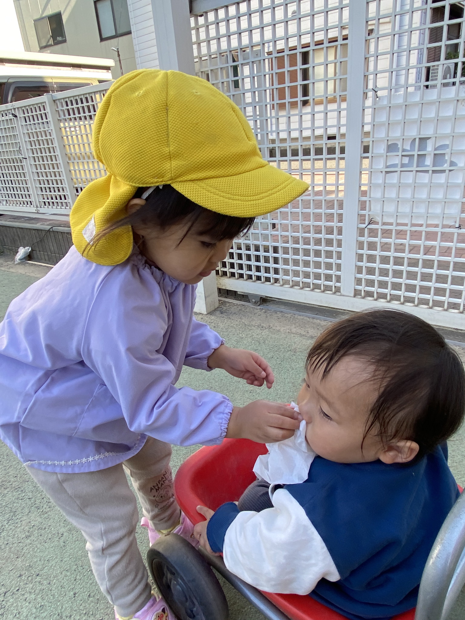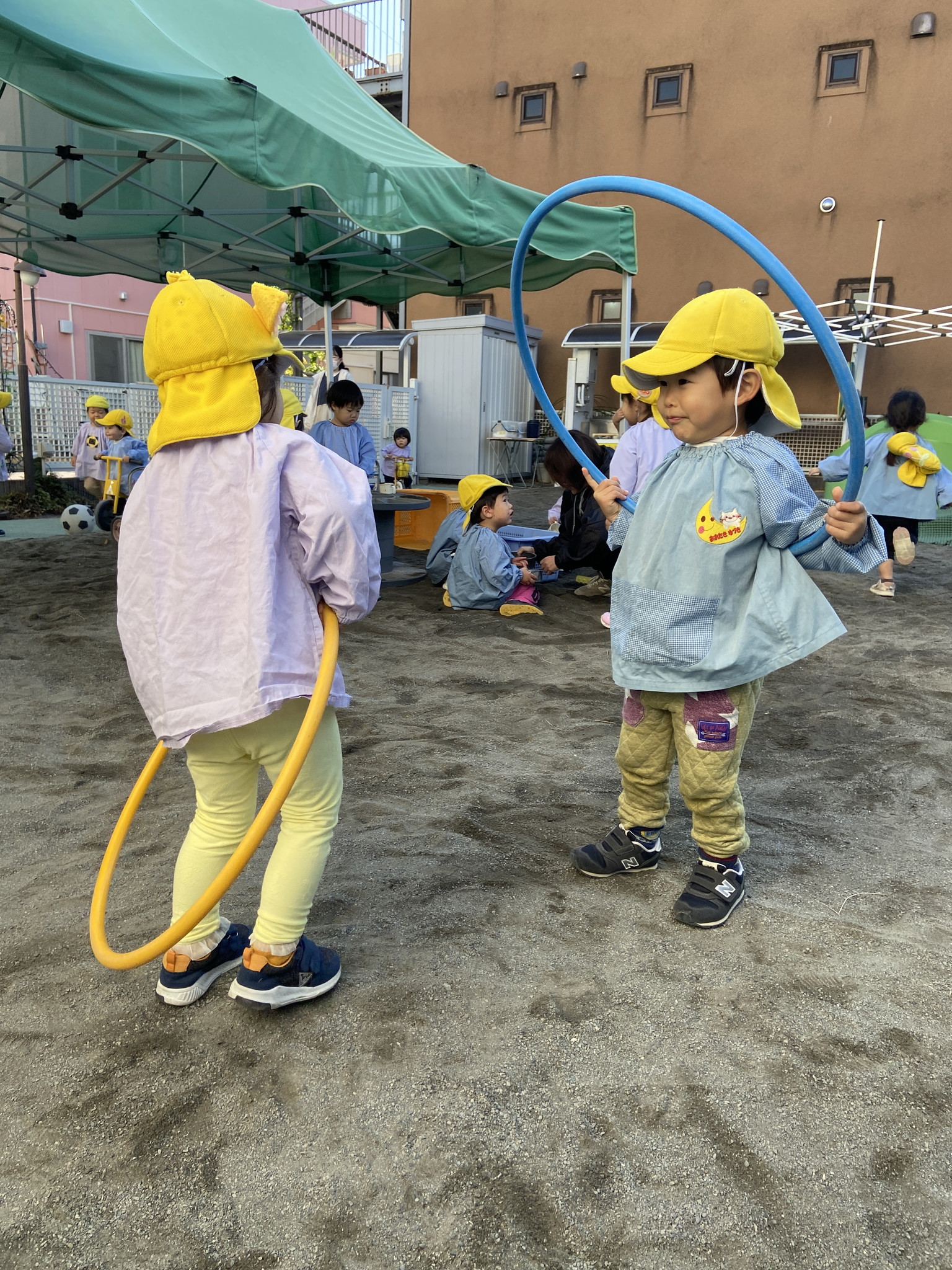 【 うさぎ 】 サラ砂たくさん作ったよ みて~赤い実いっぱい! お茶どうぞ~ ぼくのまねしてみてね! 鼻水ふいてあげるね ひよこ組さんかわいいね