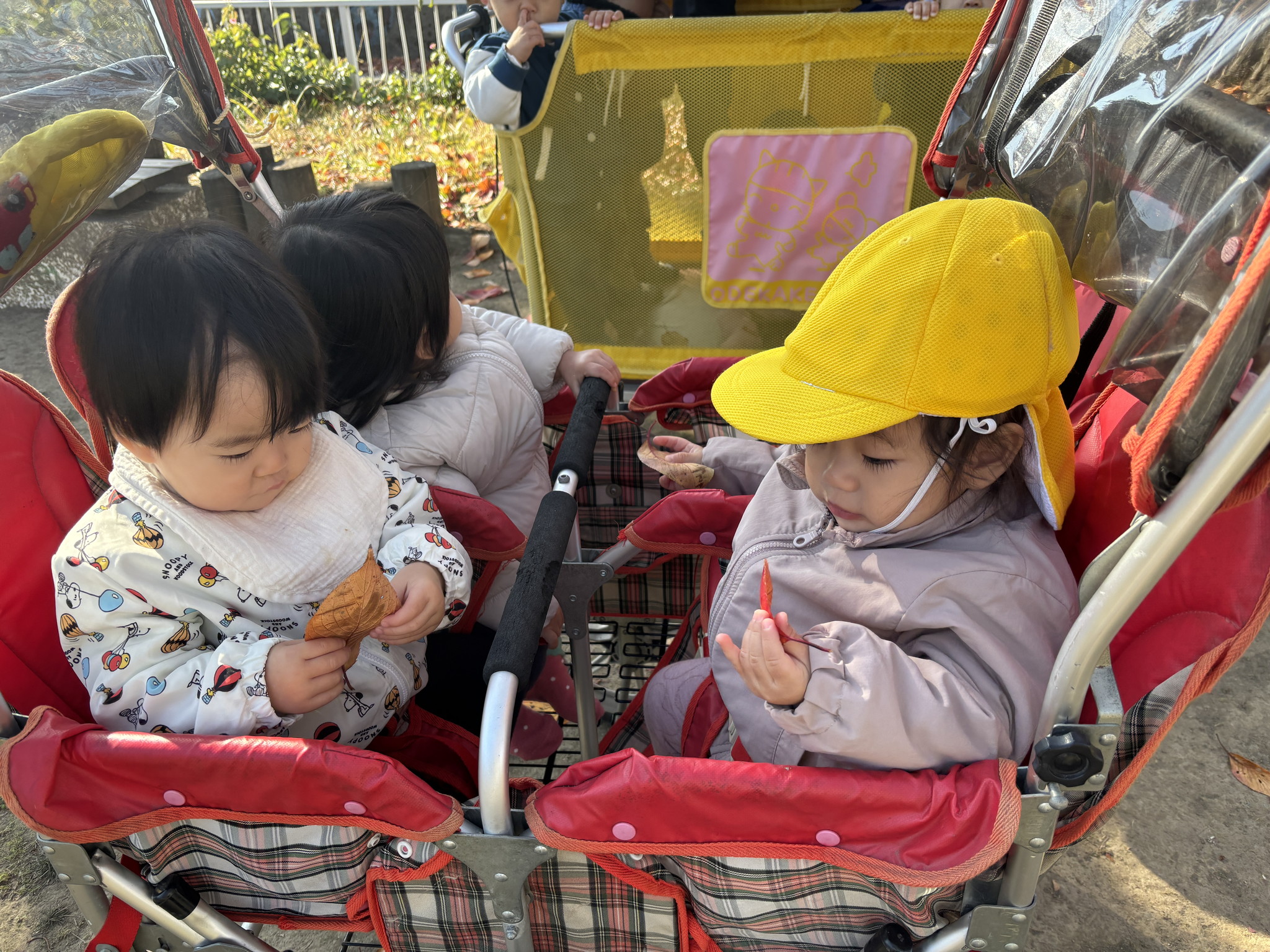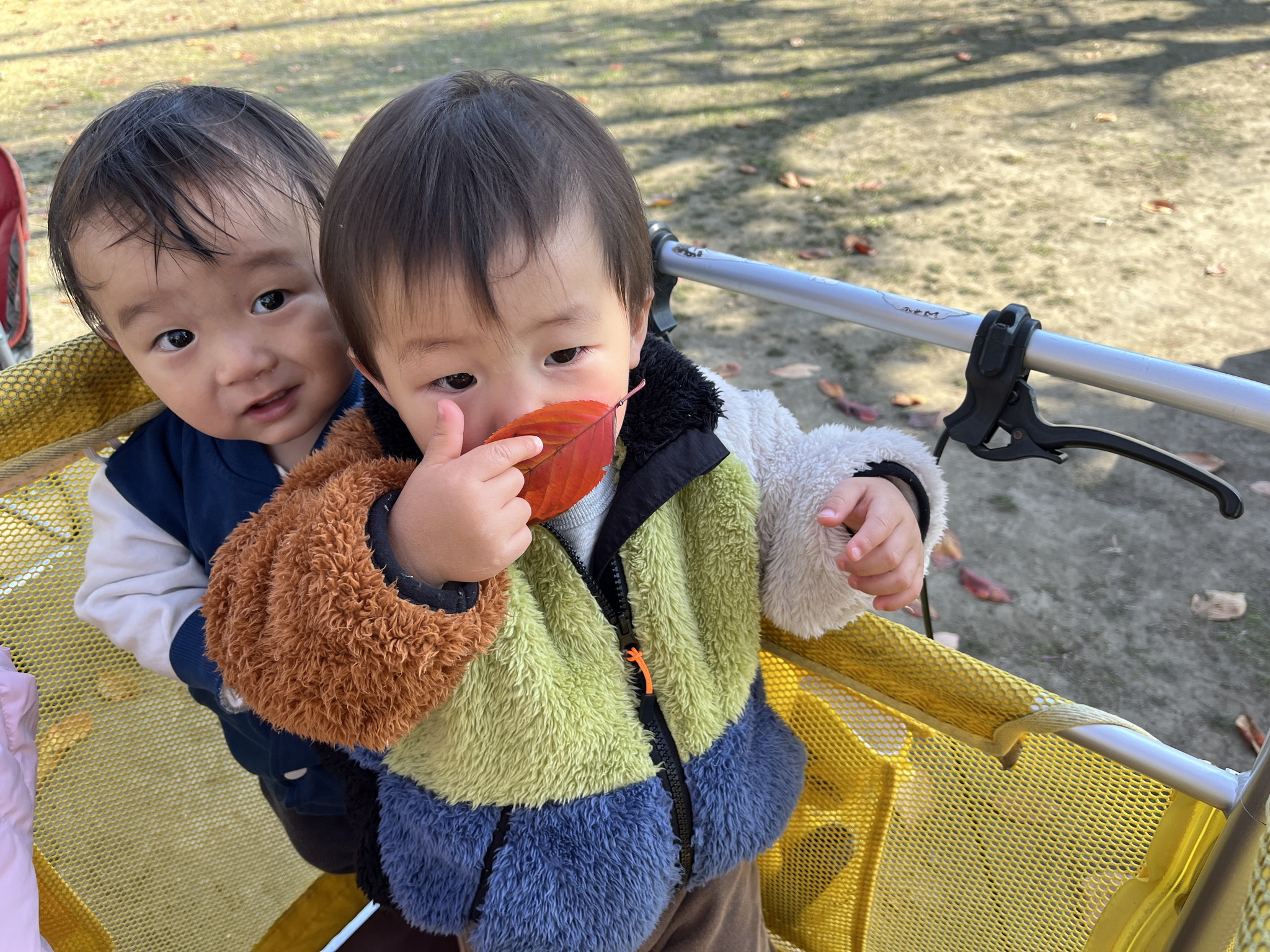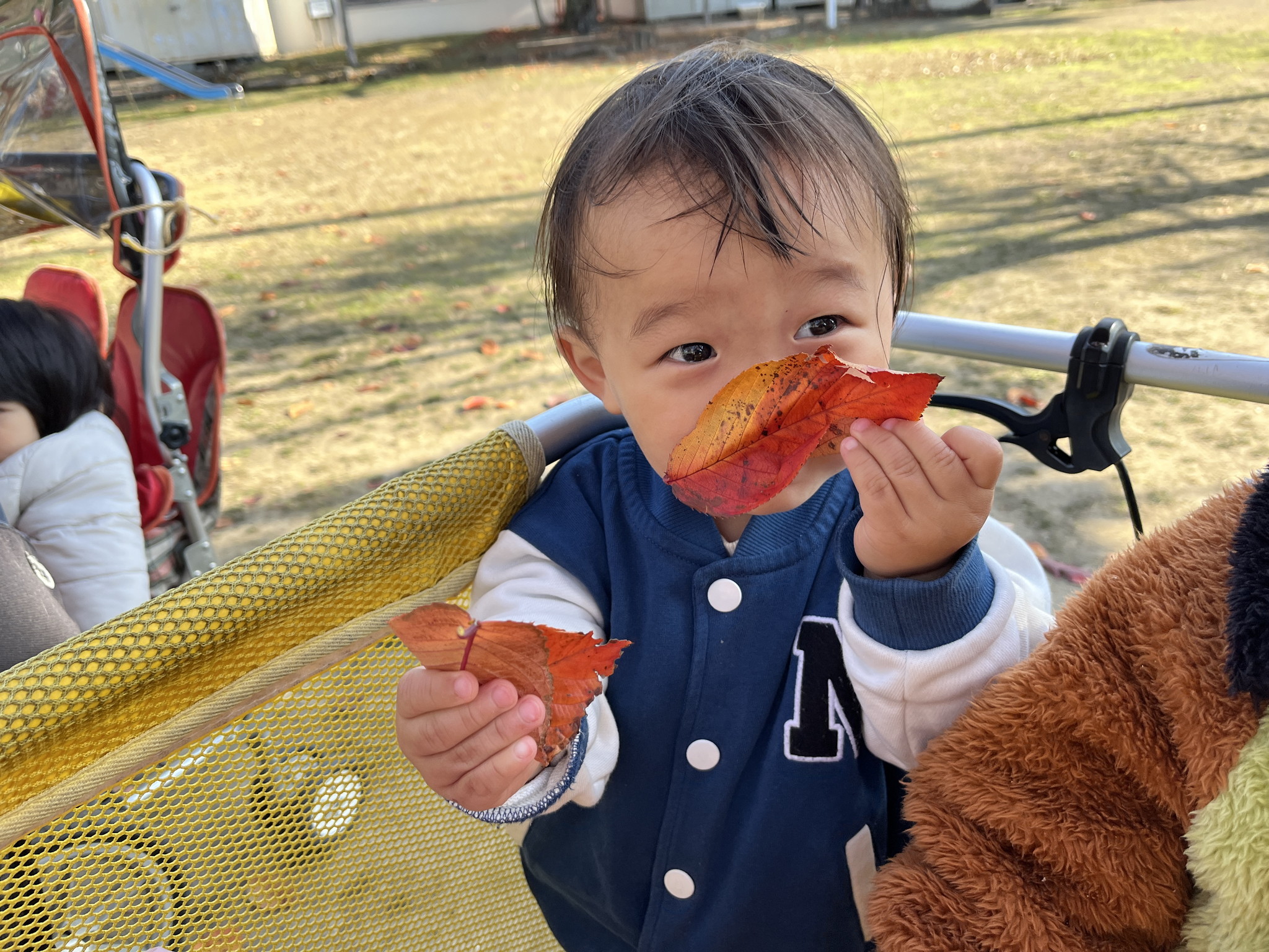【 ひよこ 】 いたぁ~! 静鉄とJRの電車をみてきました! 葉っぱ、い~っぱい^_^ みえたみえた! 赤い葉っぱたーくさん! にいにがあそんでくれたよ♪
