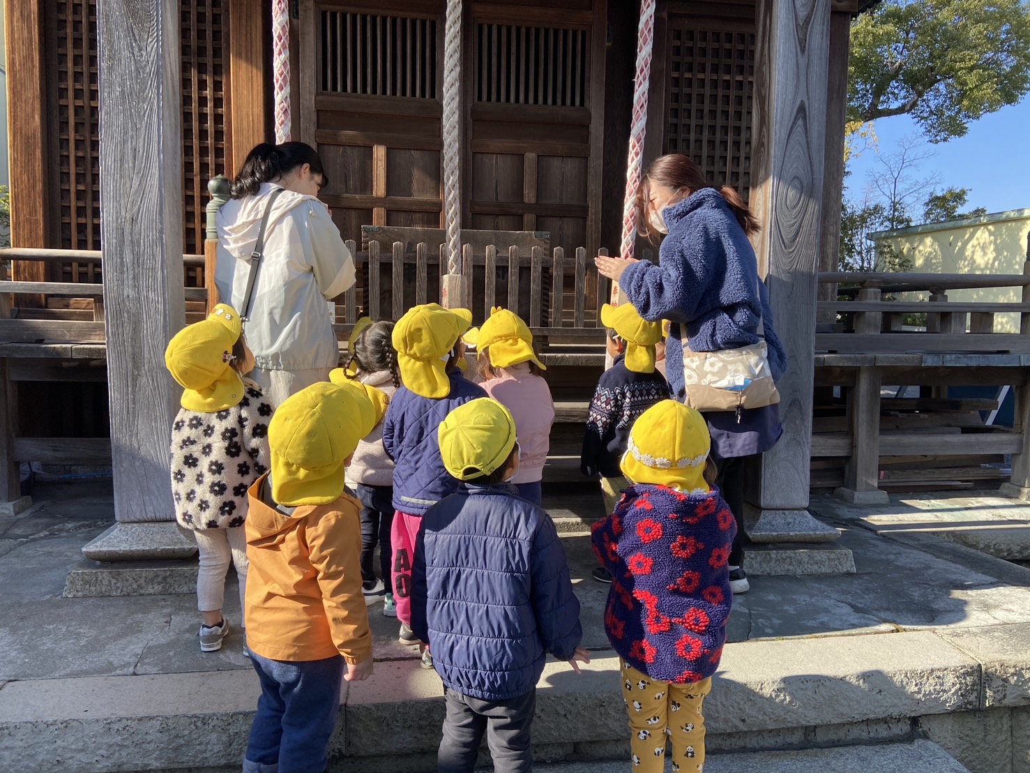【 うさぎ 】 あけましておめでとうございます 残り3か月のうさぎぐみ生活を元気にすごせますように!と初詣に行ったよ 巴川沿いを歩いたり 園庭でもたくさんあそんだよ