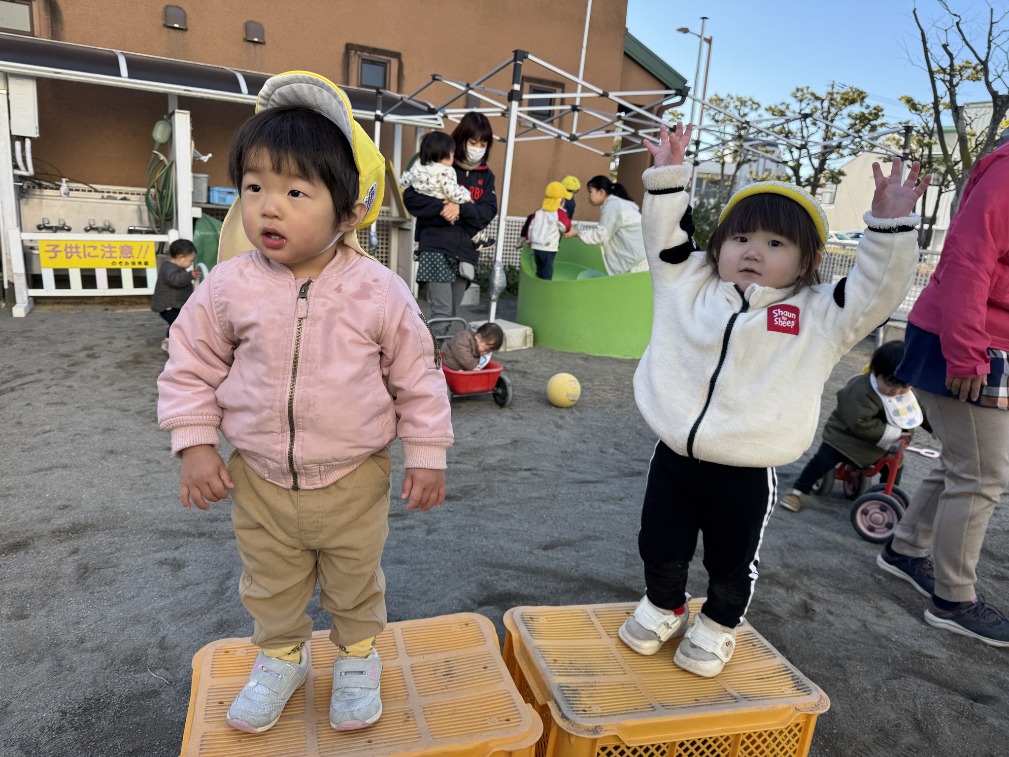 【 あひる 】 2人でボール転がし!よいしょよいしょ お山ができたよ! ごはん作ってます! みーつけた! やっほー^_^