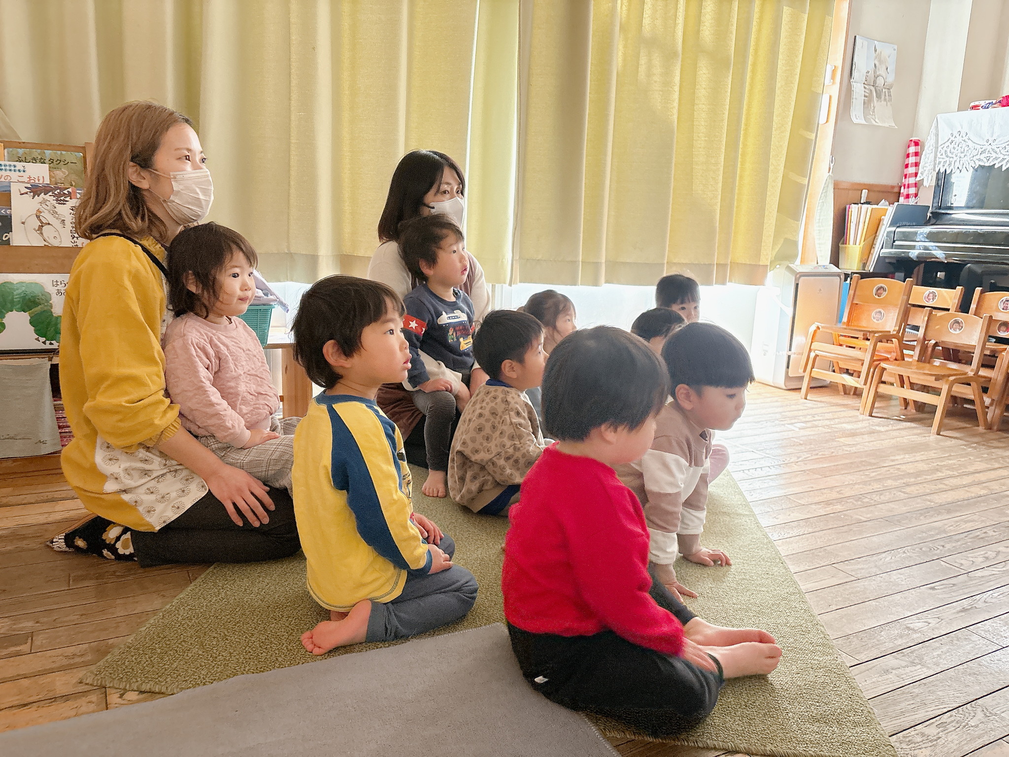 【 うさぎ 】 99匹の羊のおはなしをきいたよ 神さまは1人ひとりを大切にしているよというメッセージでした 輪の中をJump!上手でした!