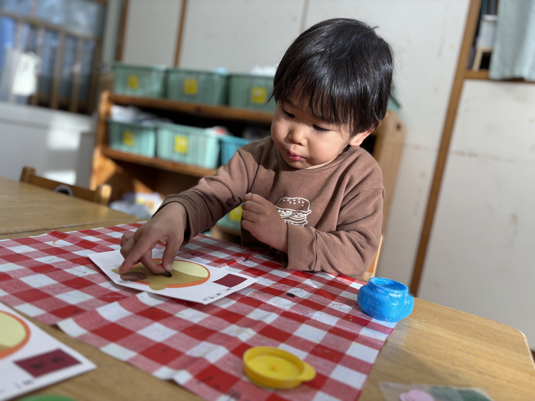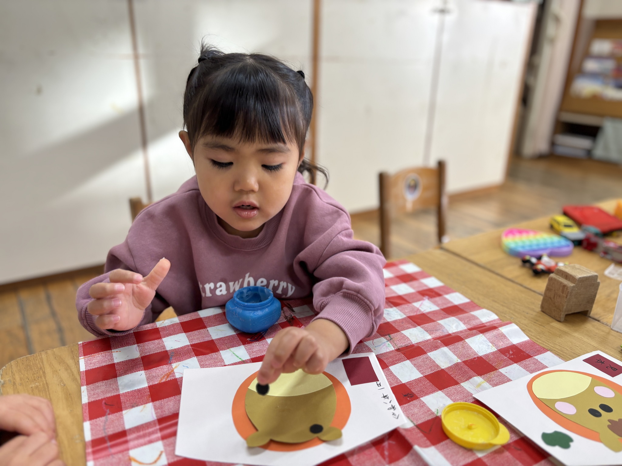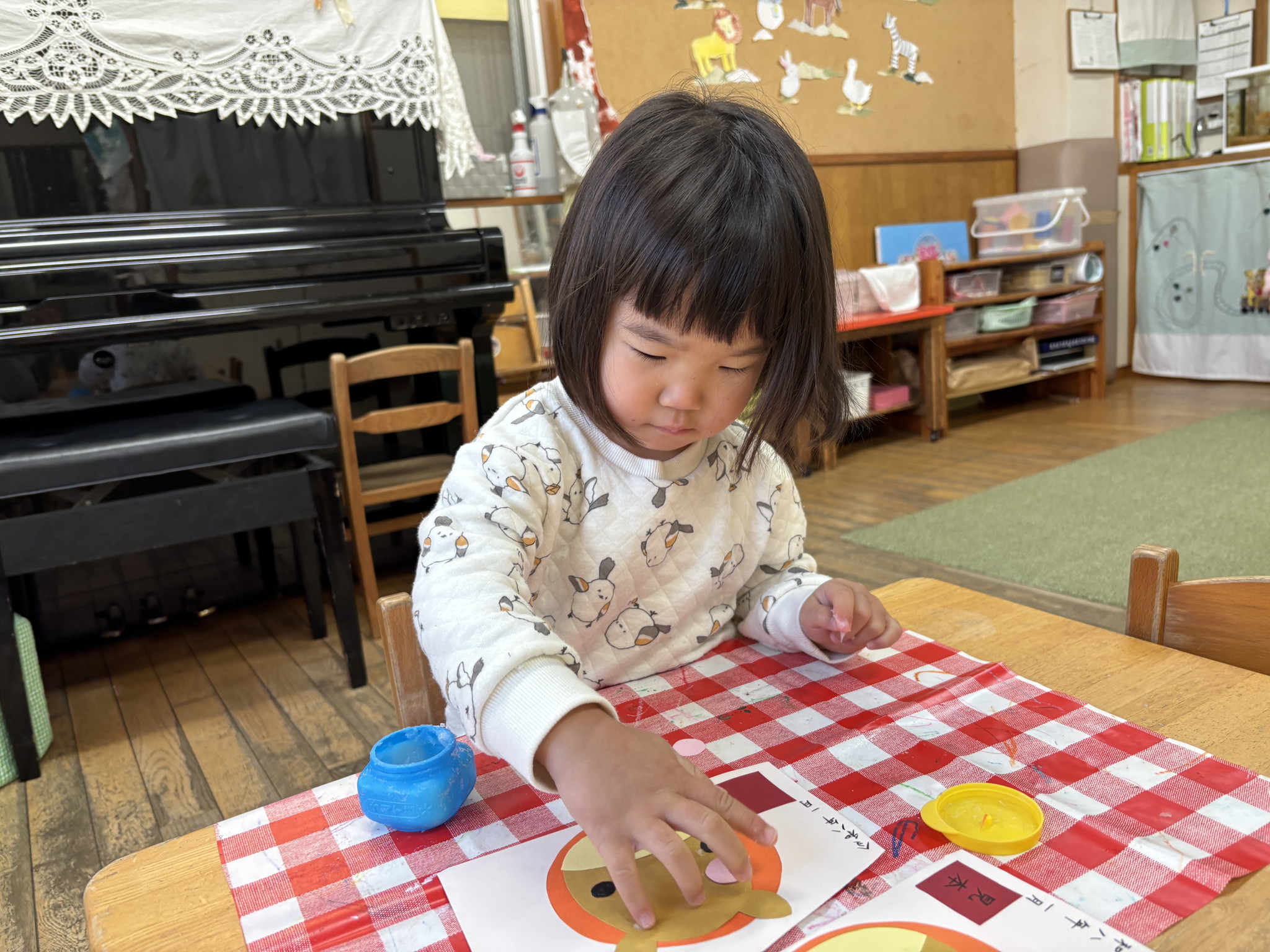【 うさぎ 】 絵馬作り でんぷんのりでお馬さんの顔をつけました いろんな車が通っていくね アンパンマンかるたが白熱! 「はい!」と天気に絵札を取っています