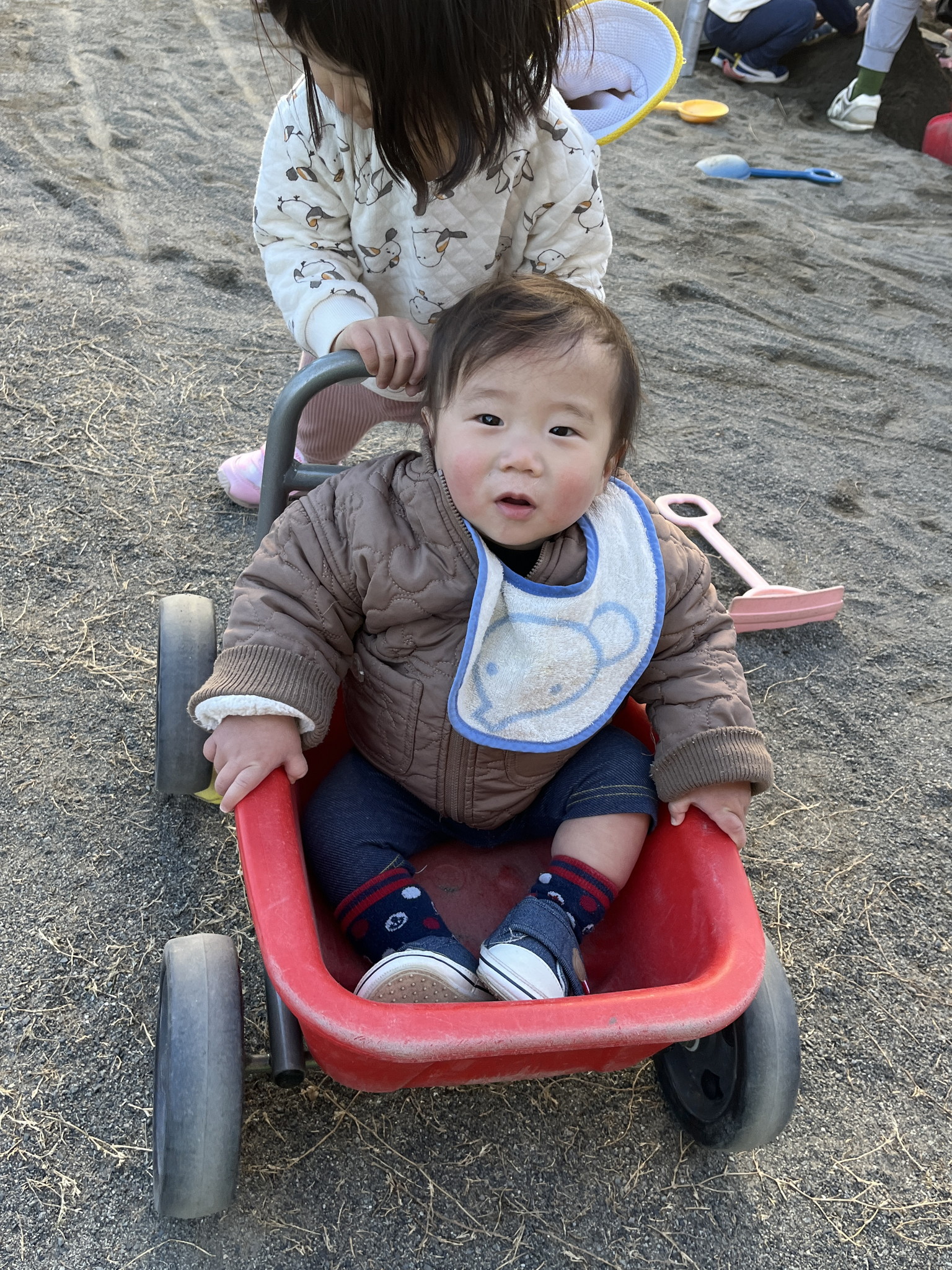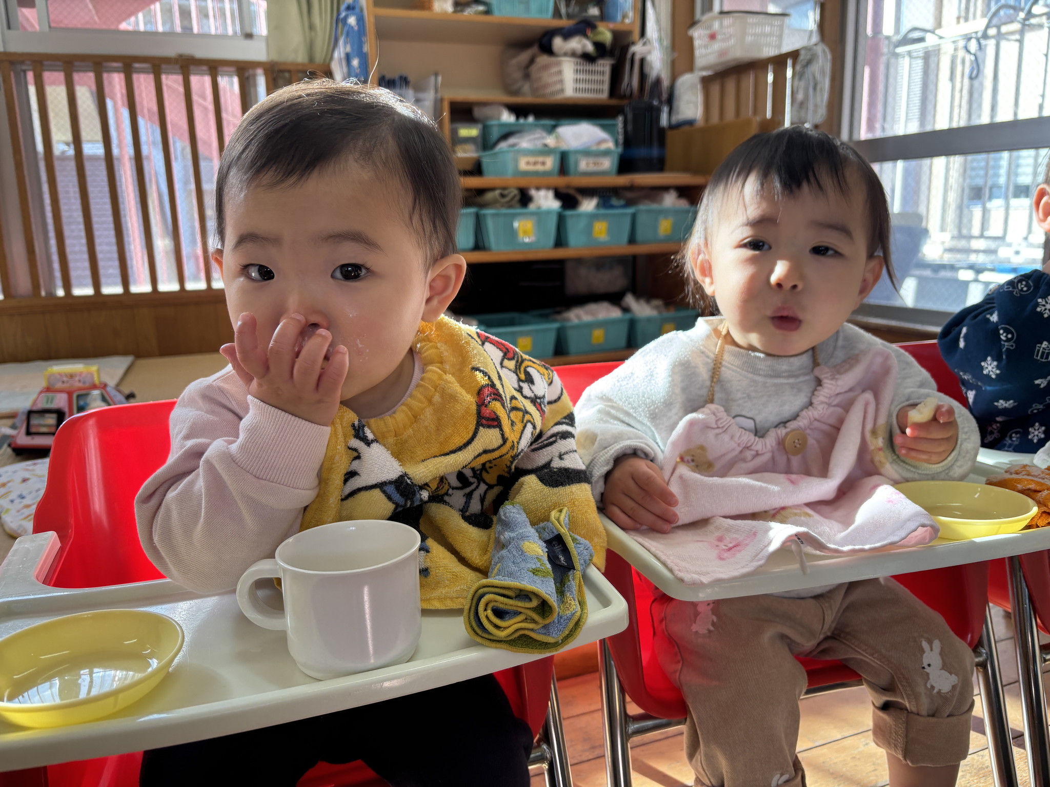 【 ひよこ 】 大好きなおやつTime おもちゃを持ってあそぶようになりました^_^ ターッチ✋ 園庭もたのしかったね 巴川散歩♪