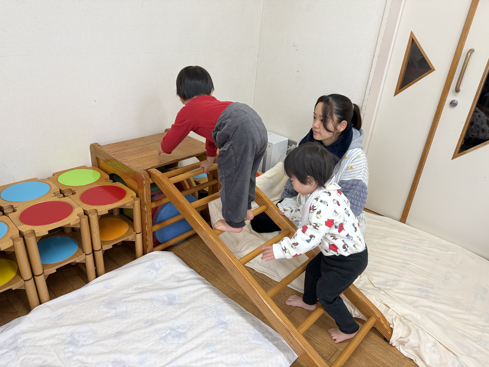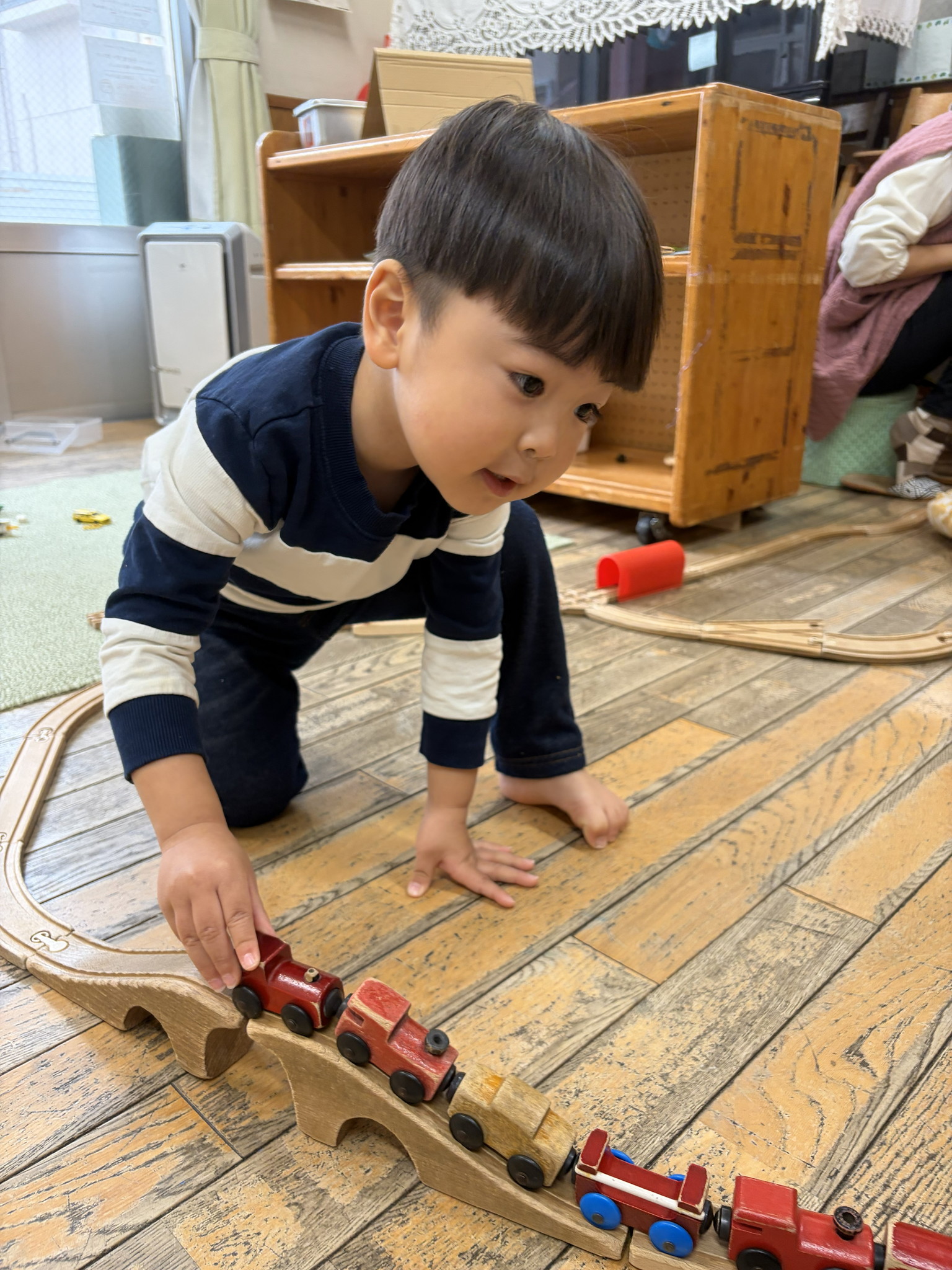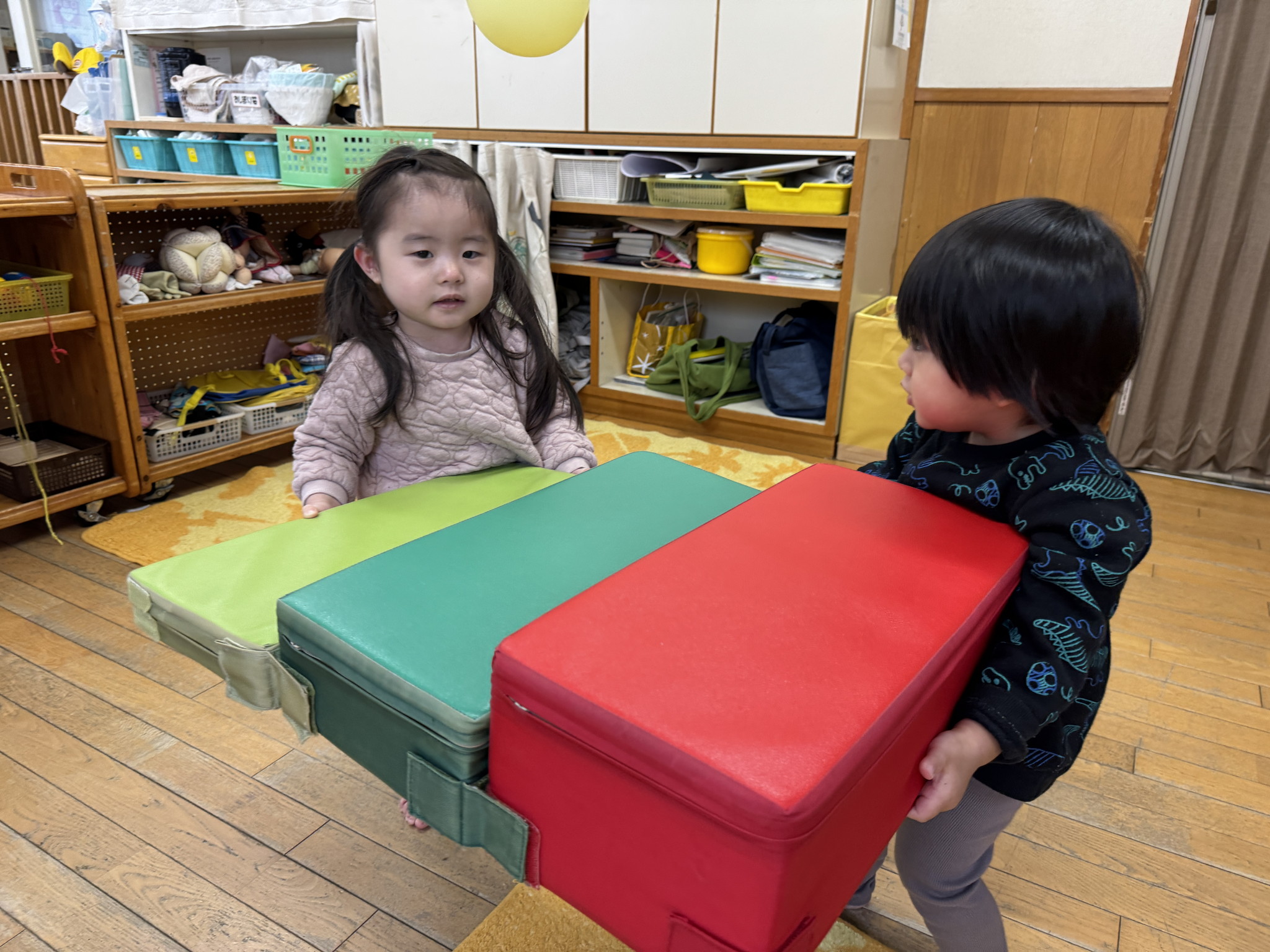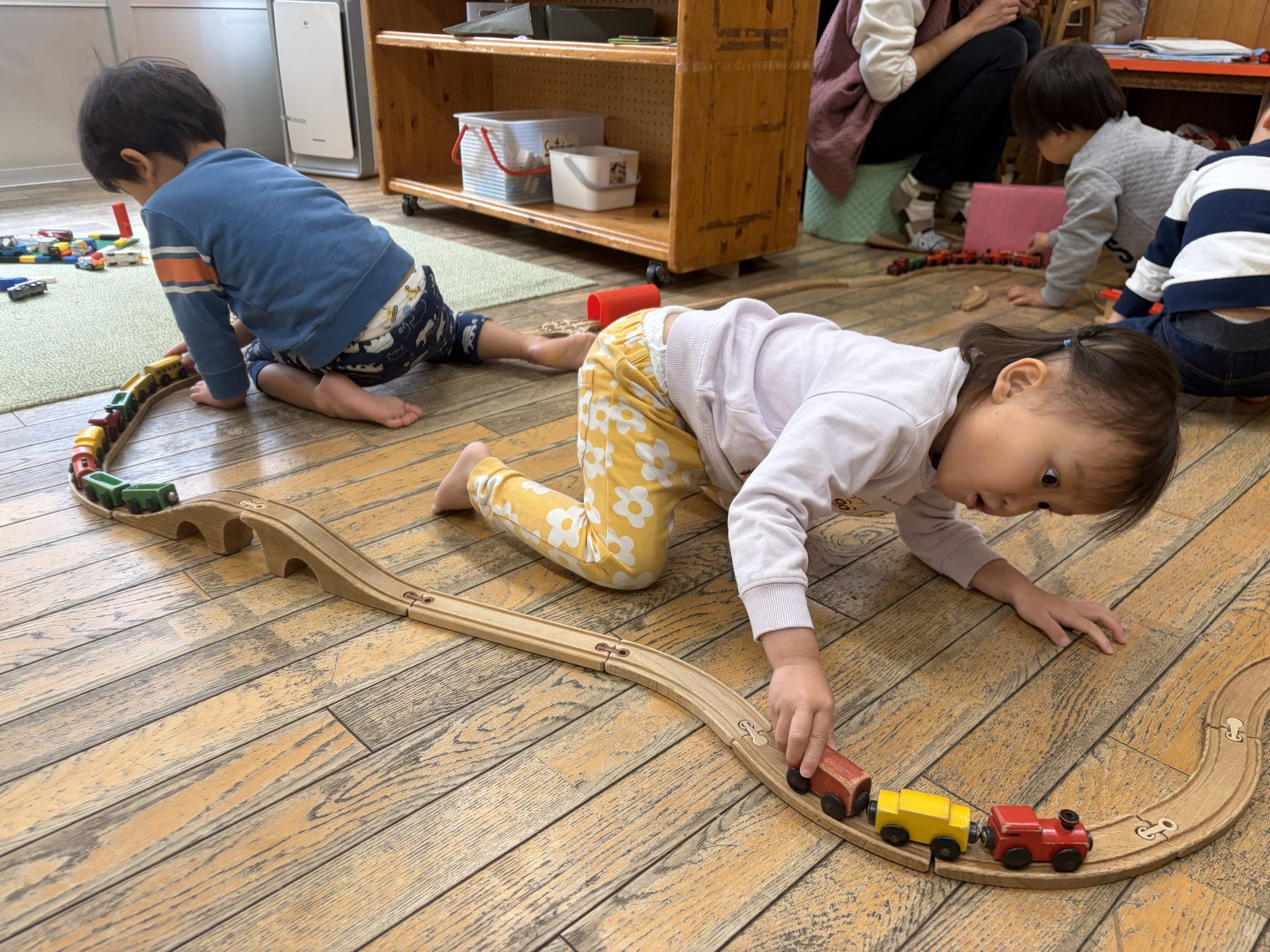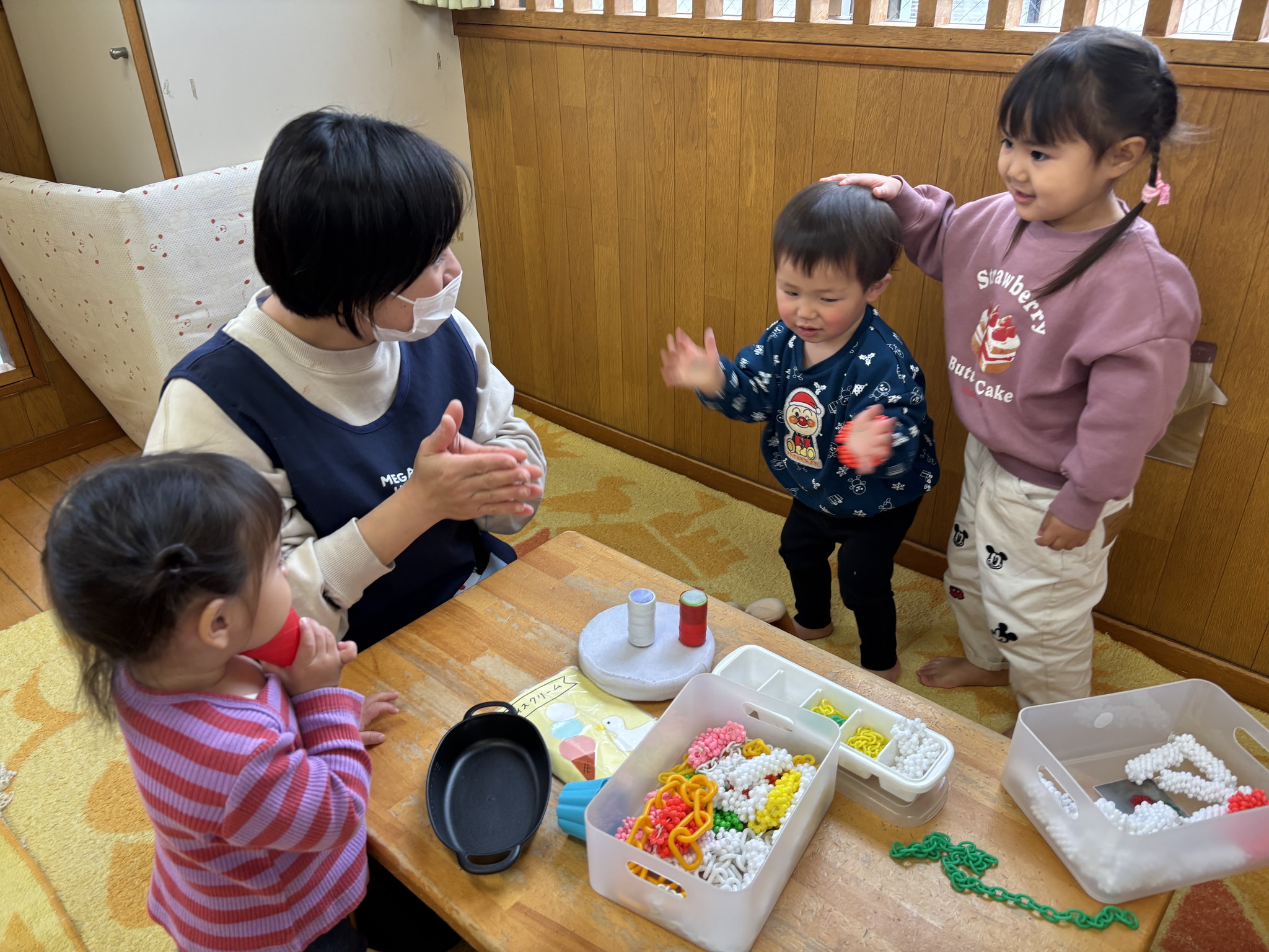 【 あひる 】 みんなが大すきな絵本を見たね 大集合~! お片付け上手なあひるぐみ♪ まもなく列車が発車しまーす 身体もたくさん動かしてあそんだね