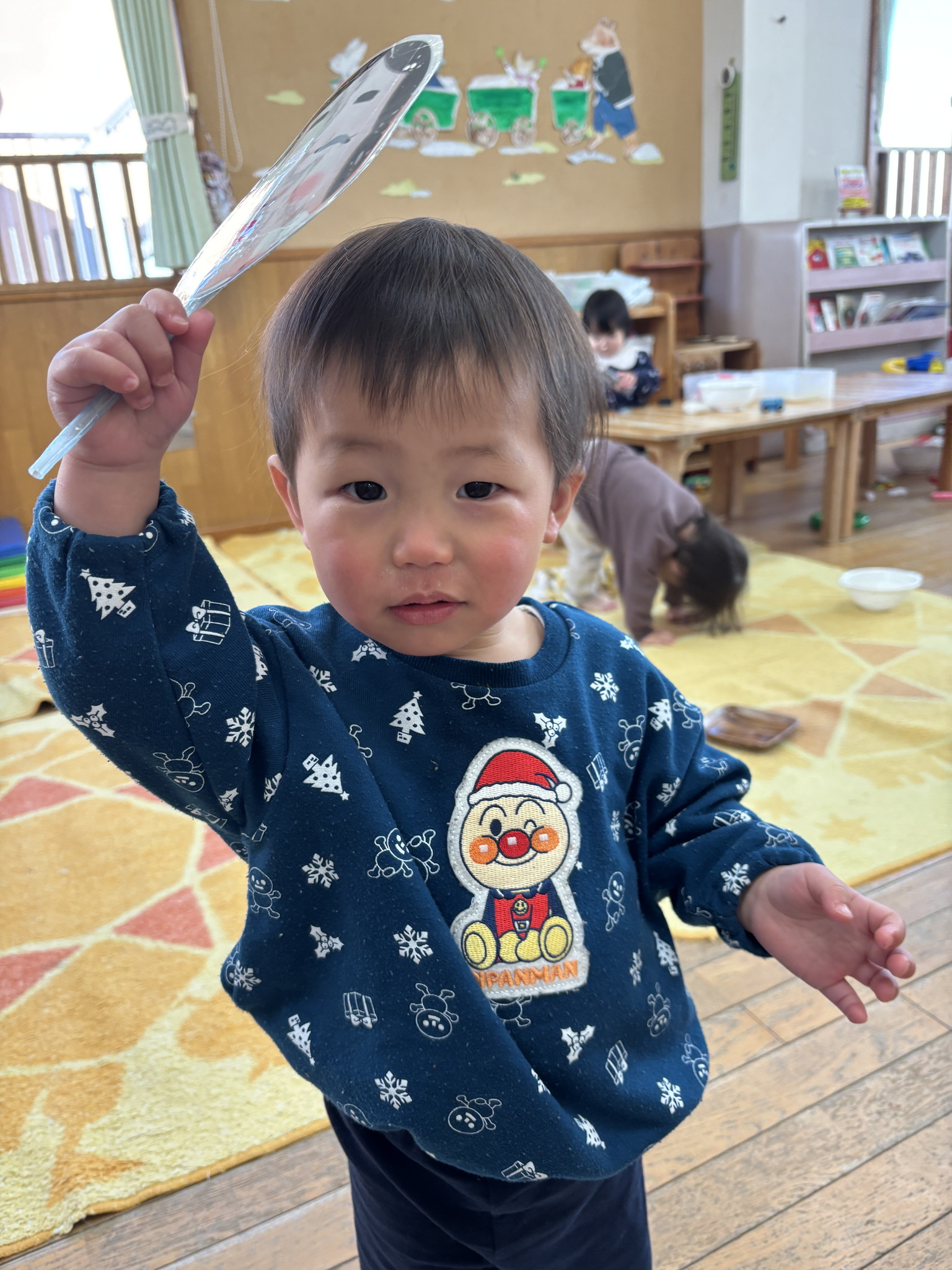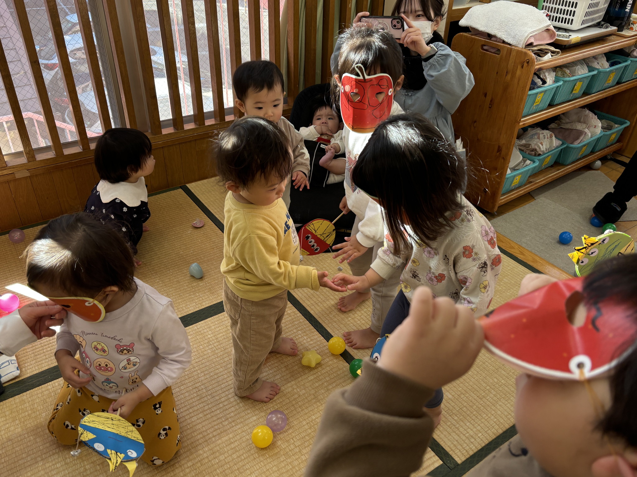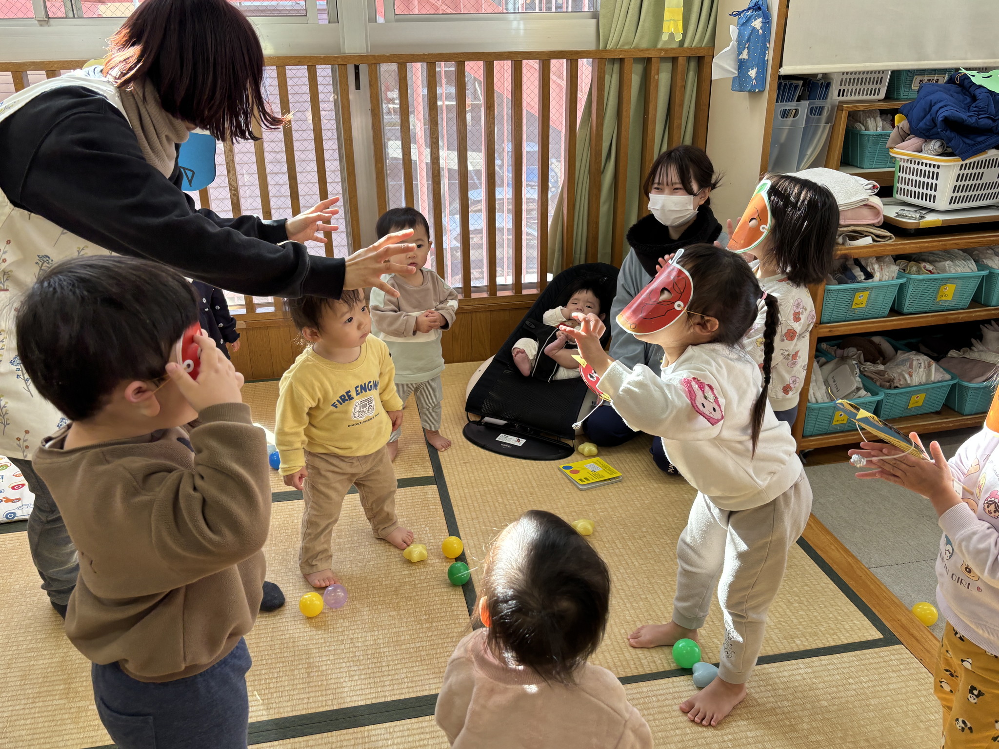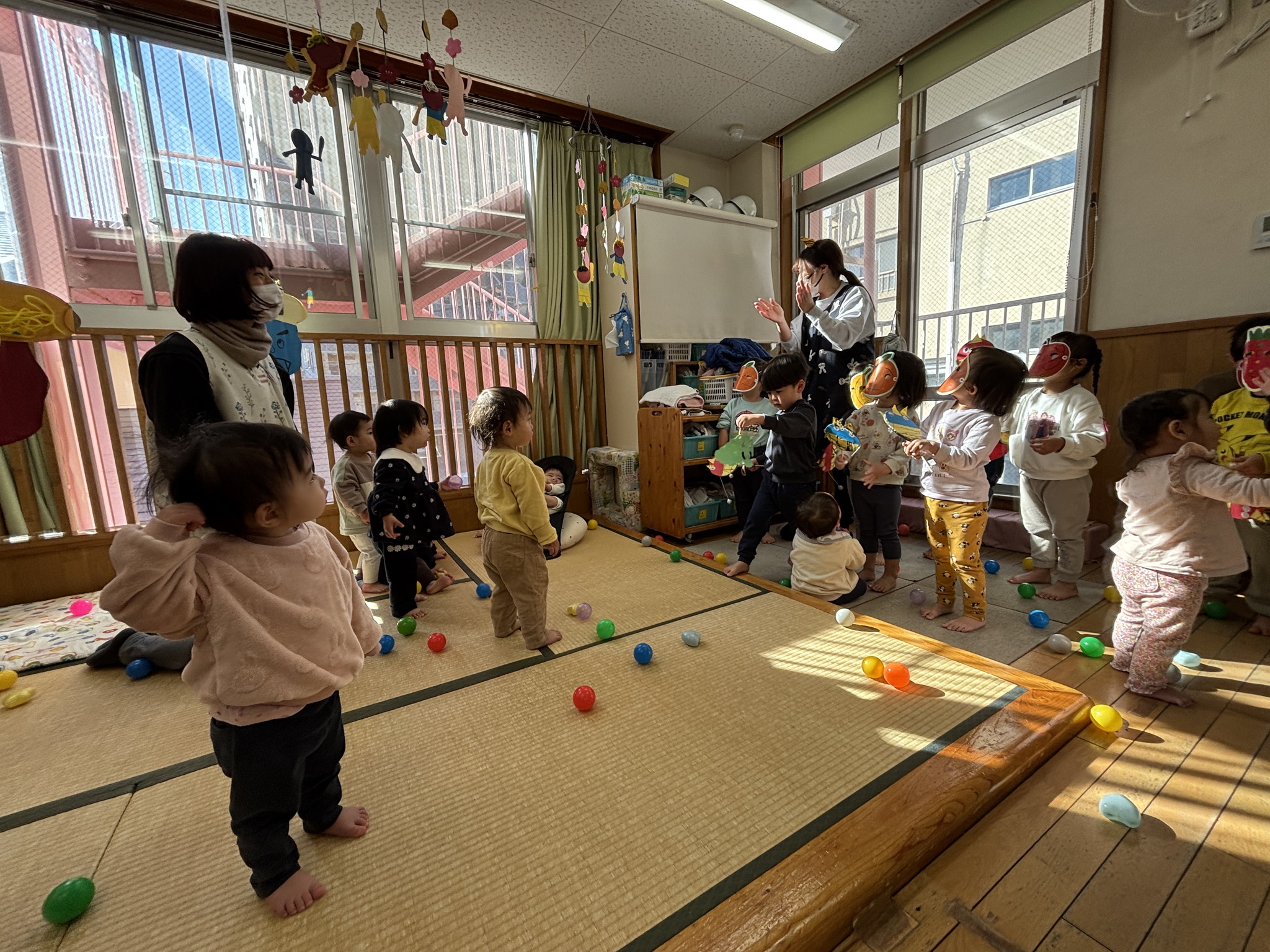 【 あひる 】 今日は節分!みんなで鬼たいじをしたよ おにはそと!ふくはうち! 最後は仲よく“おにのパンツ”を踊ったよ