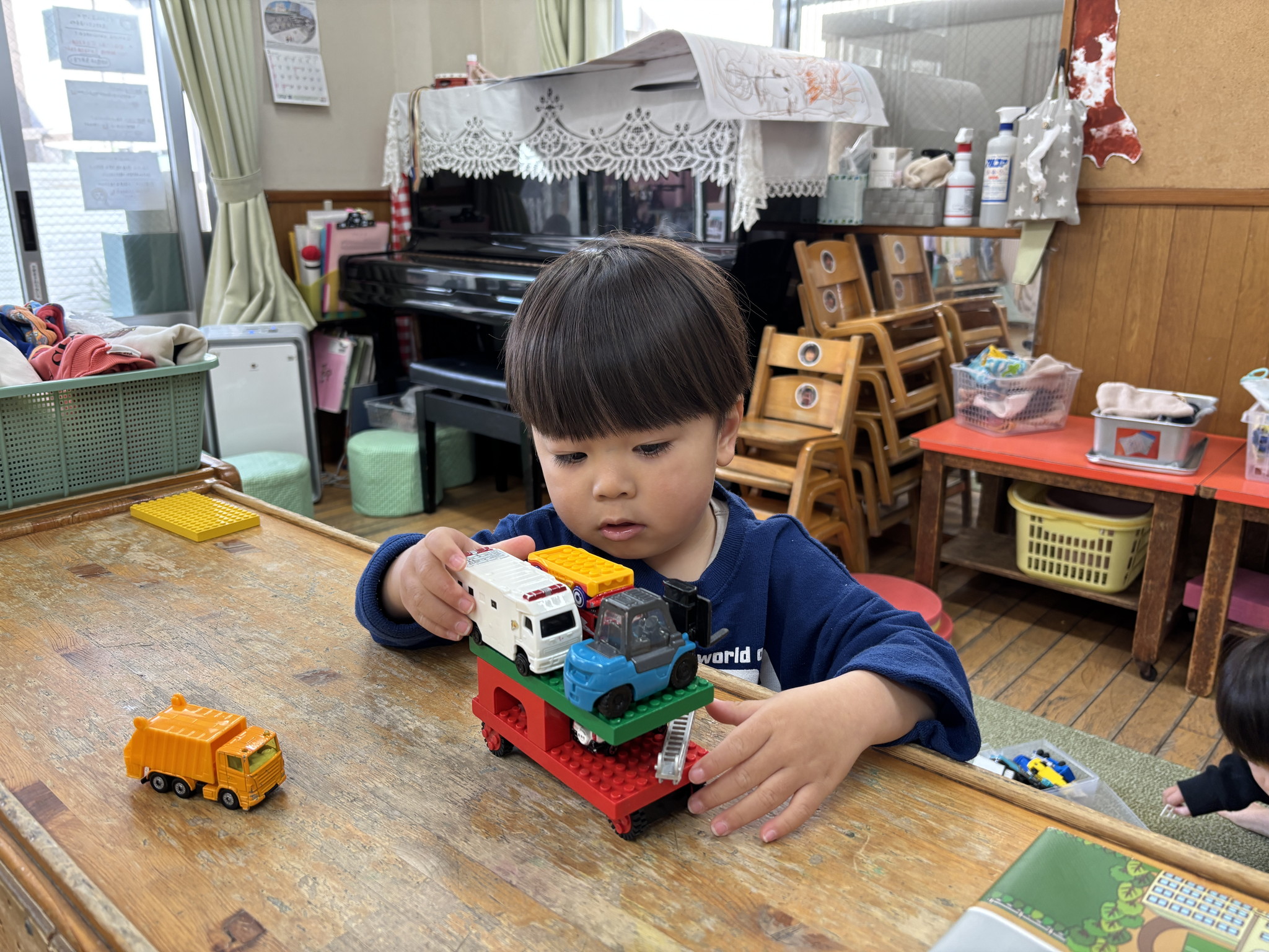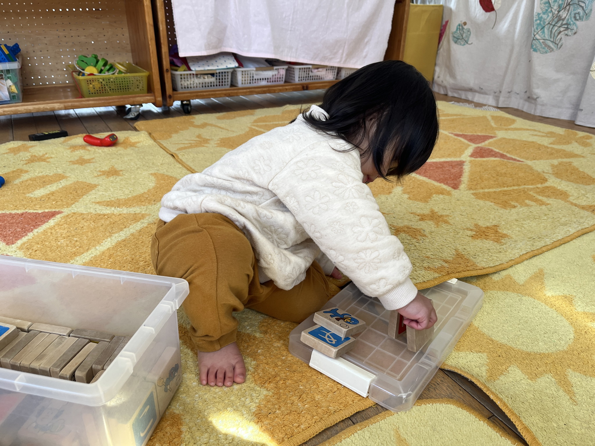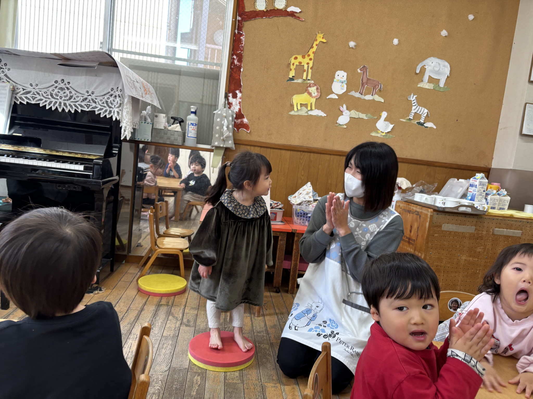 【 ひよこ 】 ひよこぐみ10名全員集合! べー^皿^ 落ちないようにそ~っと・・・ 届かない~>_< ならべてならべて いいこいいこ♪