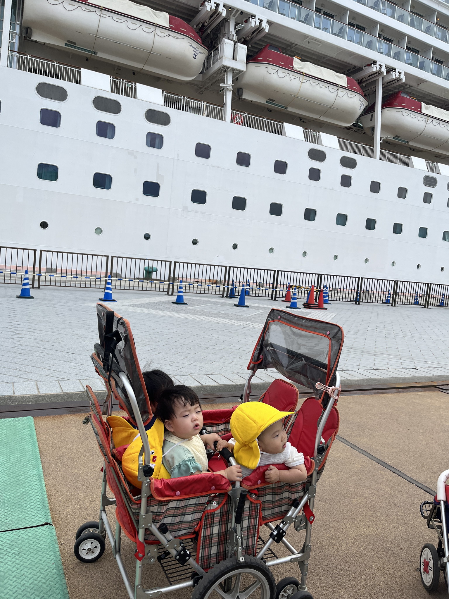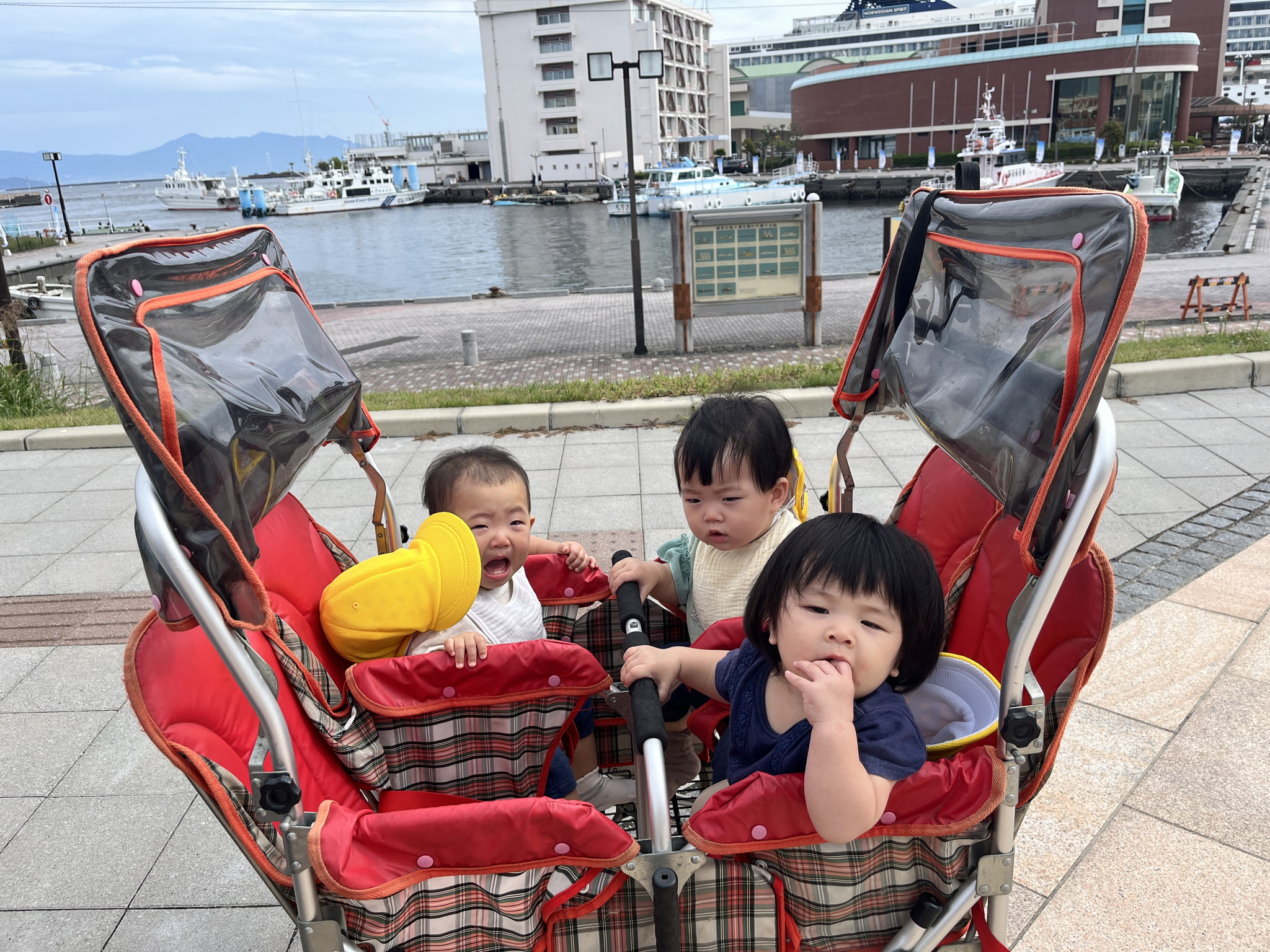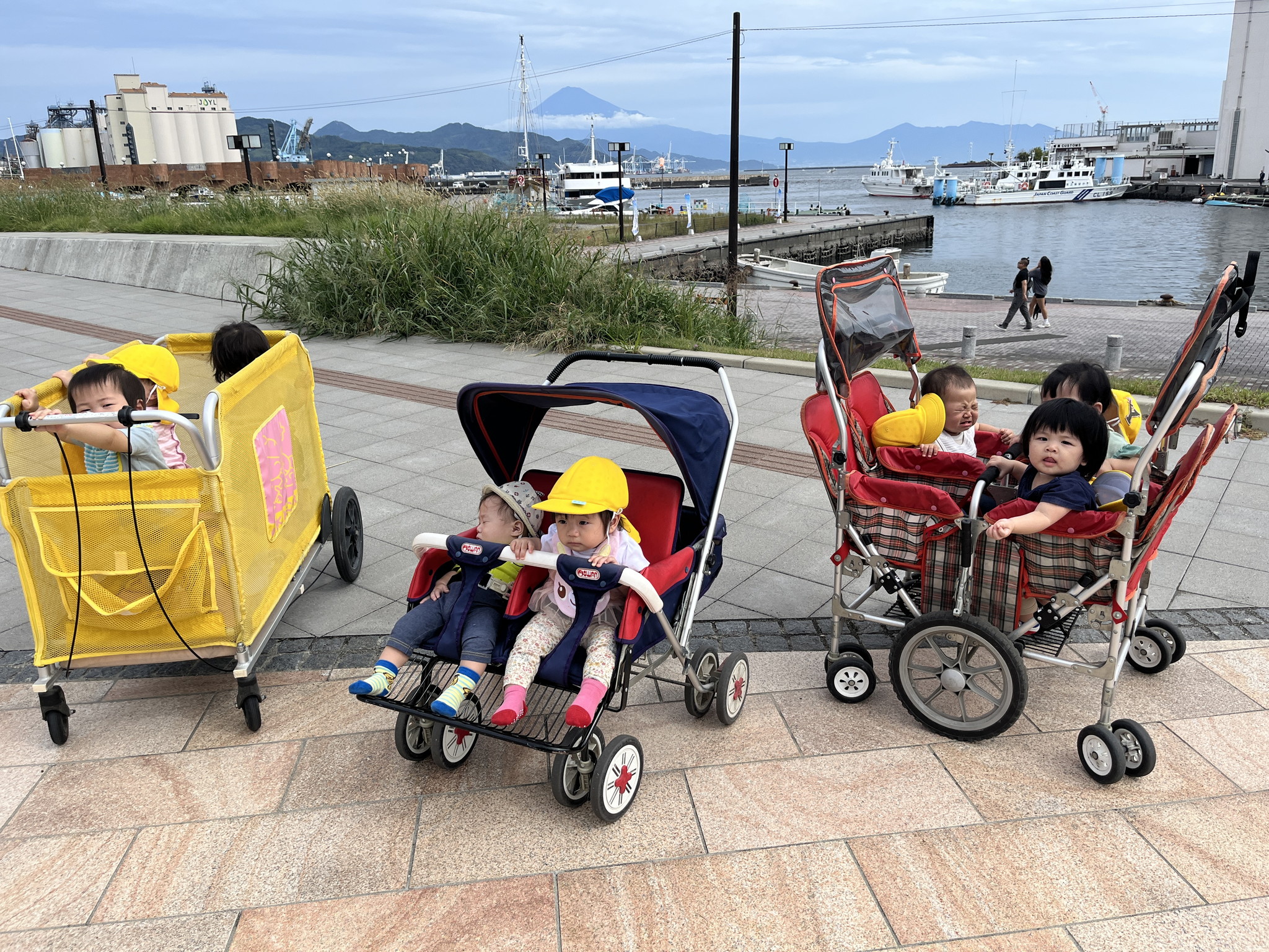 【 ひよこ 】 みんなでお散歩に行ってきました! お天気が良くてお散歩日和でした♪ 大きい船も来ていたよ 手押し車もラクラク押せます!