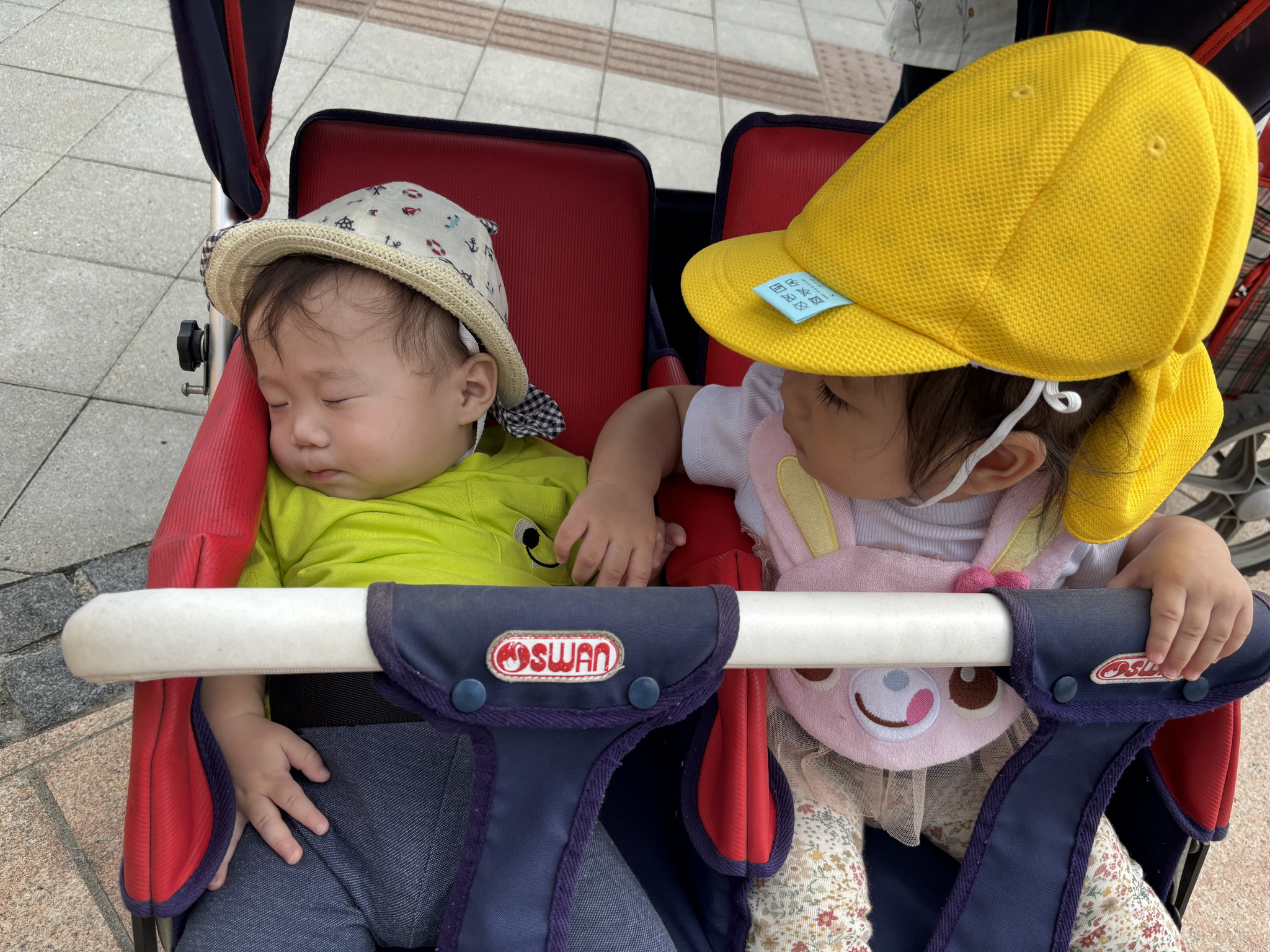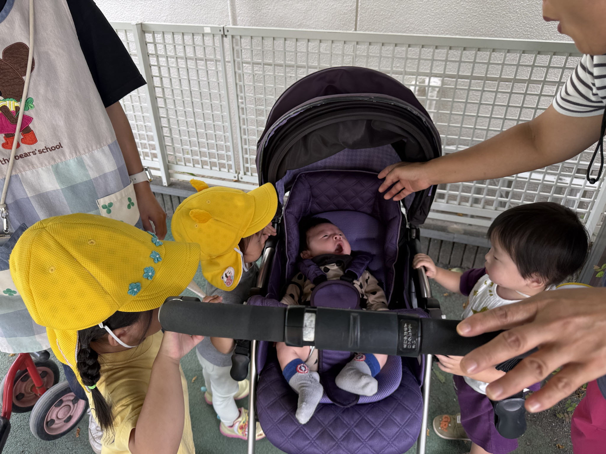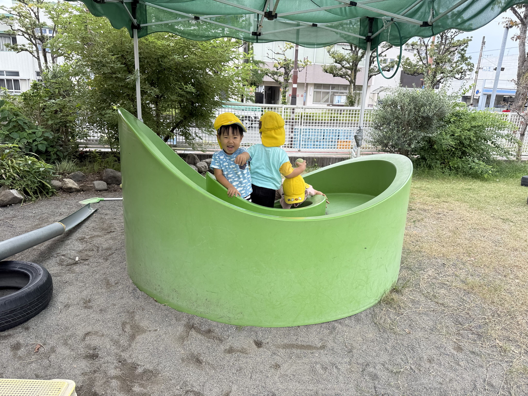 【 ひよこ 】 みんなでお散歩に行ってきました! お天気が良くてお散歩日和でした♪ 大きい船も来ていたよ 手押し車もラクラク押せます!