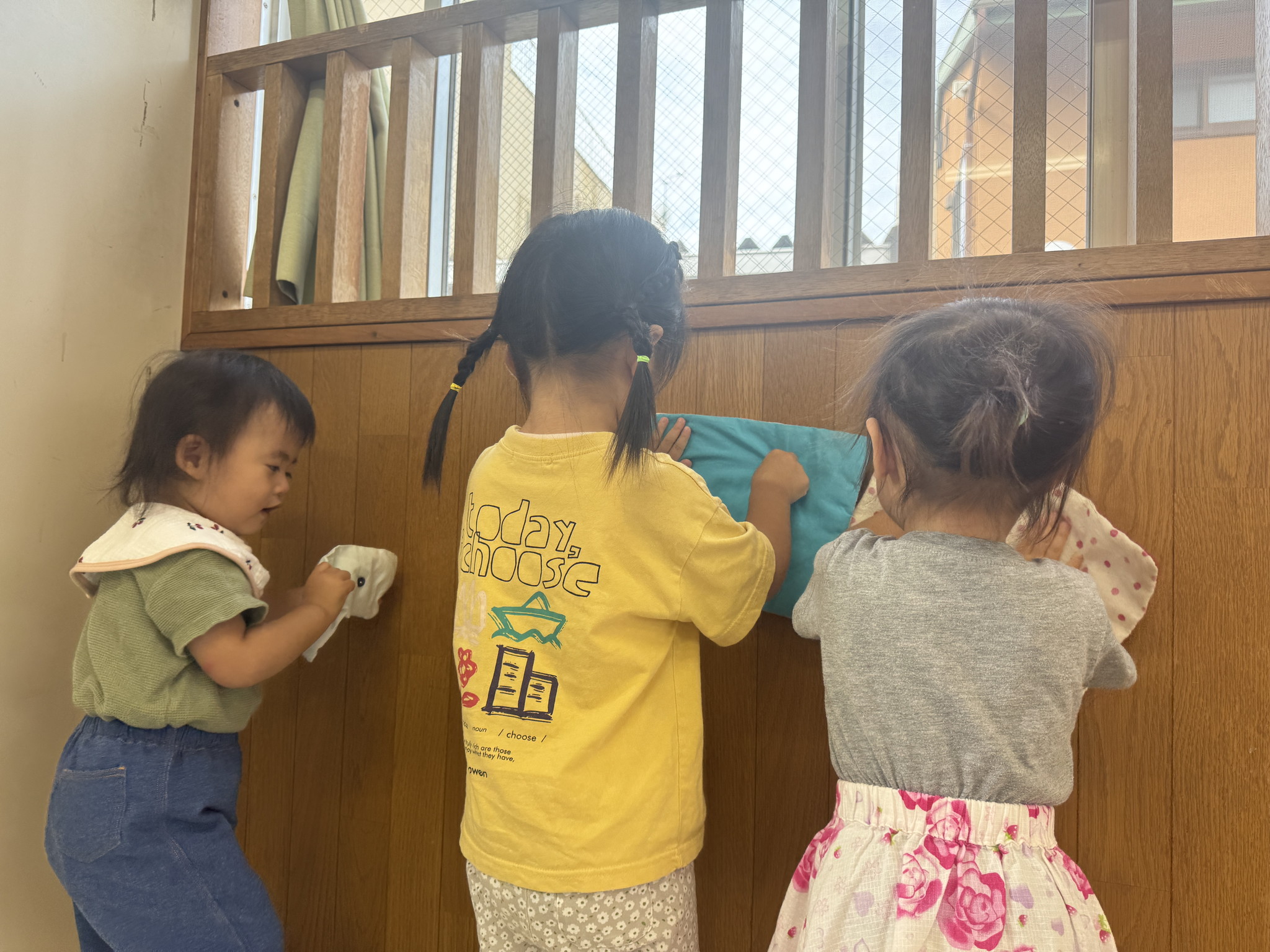 【 あひる 】 いないいない ばぁ!? 新聞紙のお布団でおやすみなさ~い あ!赤ちゃんおきたよ 先生みーつけた みんなでお掃除♪ いっくぞー!! ボールすべり台完成