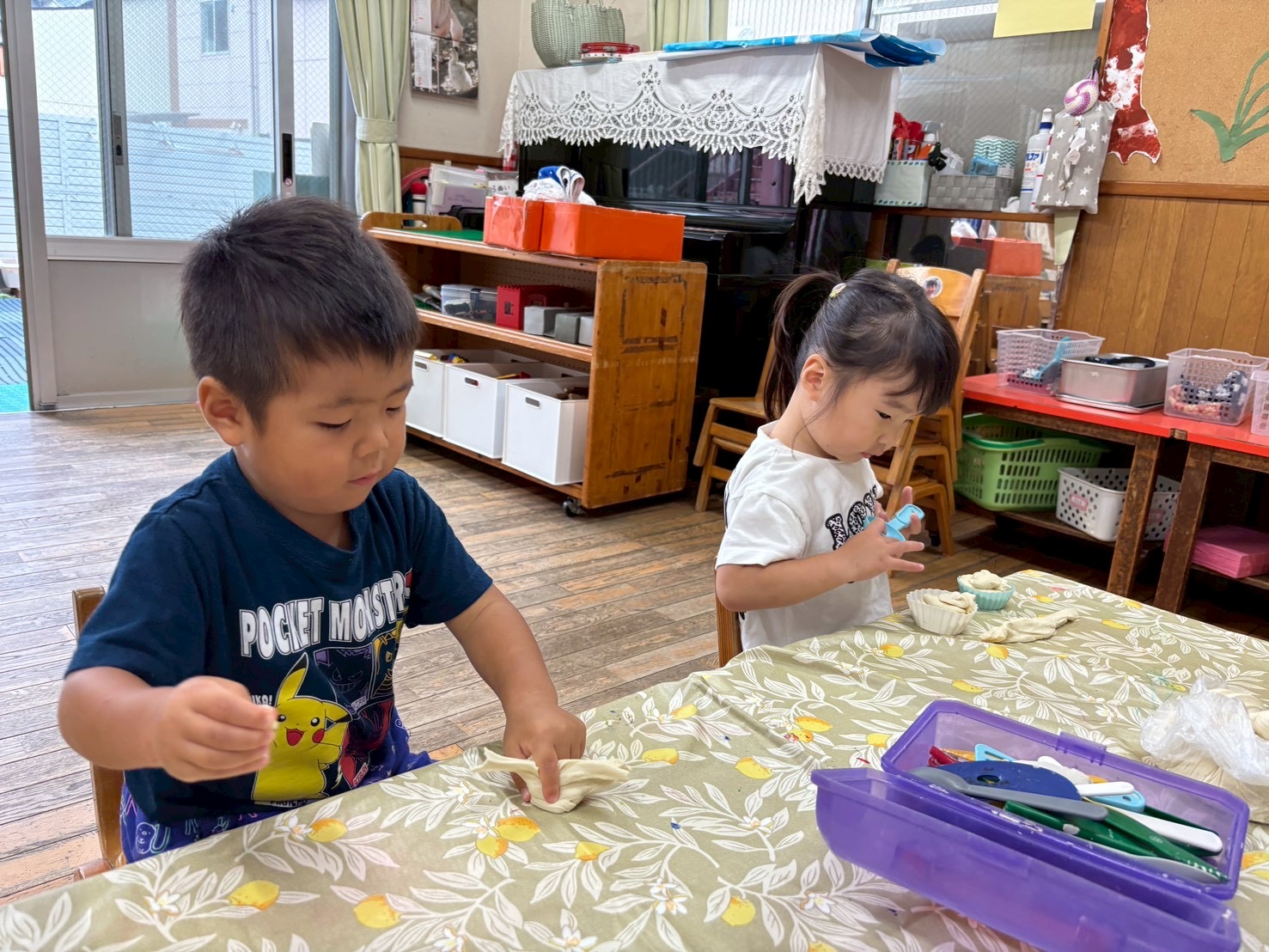 【 うさぎ 】 小麦粉粘土でお月見だんごを作ったよ おだんごも飾って、のぞみ文庫をしたよ どれにしようかな~