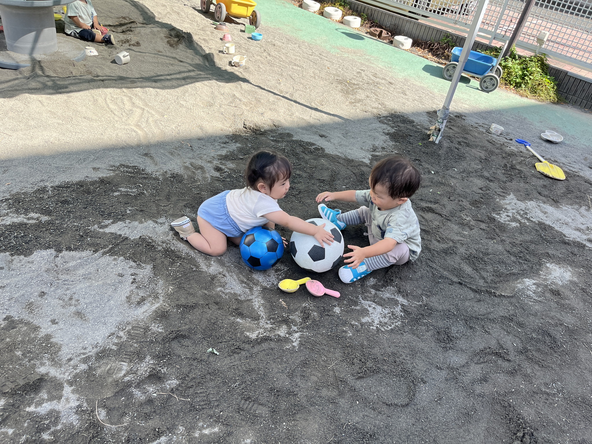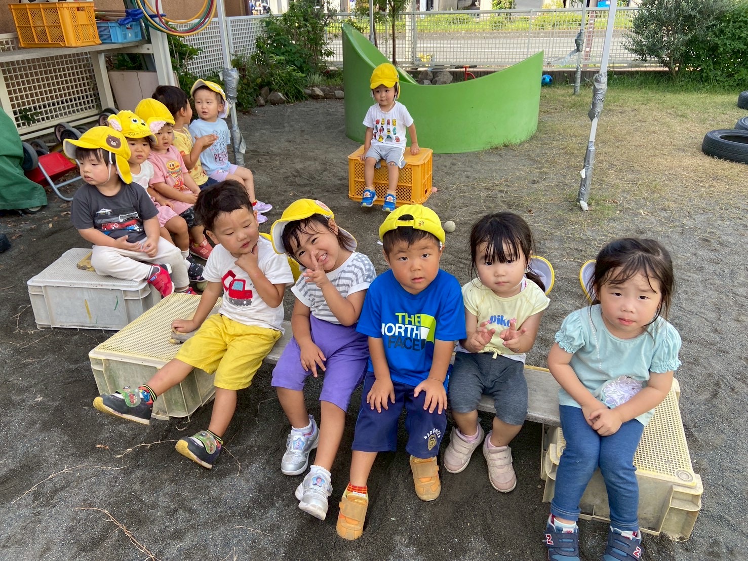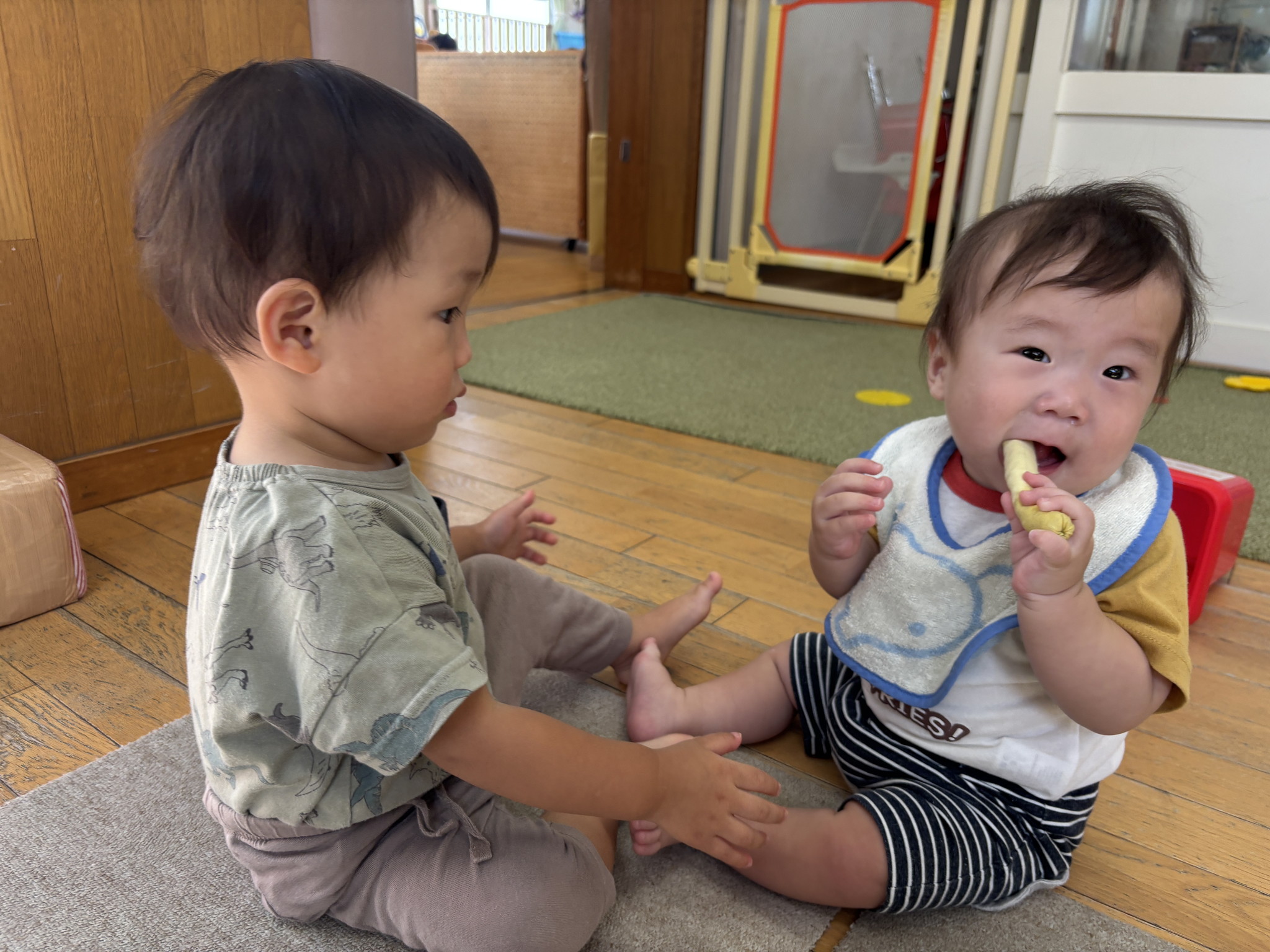 【 ひよこ 】 仲良し2人組♪ 大好きなおやつの時間 幸せだね(∗˃̶ ᵕ ˂̶∗) 今日は暑い日だったけどお外は楽しいね♪ 園庭デビューです