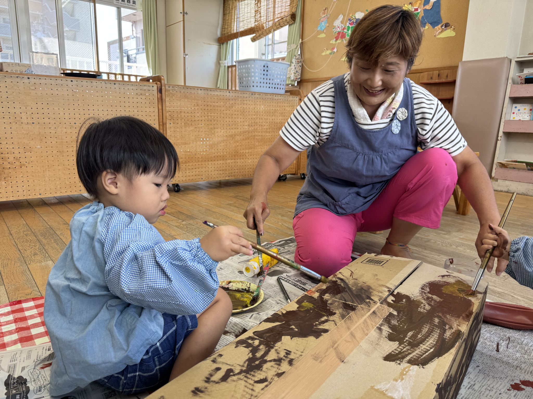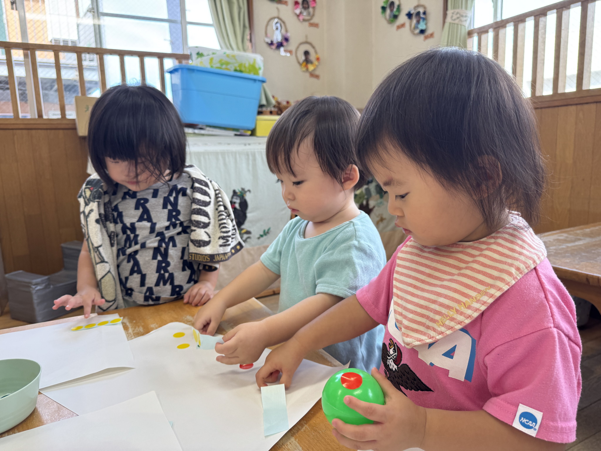 【 あひる 】 なにが完成するんだろう? 上手にぬりぬり この色つかおっと! あれ?ボールにもシールが! どこに貼ろうかな お~い!!