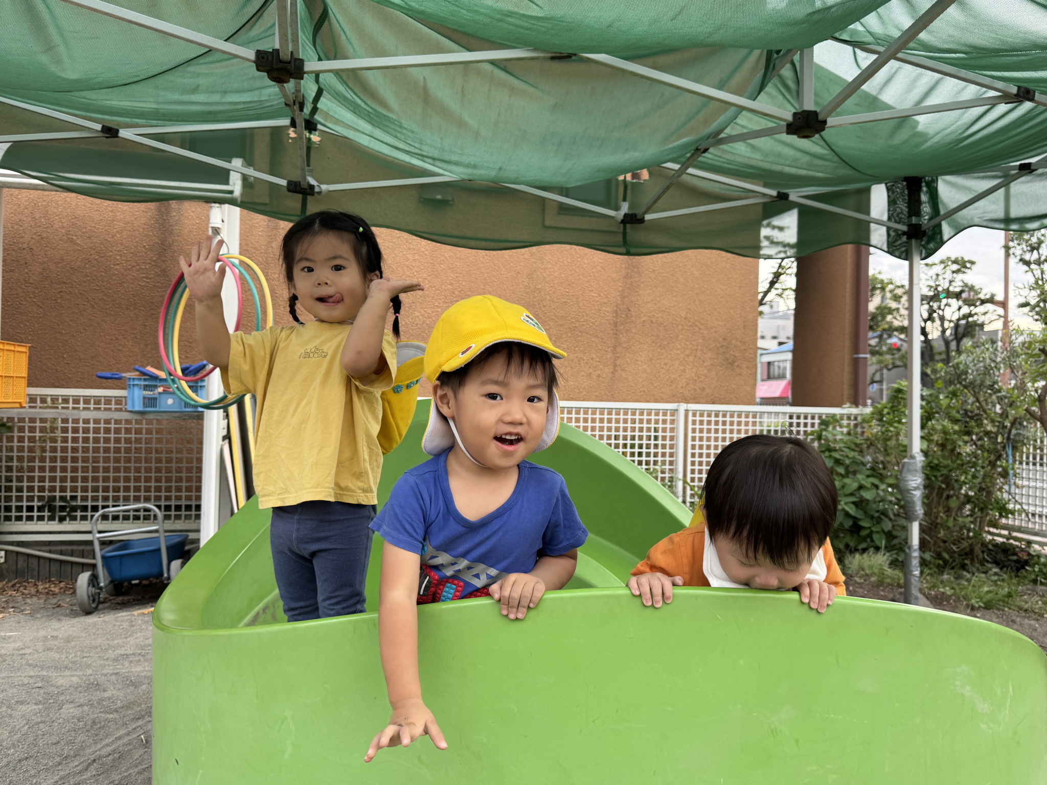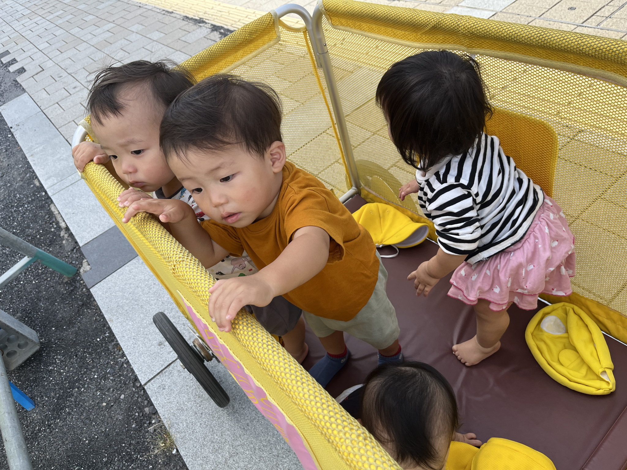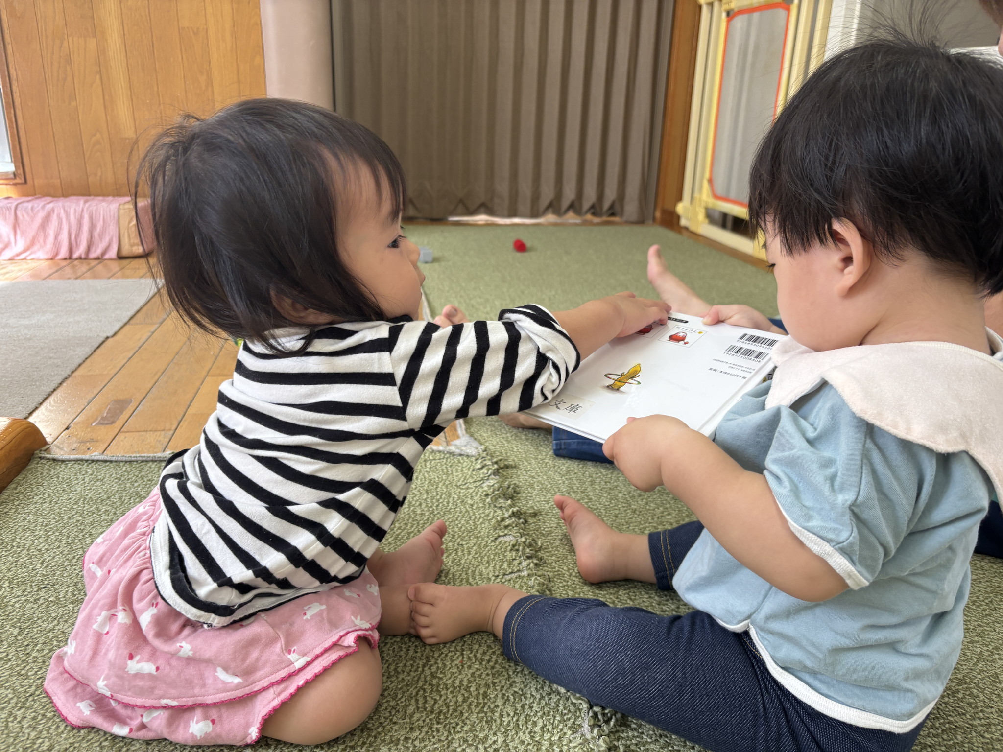 【 ひよこ 】 今日は風が吹いていて気持ち良かったね♪ 工事の様子を観察中・・・ 絵本の取り合いっこ^_^ 園庭でもたくさん遊びました!