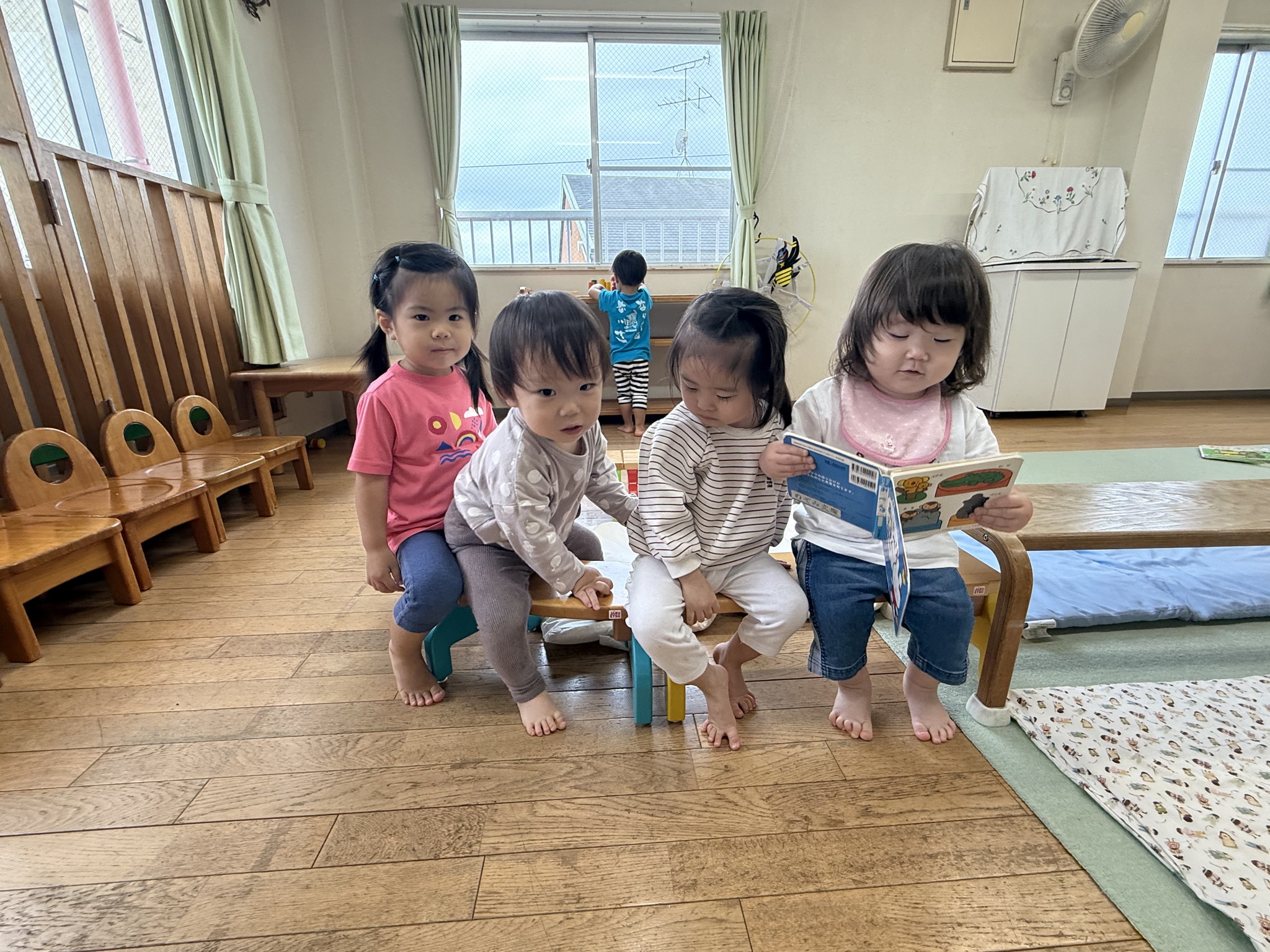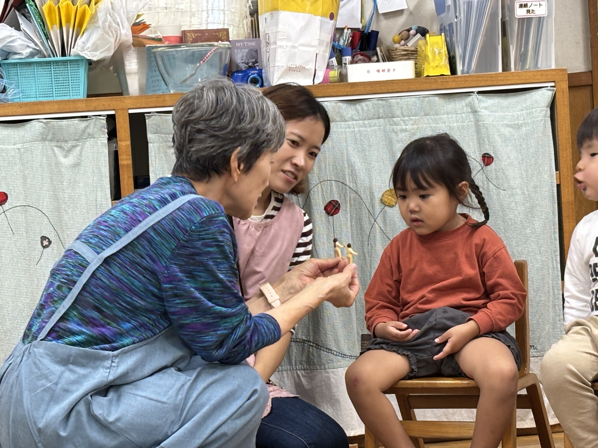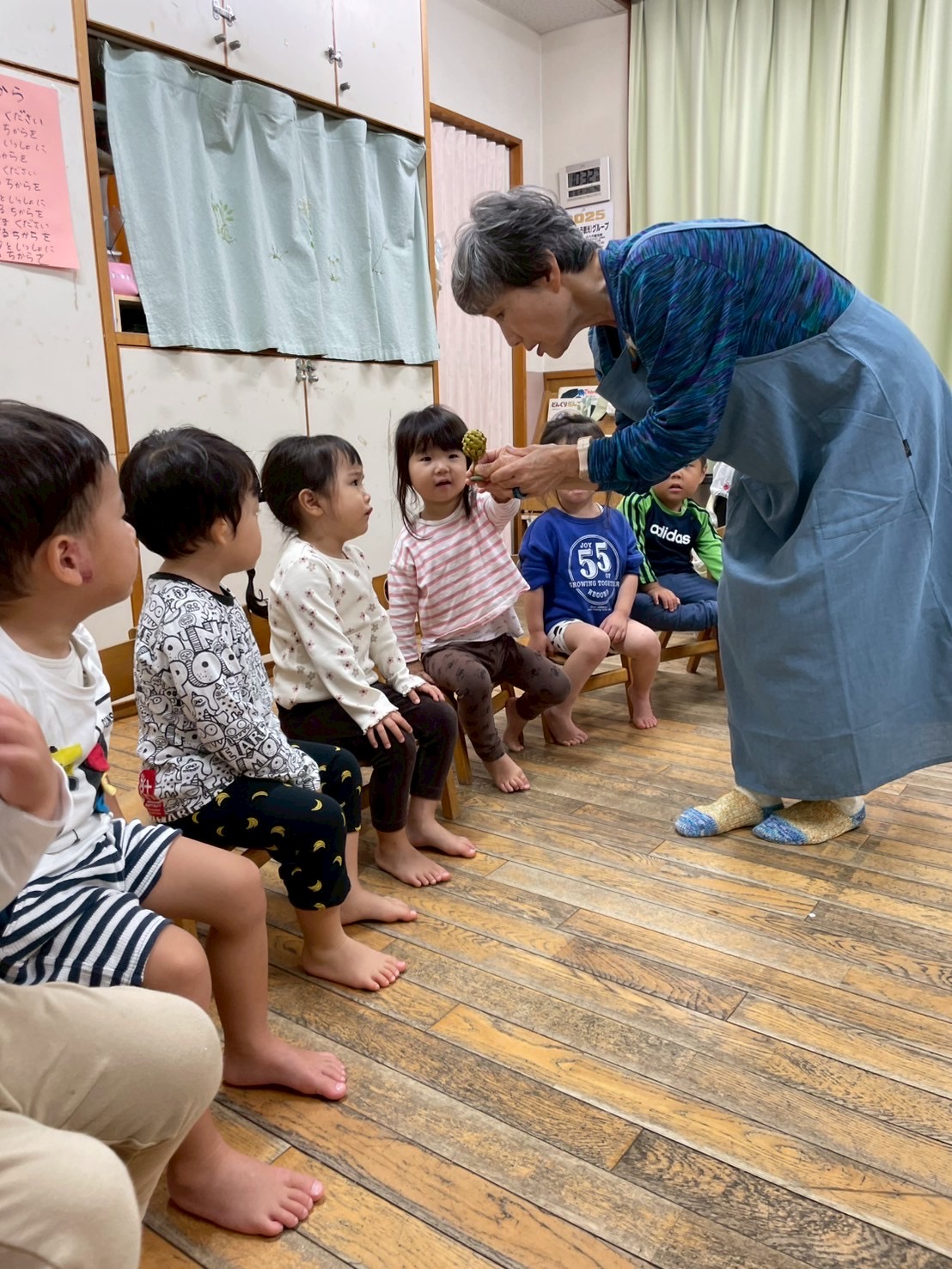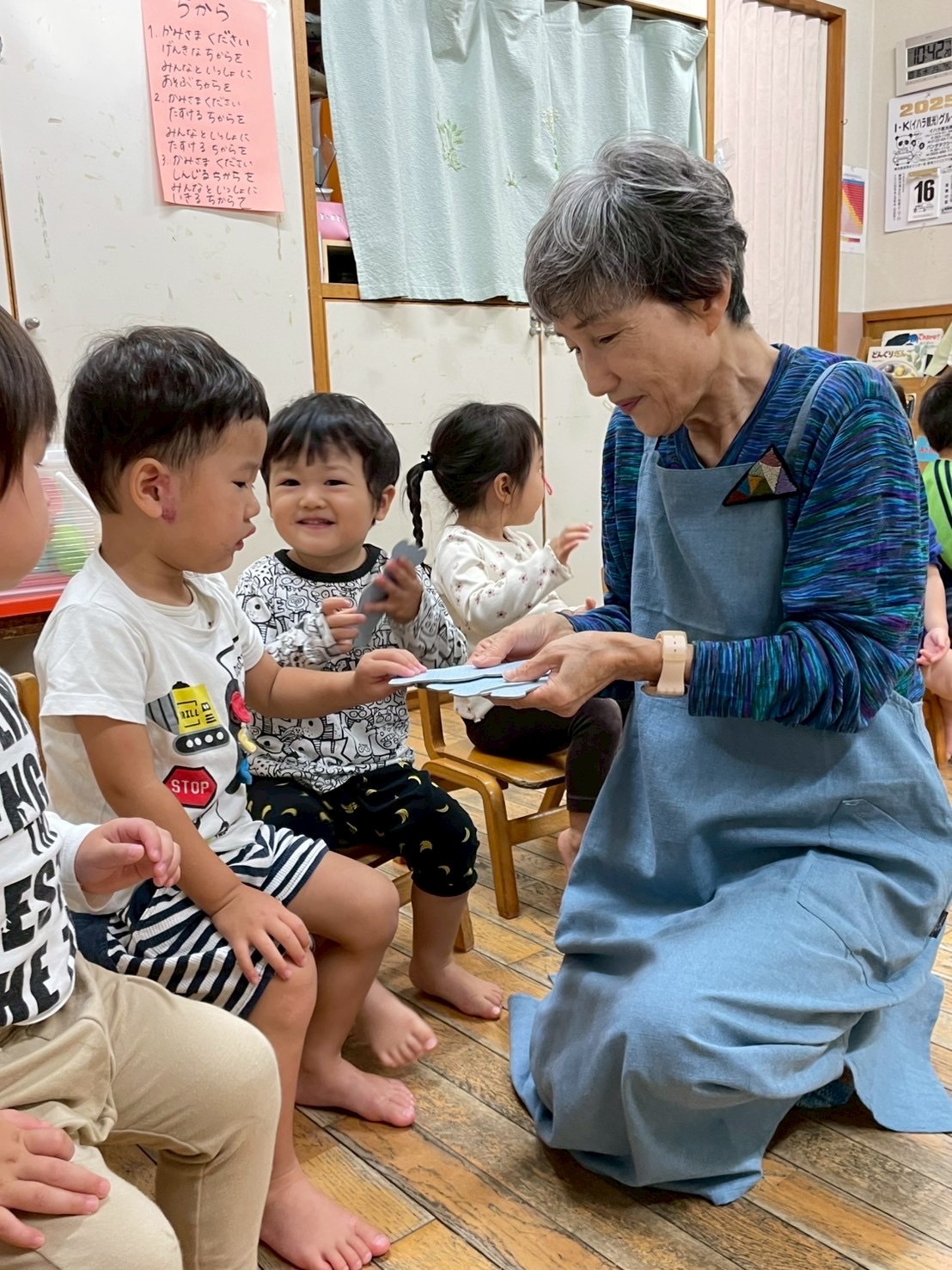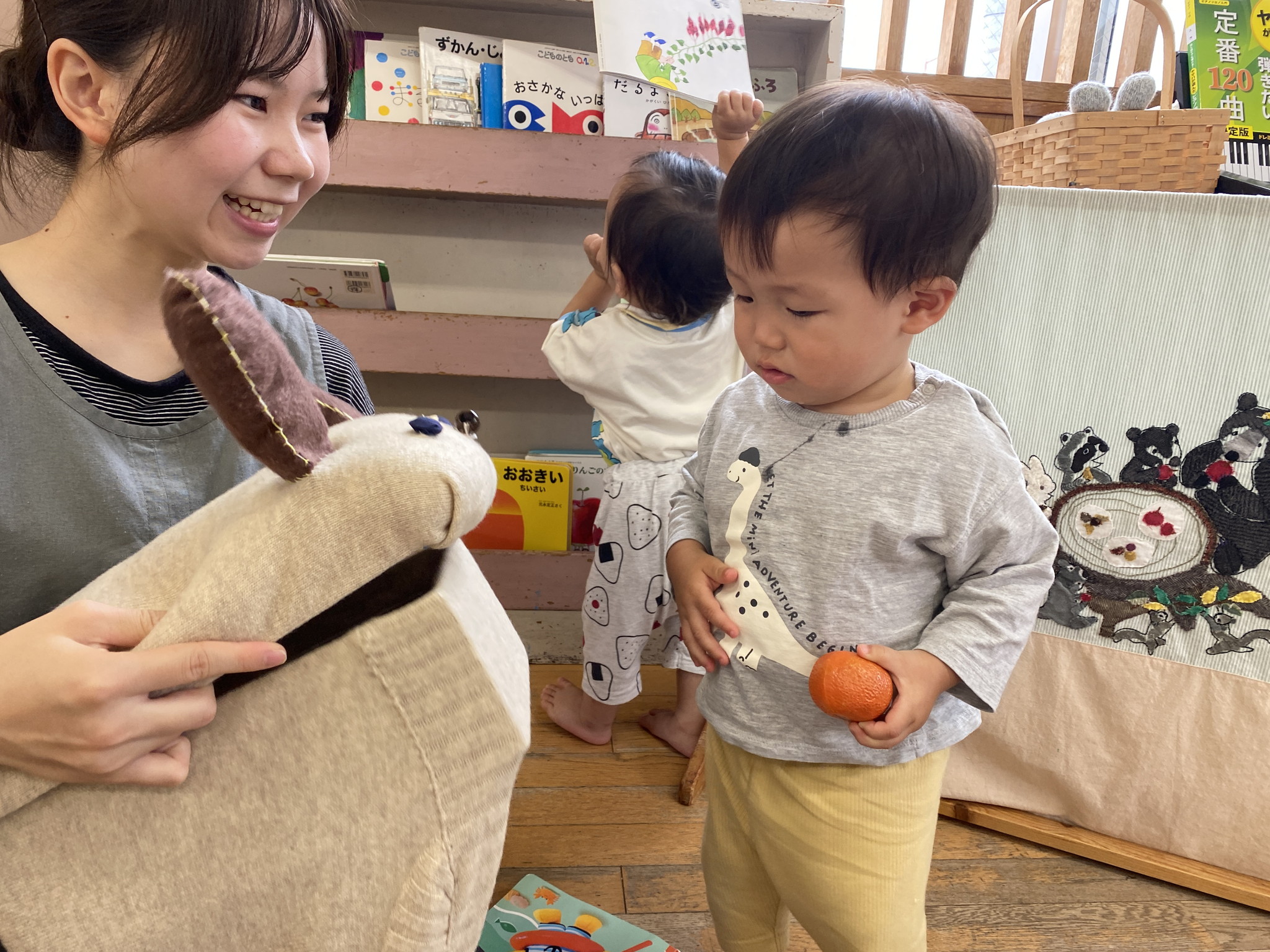 【 うさぎ 】 2回目のお礼拝! アダムとイブのお話を聞きました 最後にミニゲーム くまさんを1枚えらんで・・・ 同じくまさんのカードの子のお名前言ってみよう! 最後は同じおうちにくまさんいれるよ