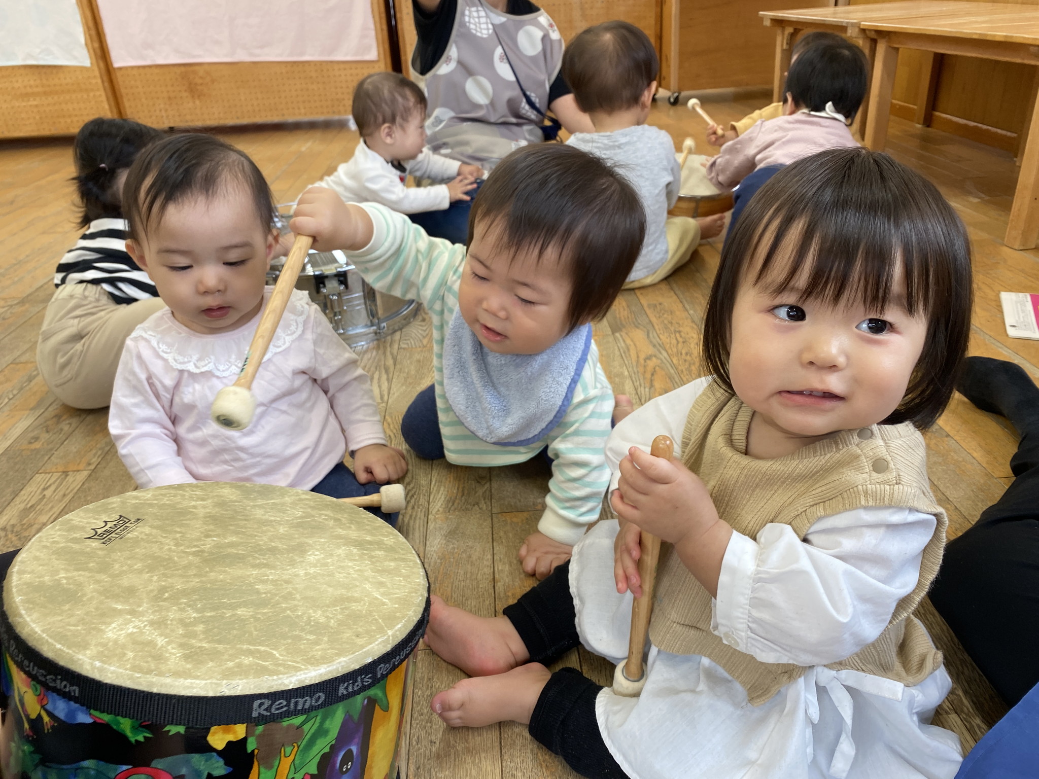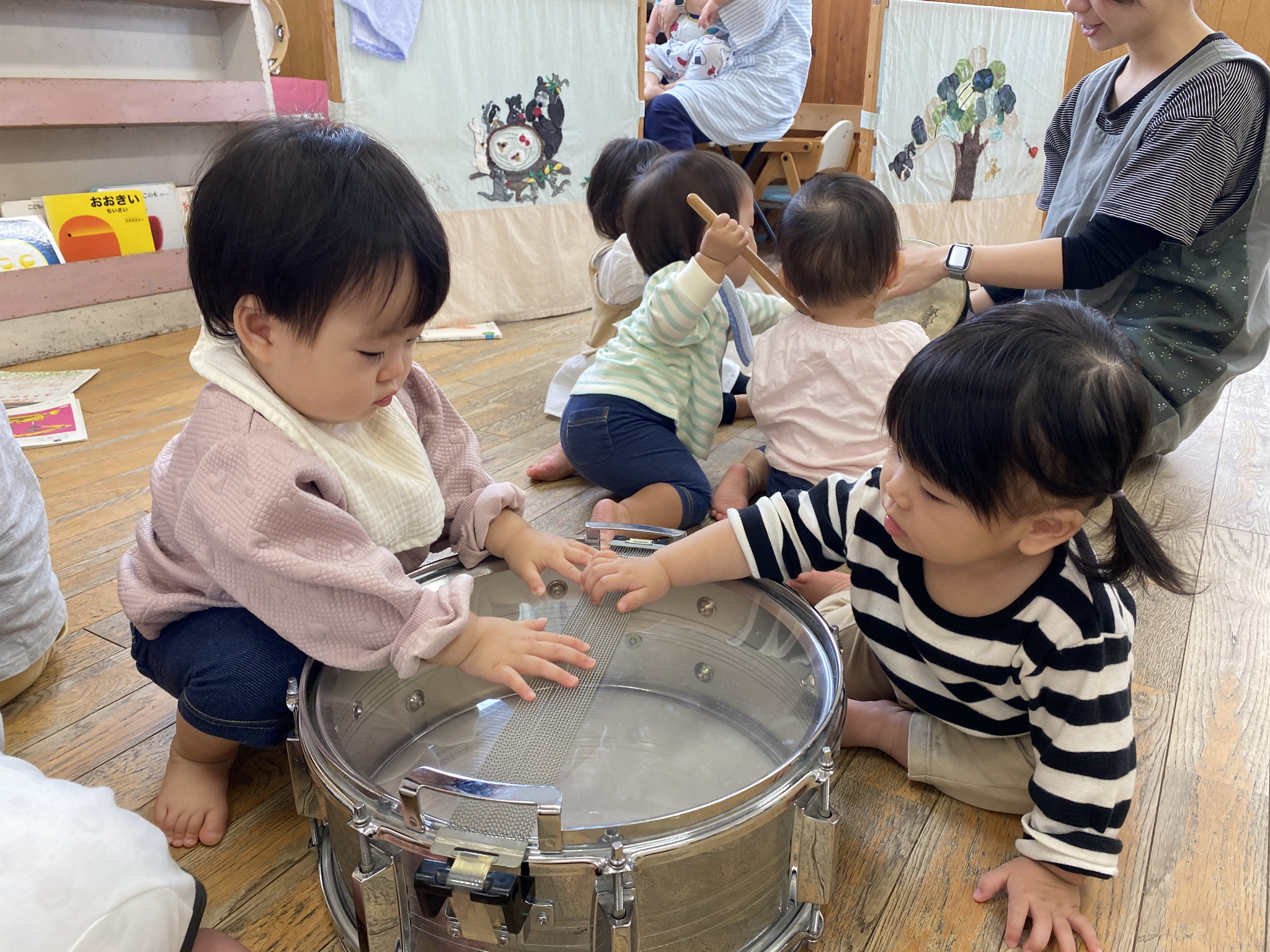【 ひよこ 】 今日は音あそびをしました♪ 色々な楽器に触れてたのしかったね^_^