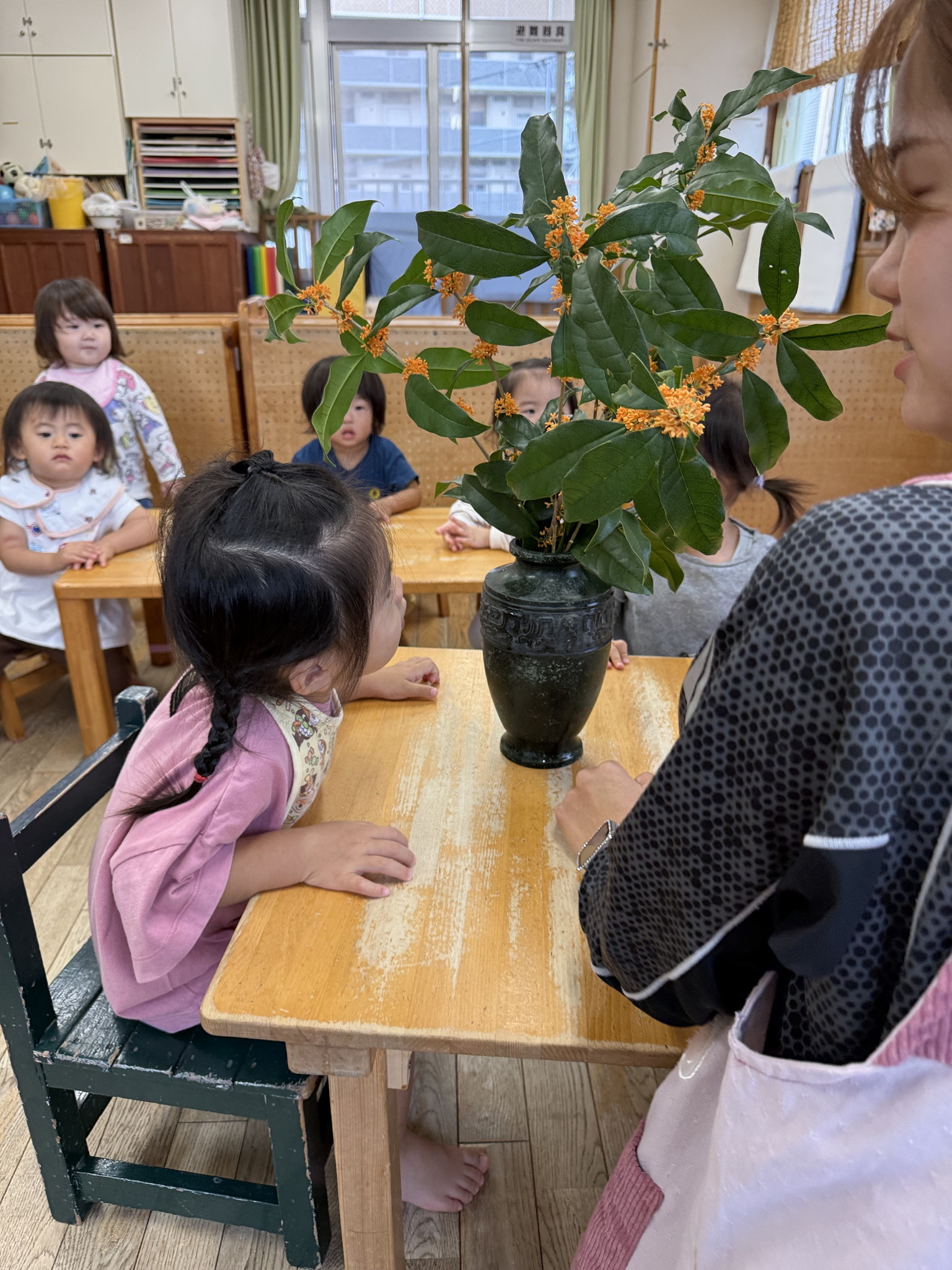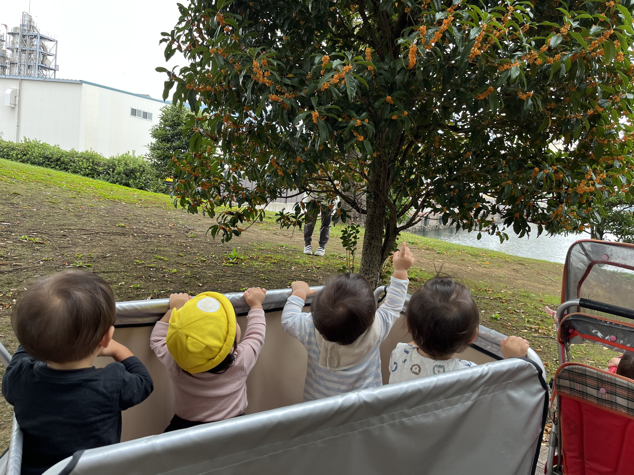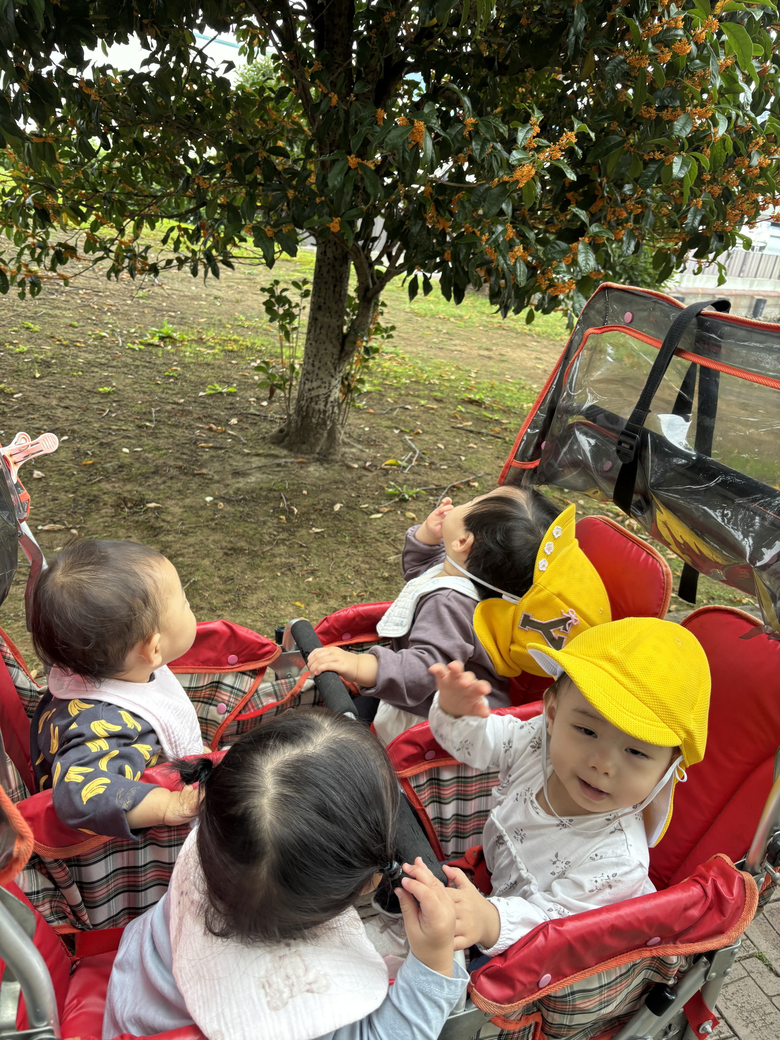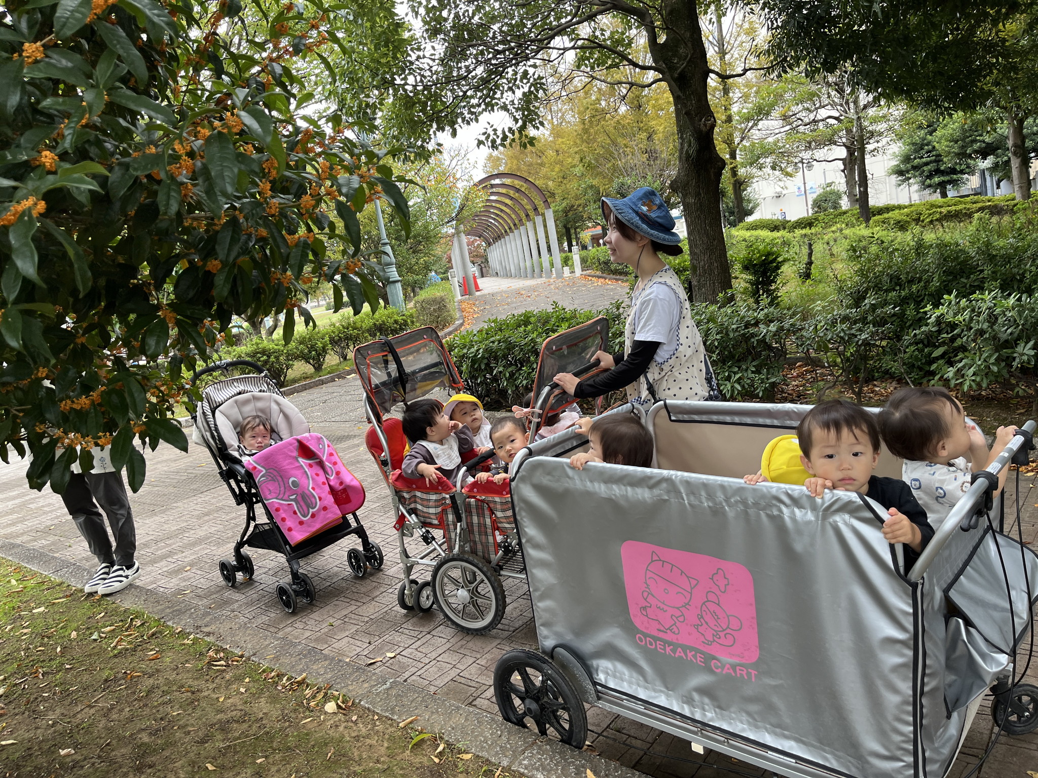 【 ひよこ 】 ドリプラまでお散歩! 金木犀が咲いていてとっても良い香りがしました♪ 園庭でもあそんだよ!