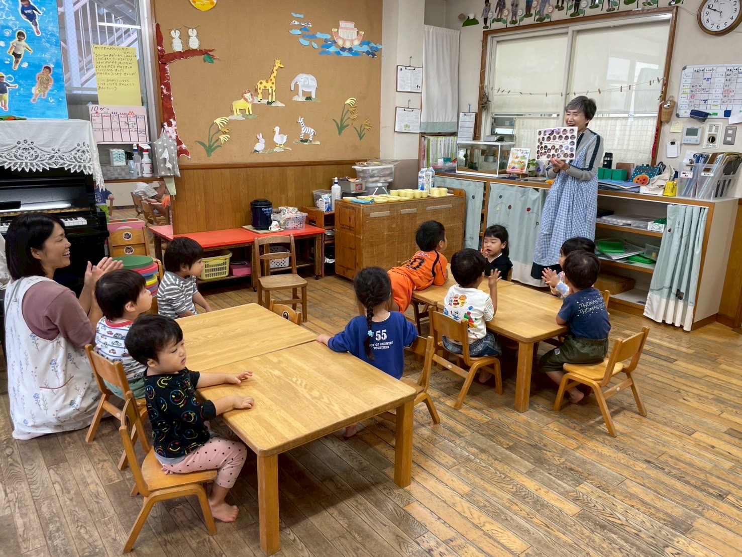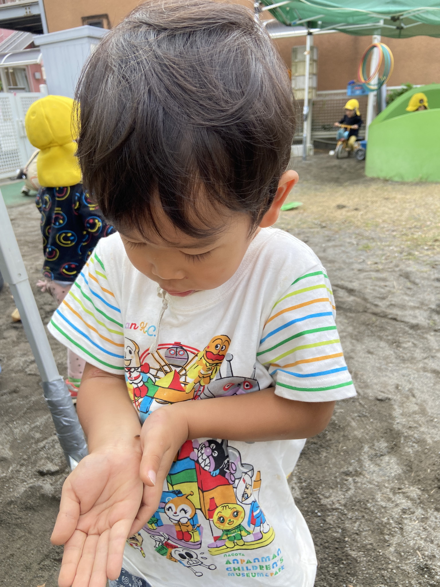 【 うさぎ 】 園長先生お誕生日おめでとう!! ちょうちょみつけたよ だんご虫の赤ちゃんだよ まあるいケーキのできあがり! お姉ちゃんたちの真似してるね