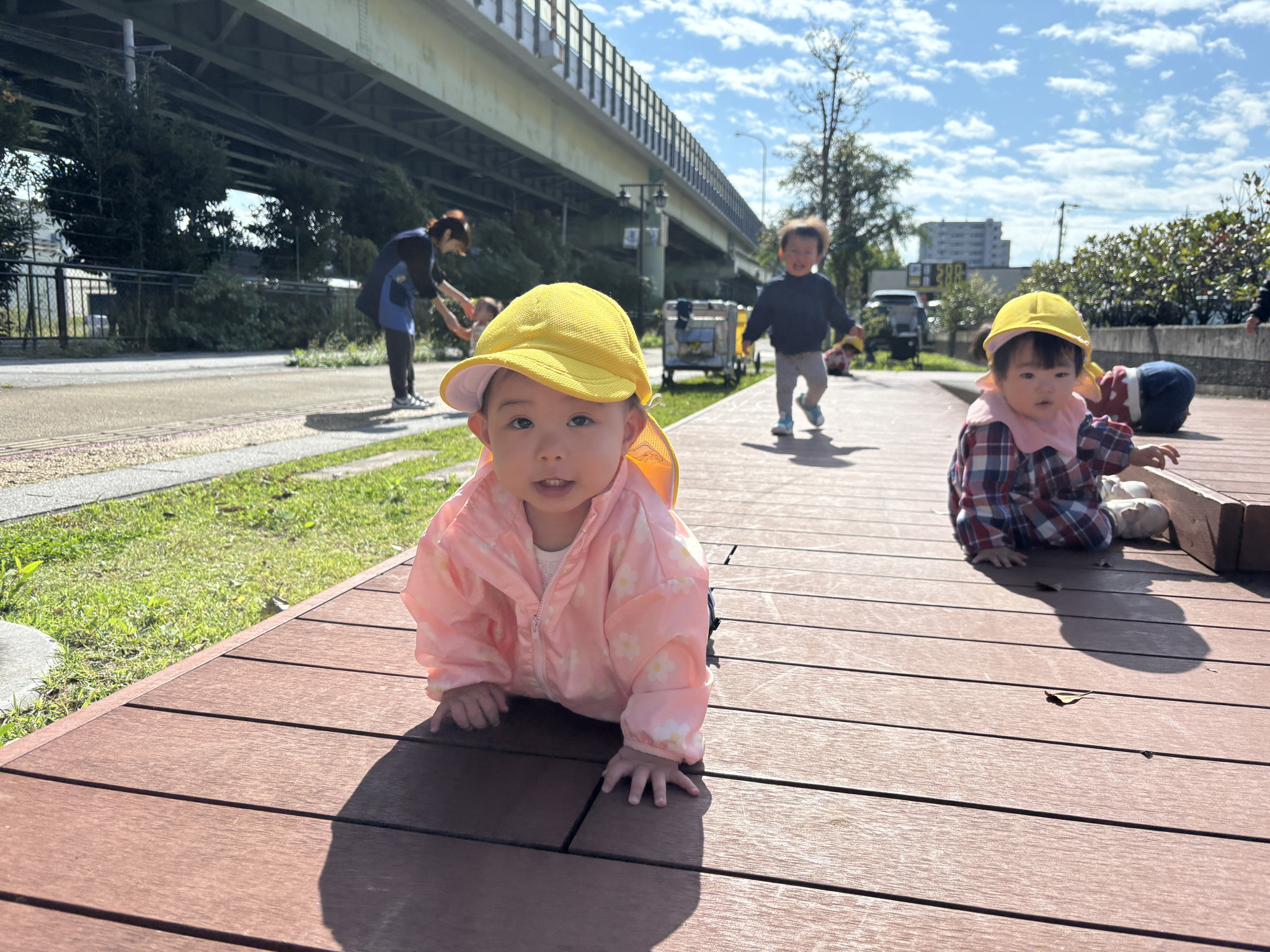 【 ひよこ 】 遊歩道へ遊びに行ってきました 初めての場所に興味津々なみんな! たくさん体を動かして楽しかったね^_^