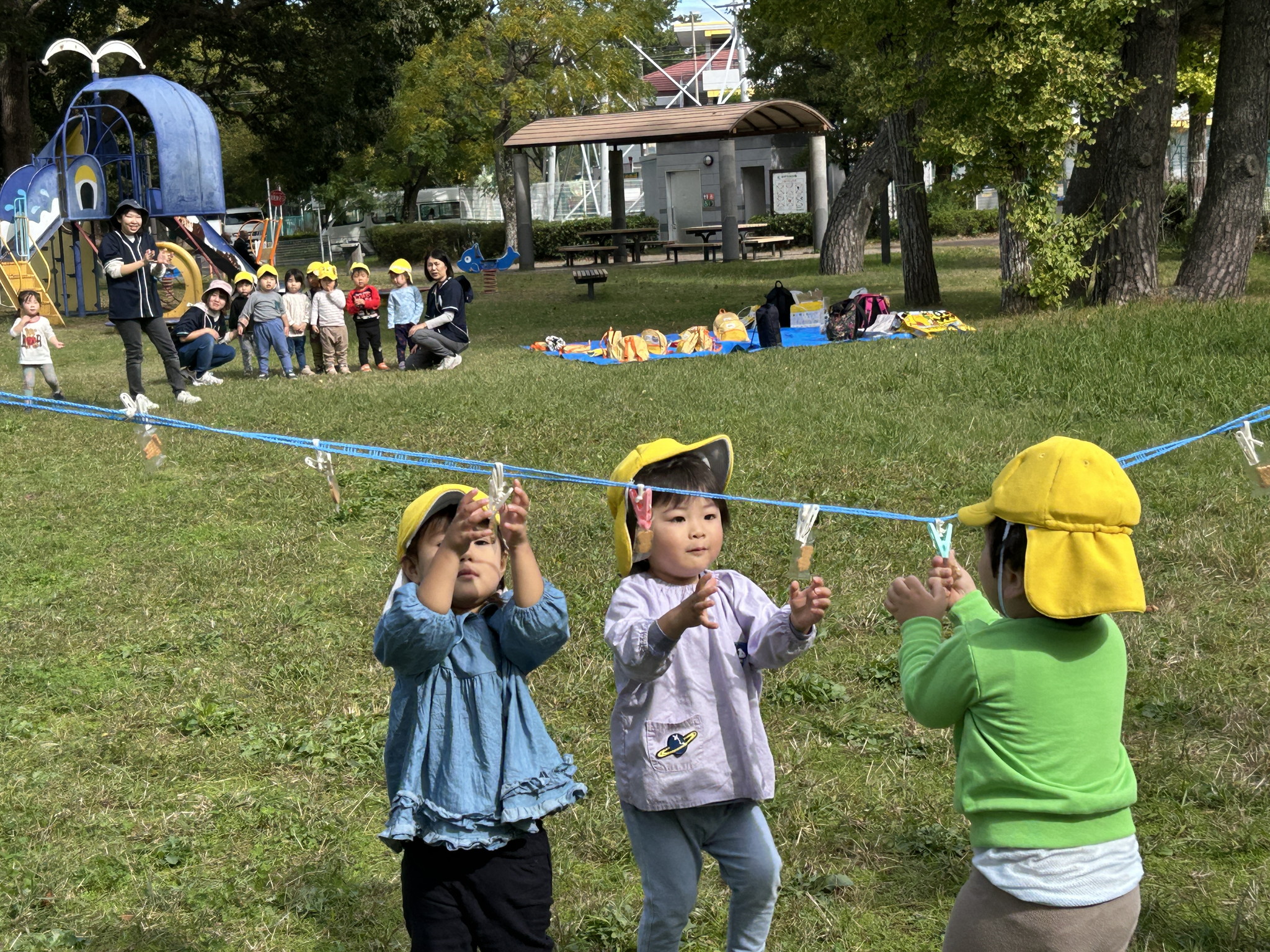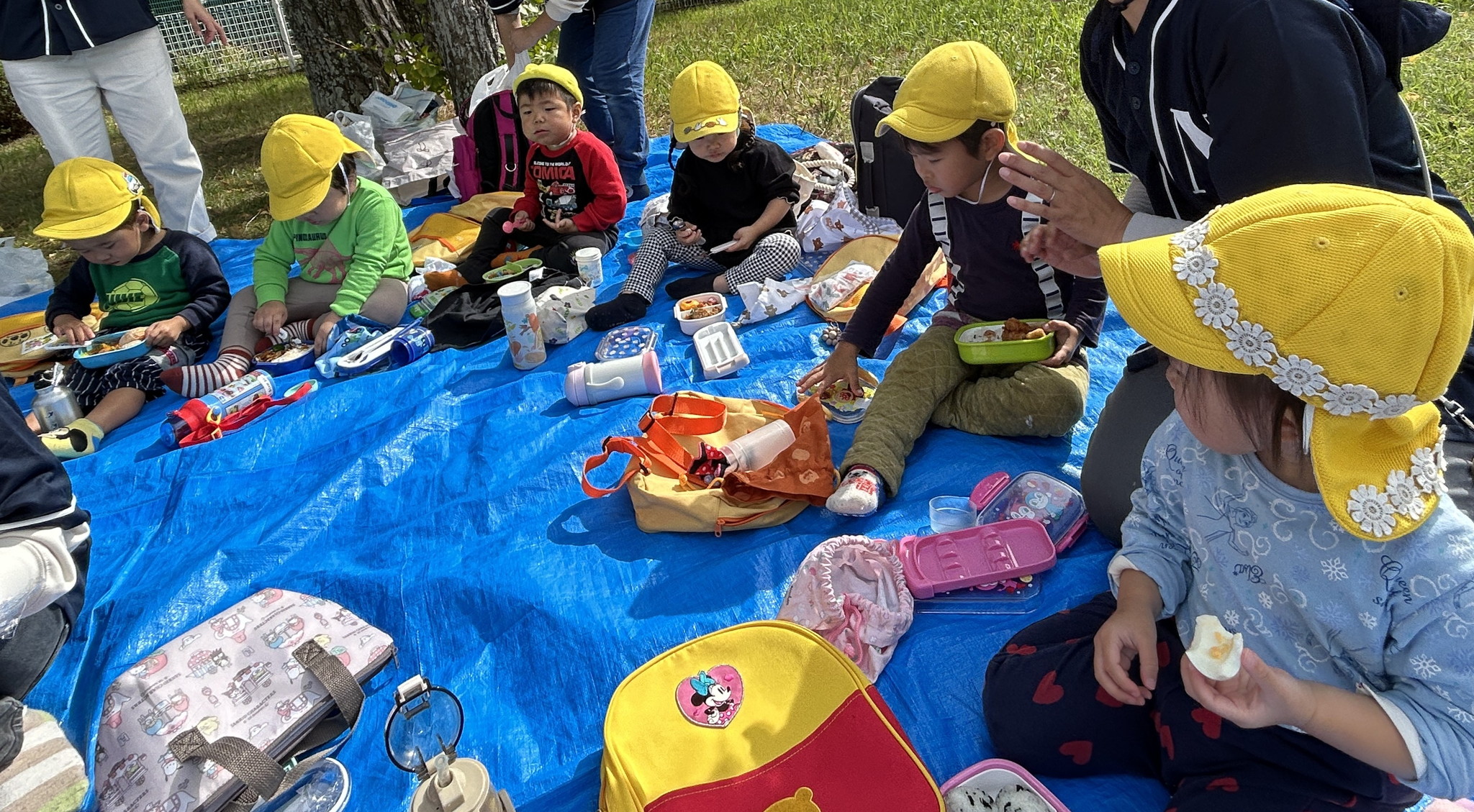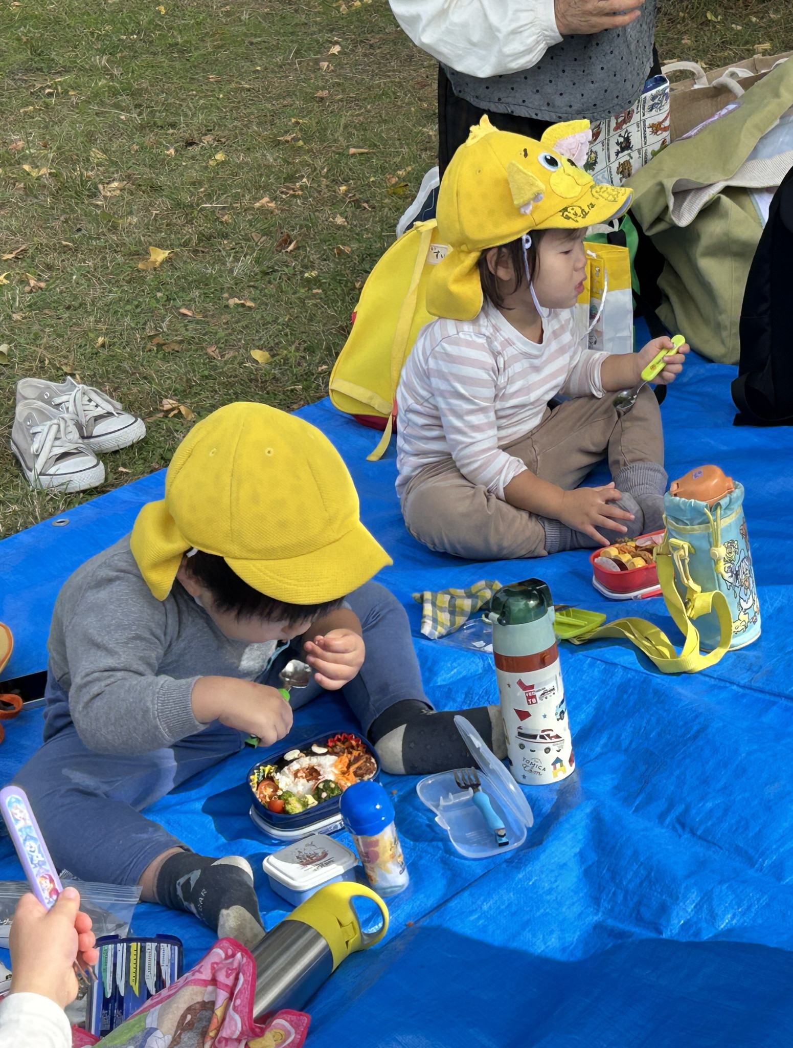 【 うさぎ 】 今日のお当番はこの2人! 松風荘と折戸中央公園へ園外保育に行ってきました ステージで歌ったり野菜や果物をお届けに行ってきました 遊具や松ぼっくり拾い、お菓子とりレースを楽しんで・・・ まちにまったお弁当!おいしかったね すてきなお弁当をありがとうございます