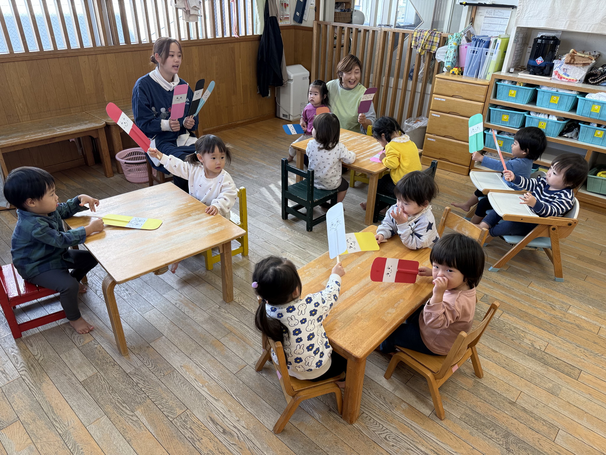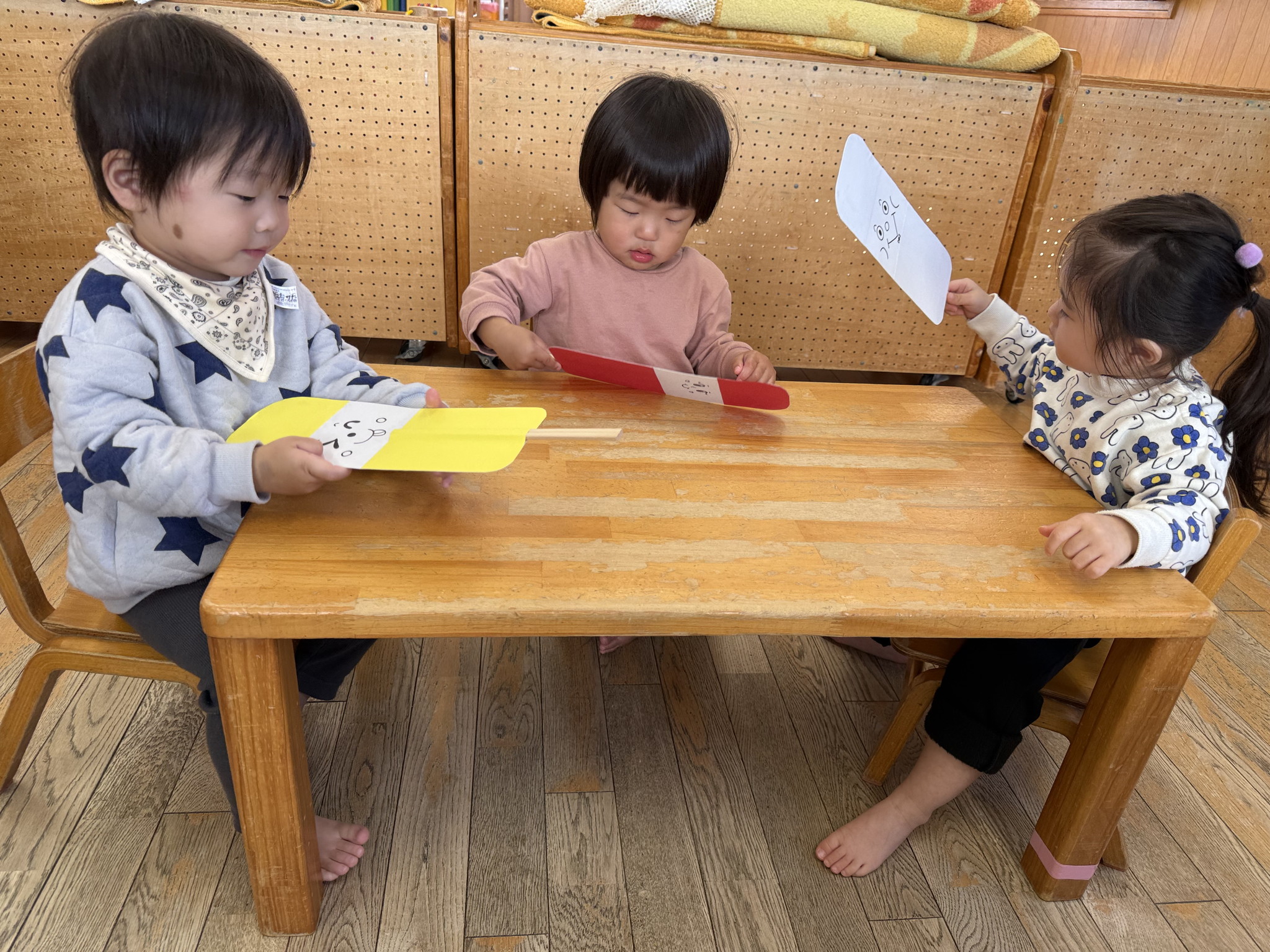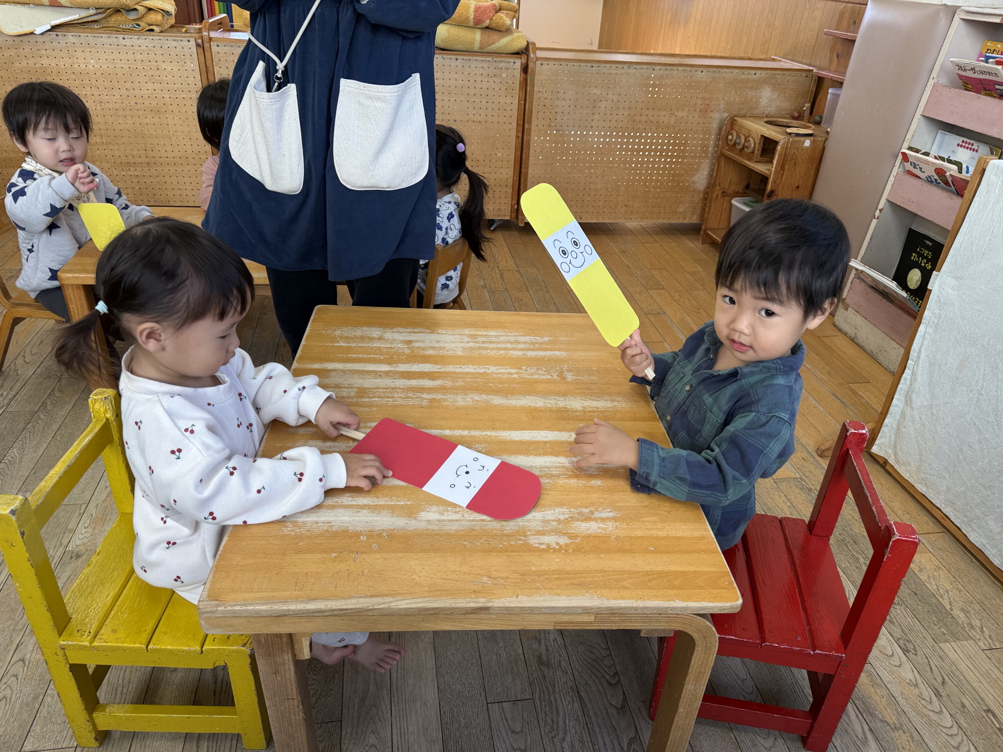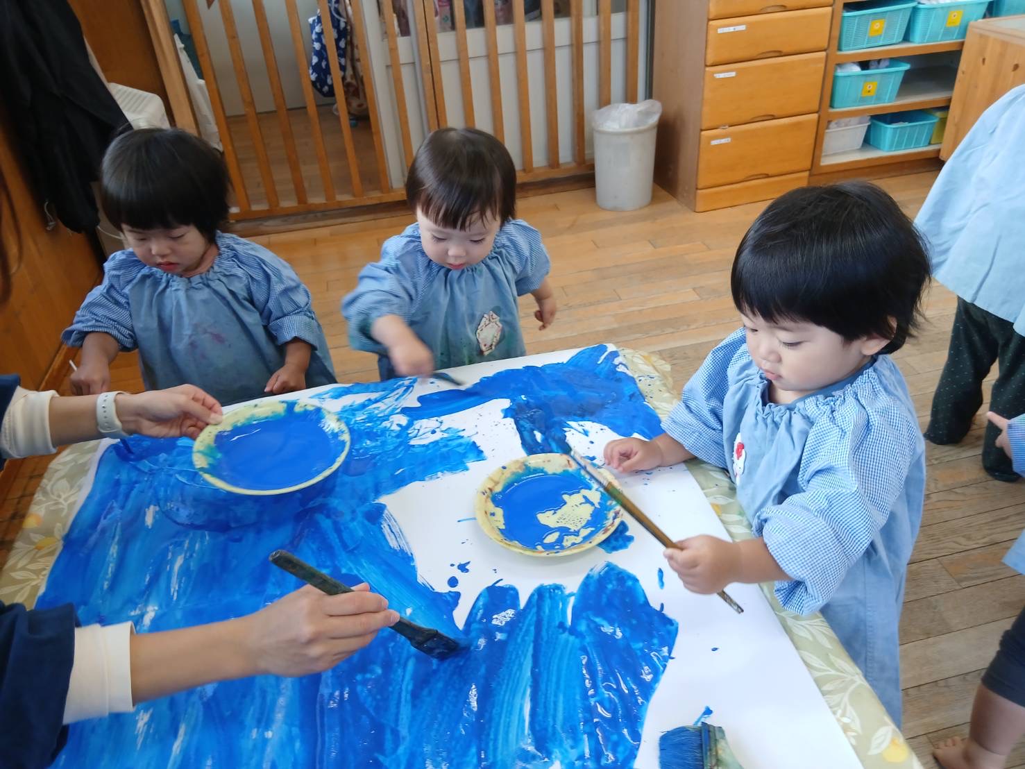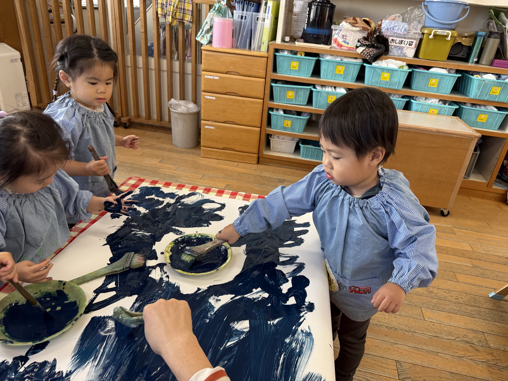 【 あひる 】 みんなでえのぐぬりぬり~何になるかなー どんな色が好き~?♪ 手をつないでお庭まで歩いたよ^_^