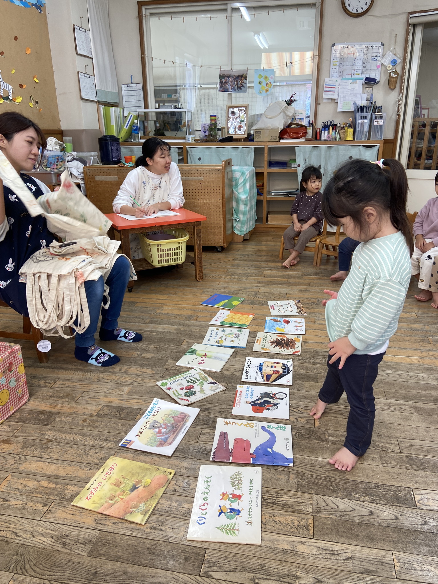 【 うさぎ 】 今日はのぞみ文庫の日♪ どれにしようかな~ テントウムシをみつけたよ