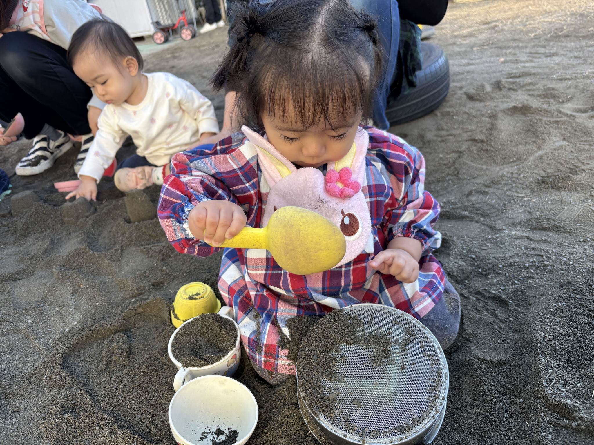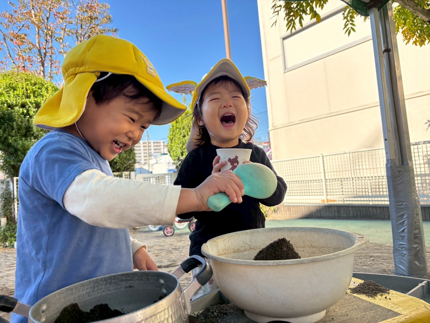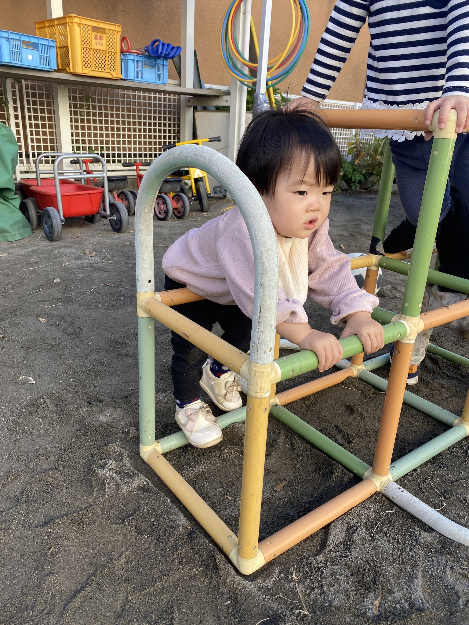【 あひる 】 先生と手をつないでお散歩したよ ケーキ作りに夢中です! あれ!?行き止まり~ 先生みて~! すっごくいい音がしたよ