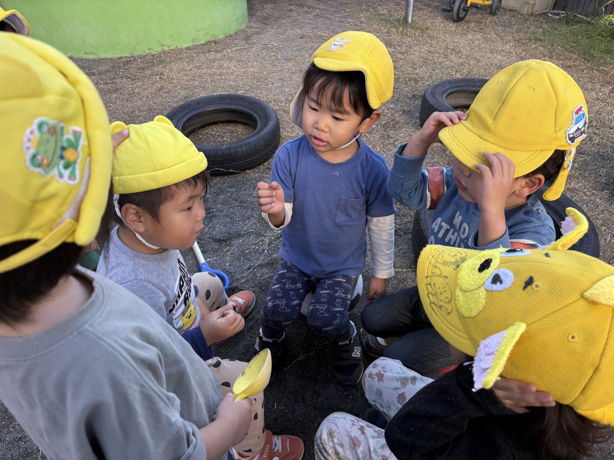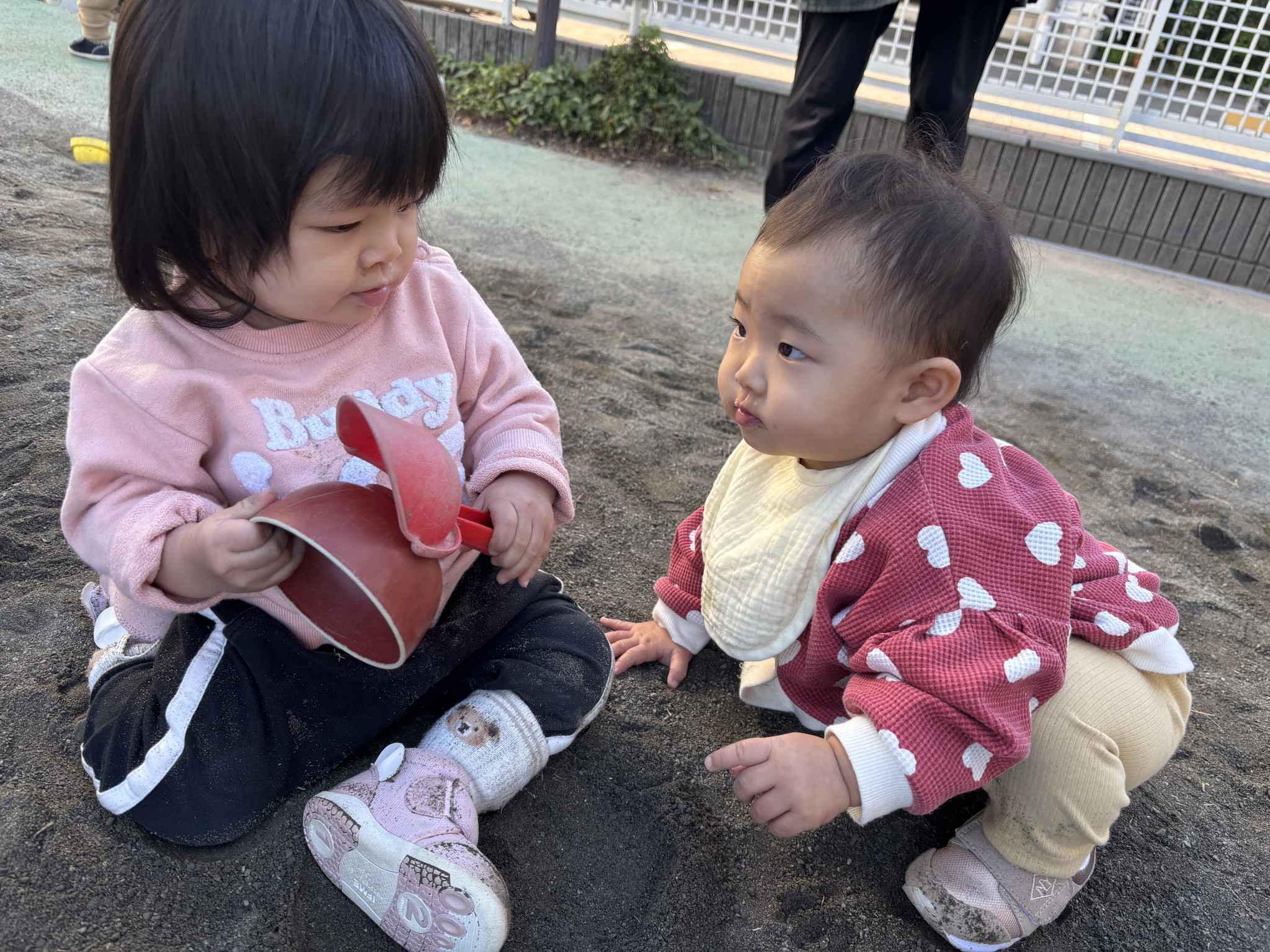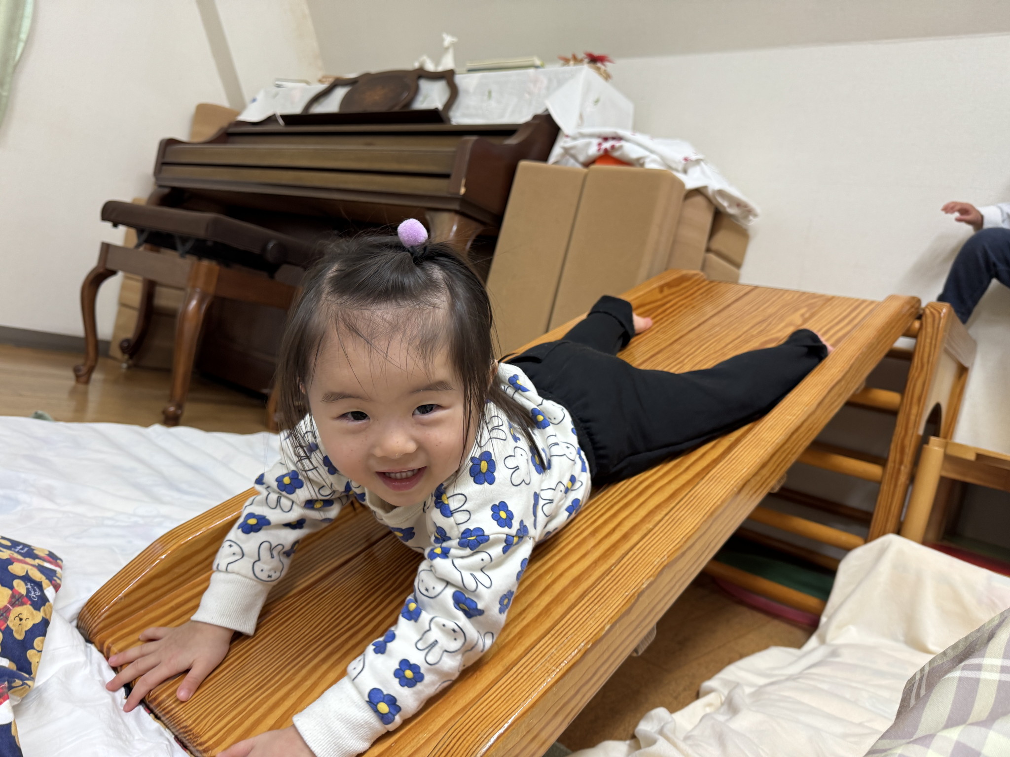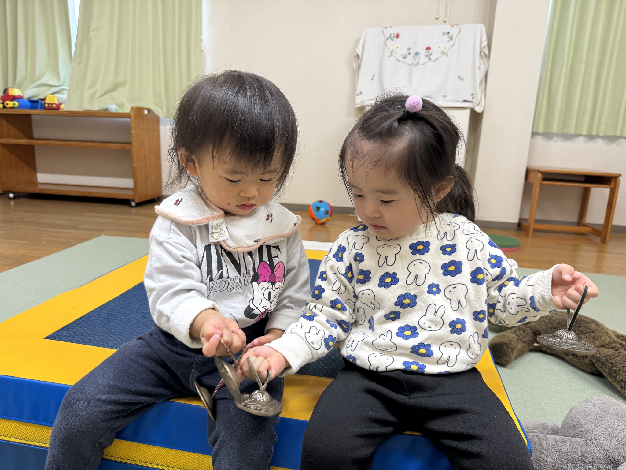 【 あひる 】 先生と手をつないでお散歩したよ ケーキ作りに夢中です! あれ!?行き止まり~ 先生みて~! すっごくいい音がしたよ