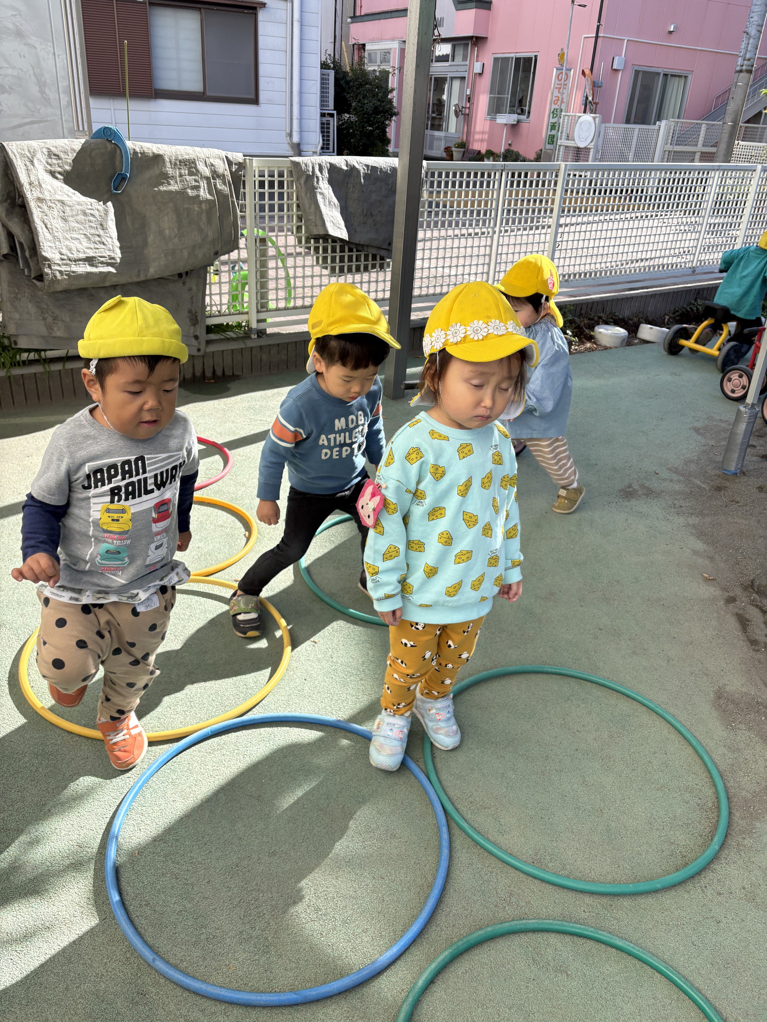 【 うさぎ 】 フラフープの輪の中をジャンプ! 皆でじゃんけん! ハグ! クッキング中♪