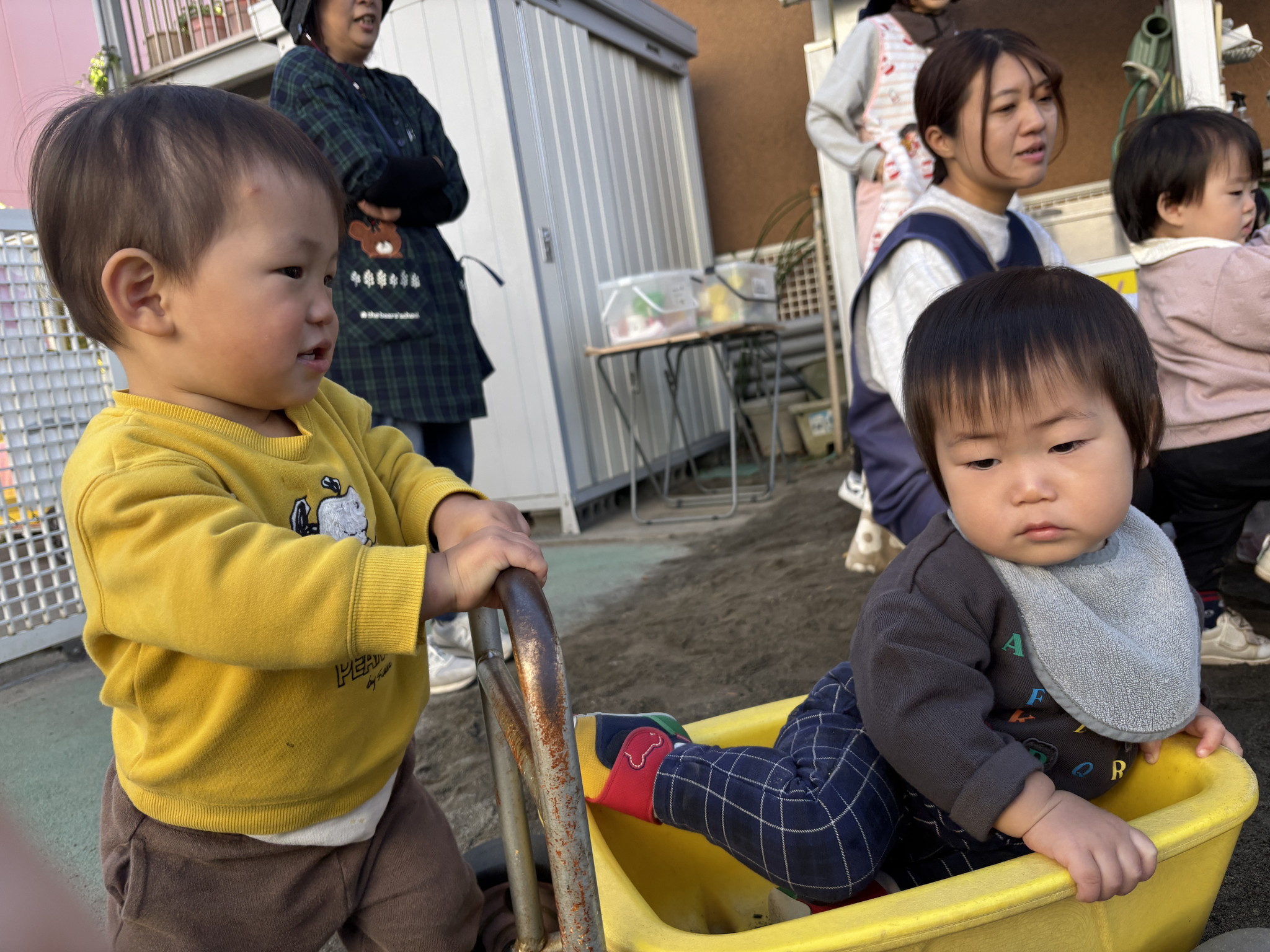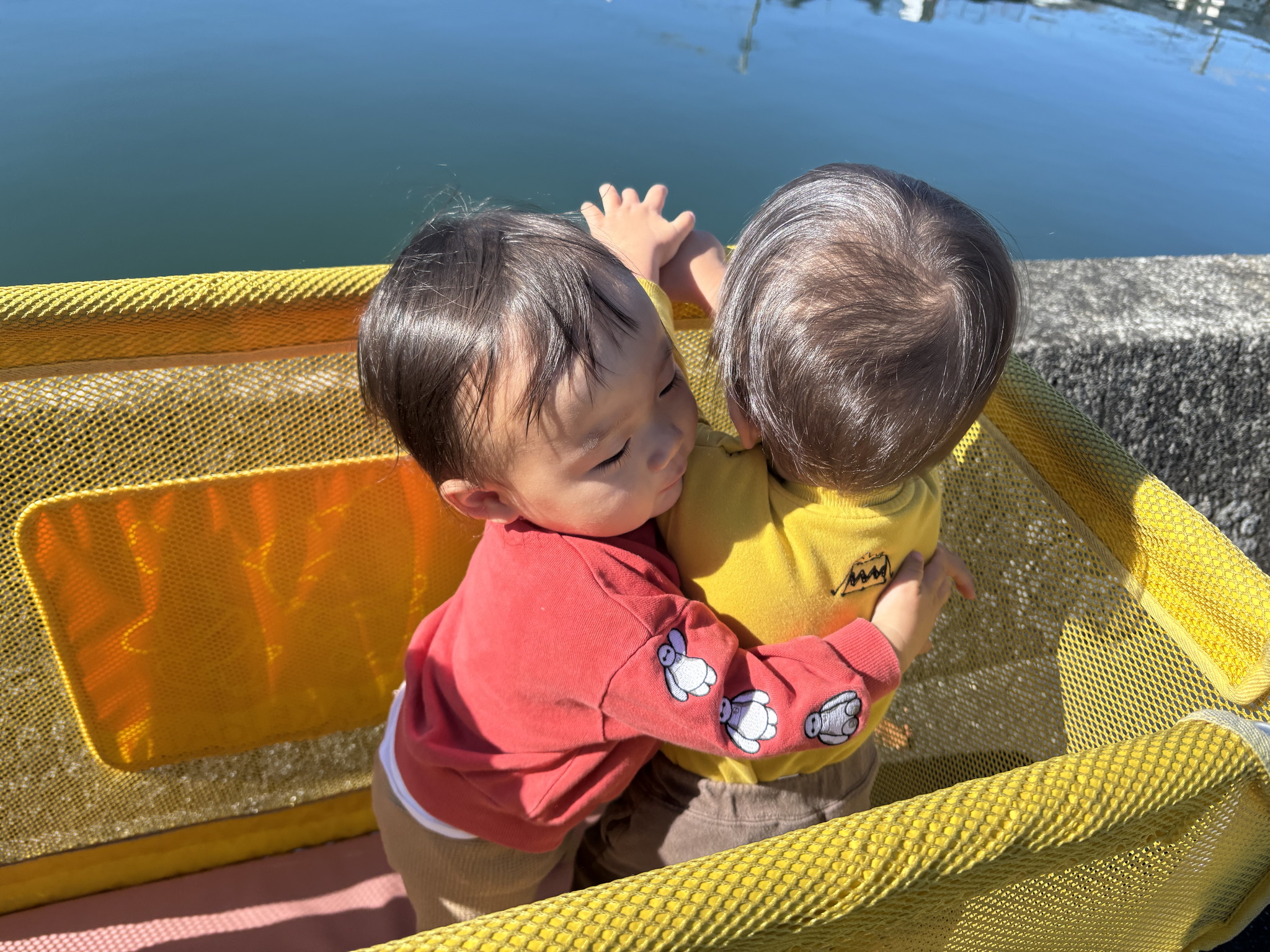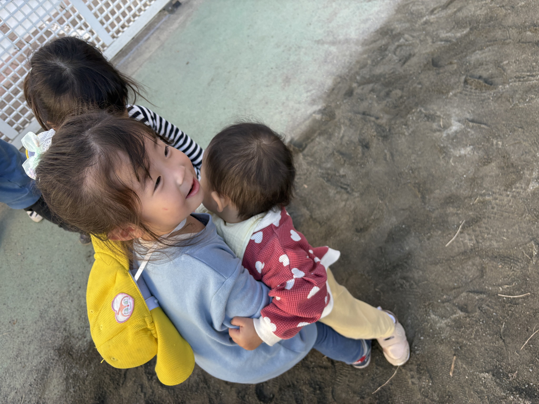【 ひよこ 】 先生のお顔が気になるボク^_^ 大スキよーハグ♡ お散歩気持ち良いね♪気づいたらスヤスヤ・・・ お砂あそびたのしいね お友だち乗せてしゅっぱーつ! お外大スキ!