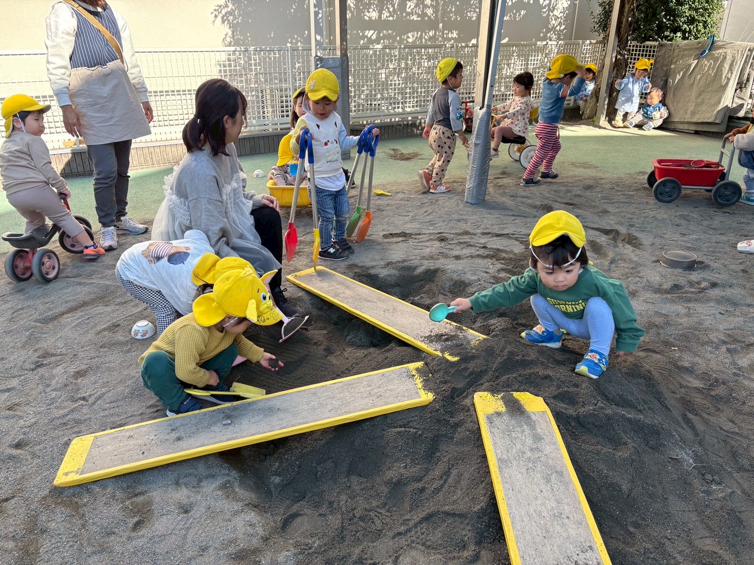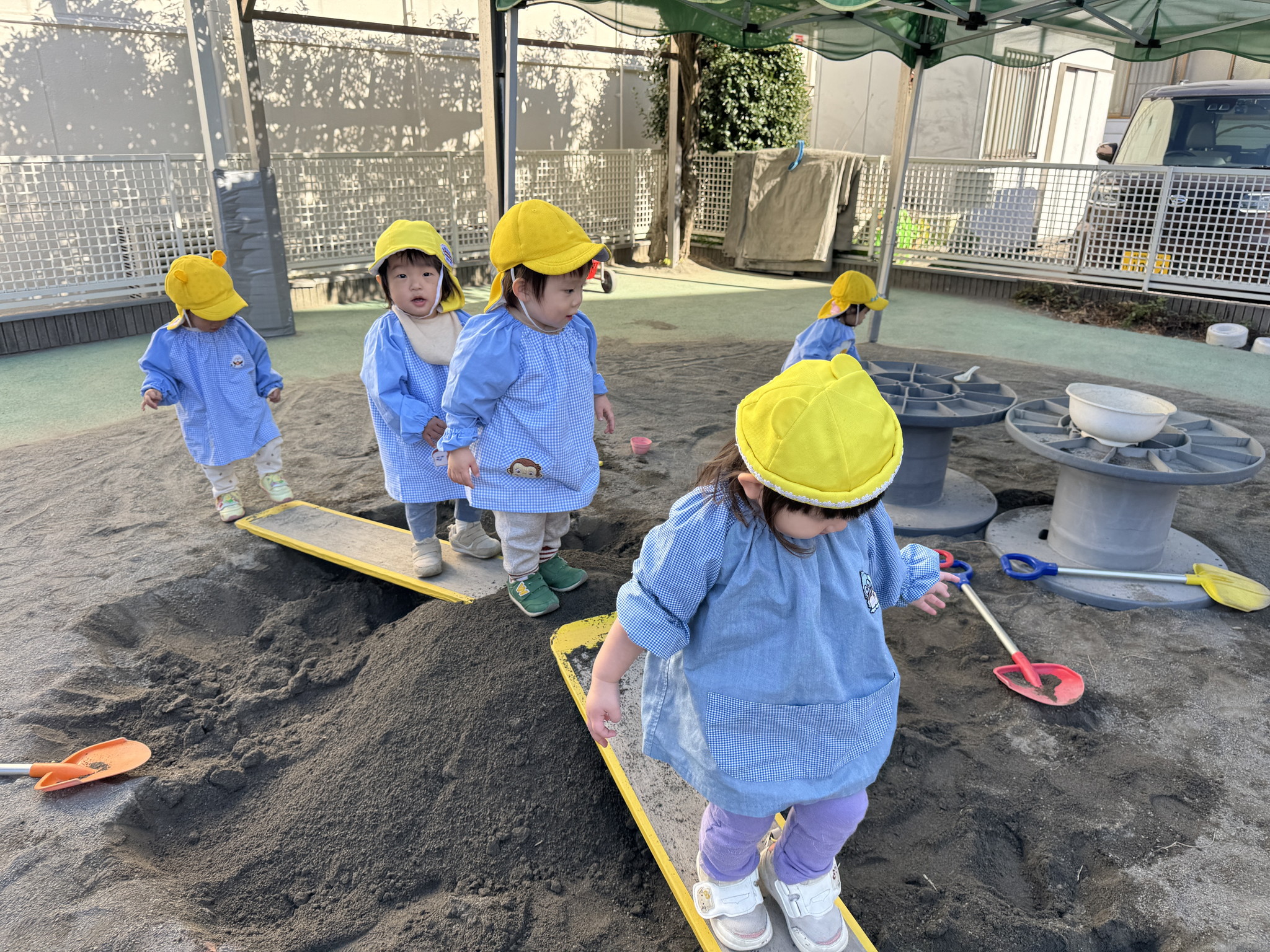【 あひる 】 みんなで大きいお山作り! 完成したお山に一本橋が! 富士山には雪が降ってるからね~ 小さいかたまり発見! 僕はとってもちからもち お~い!先生!