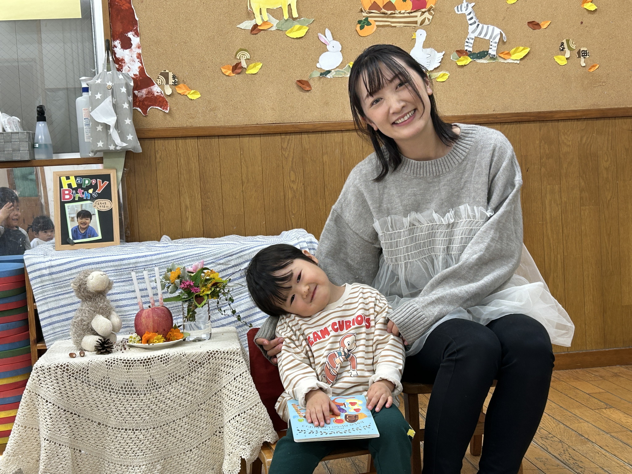 【 うさぎ 】 今日はぼくの3歳のおたんじょうび会! おめでとうと言われてニコニコのぼく! ママといっしょでうれしい日だったね