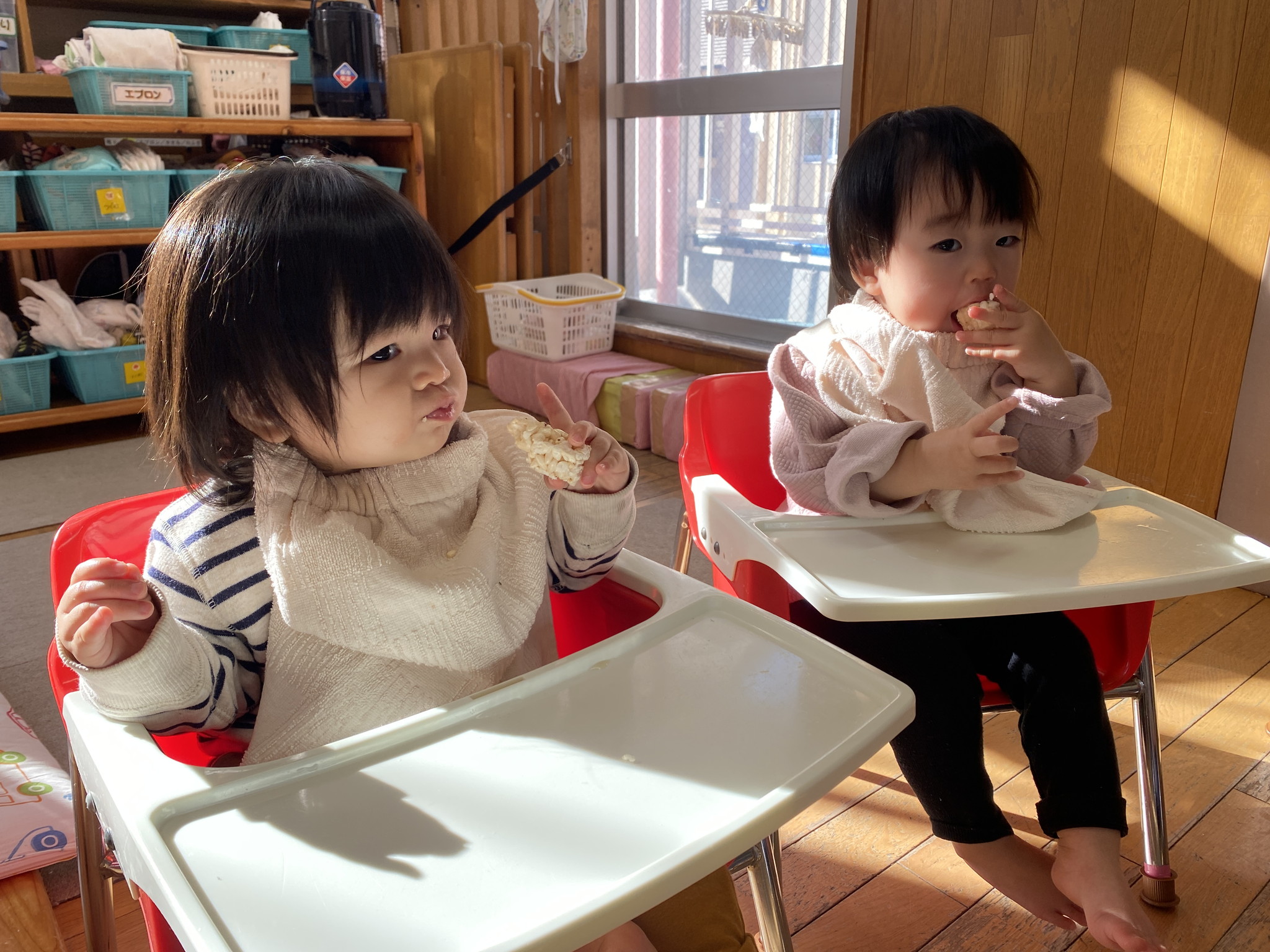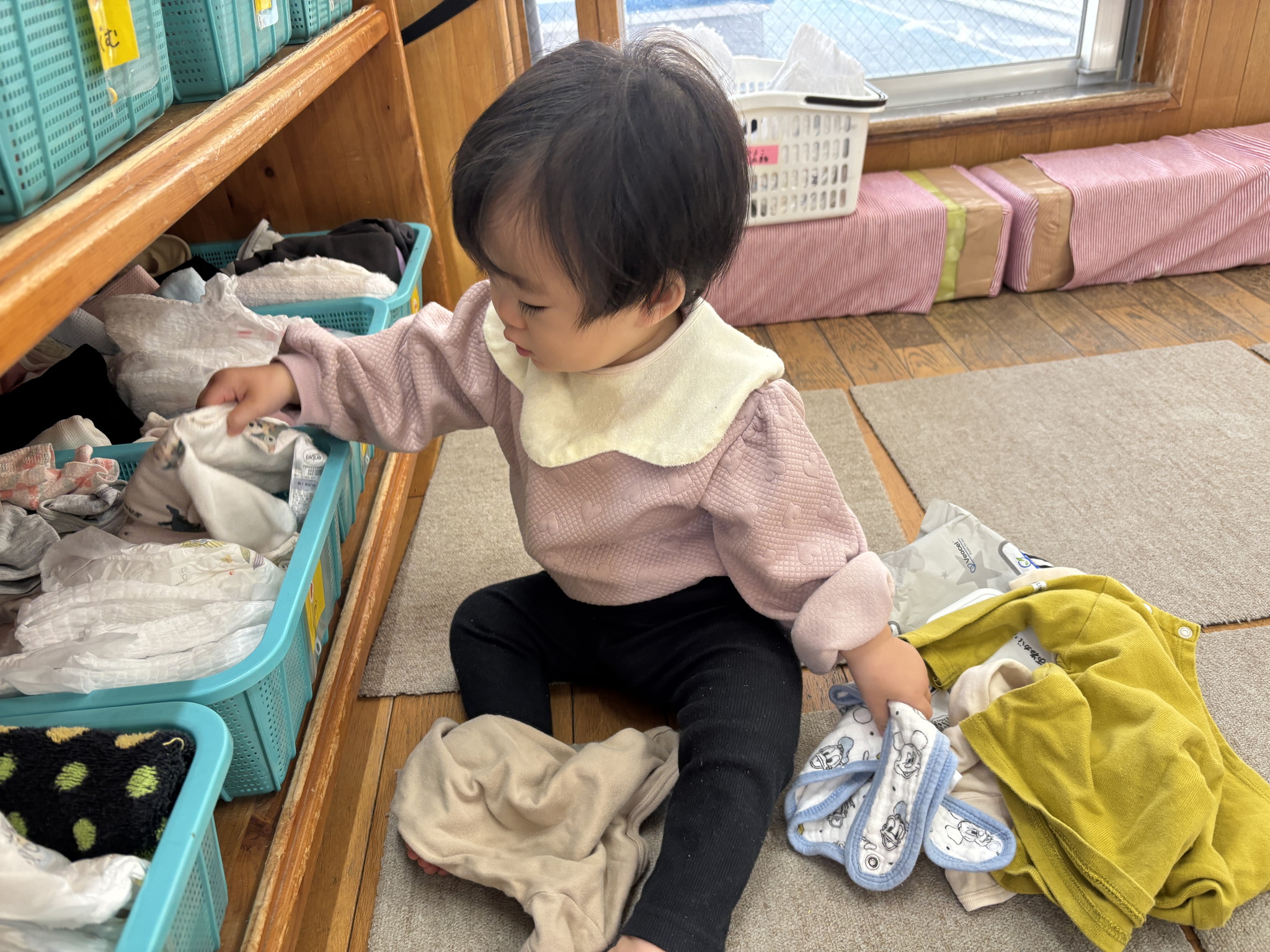 【 ひよこ 】 指先を使ってシールはがしに挑戦! お友だちのカゴからこっそり・・・ お膝でまったり絵本タイム^_^ バランスバランス・・・♪ ひなたぼっこ中