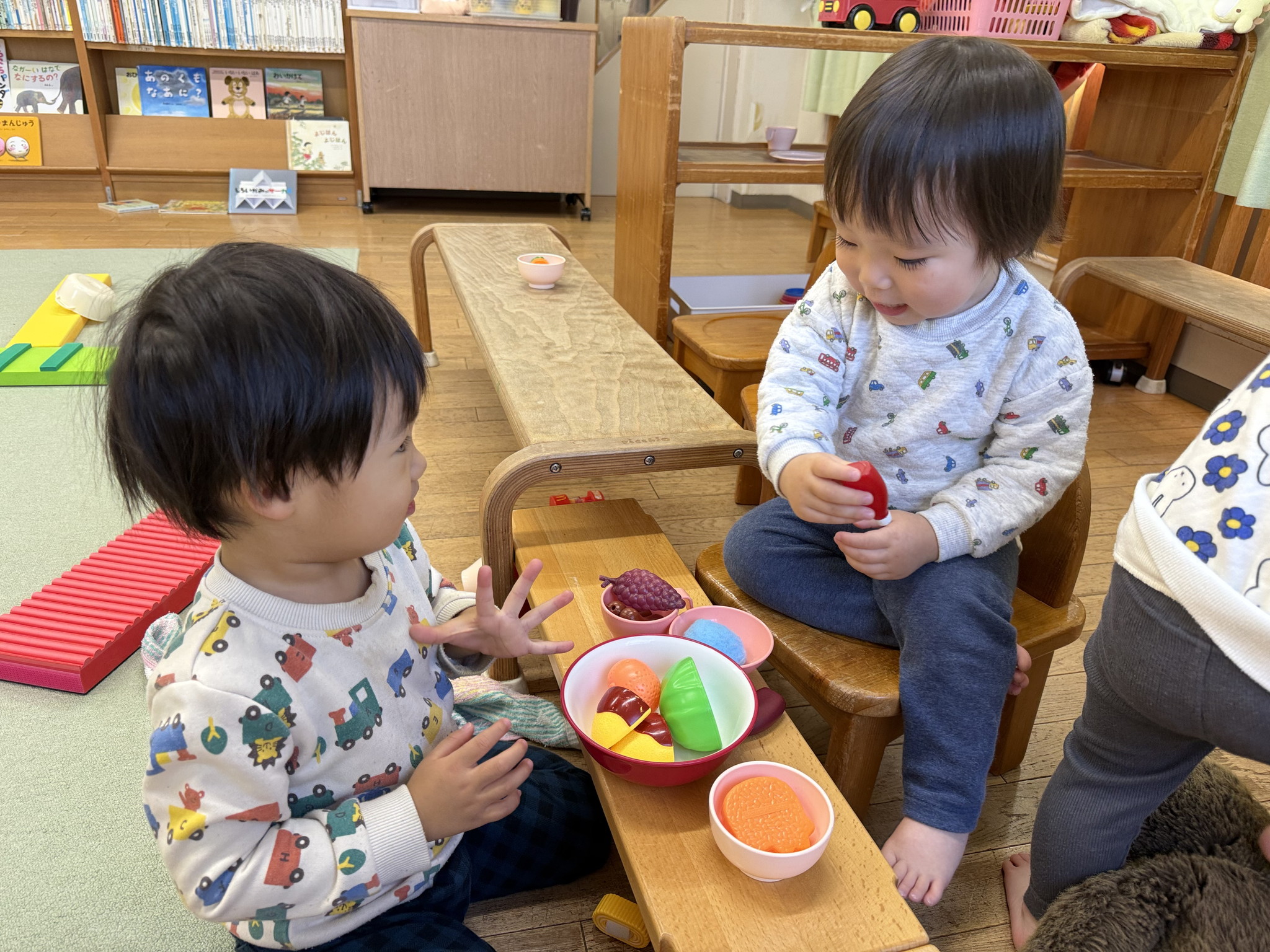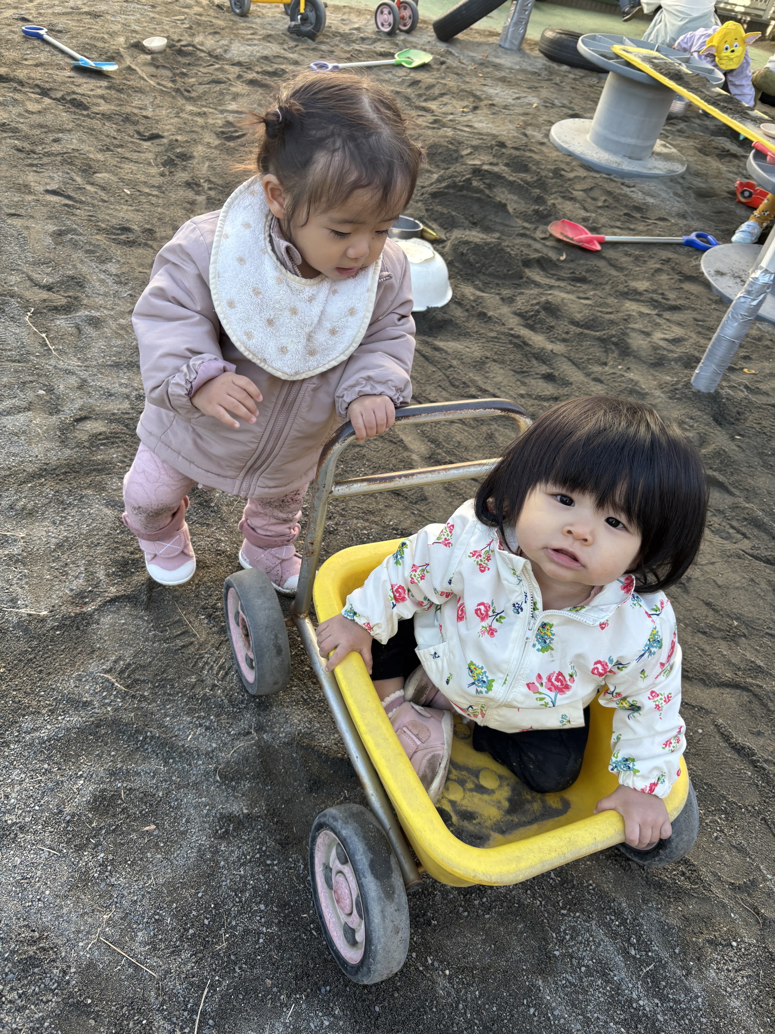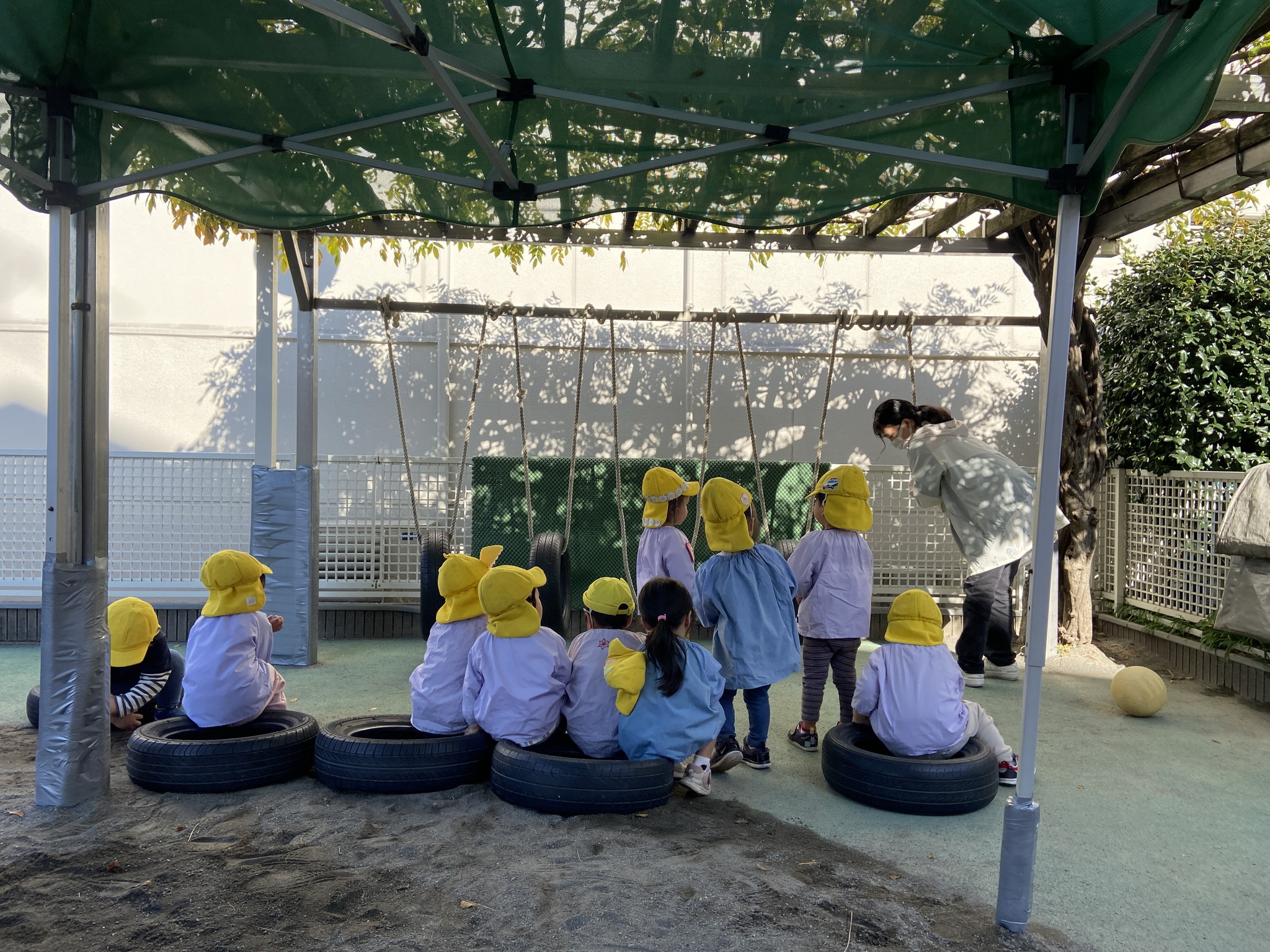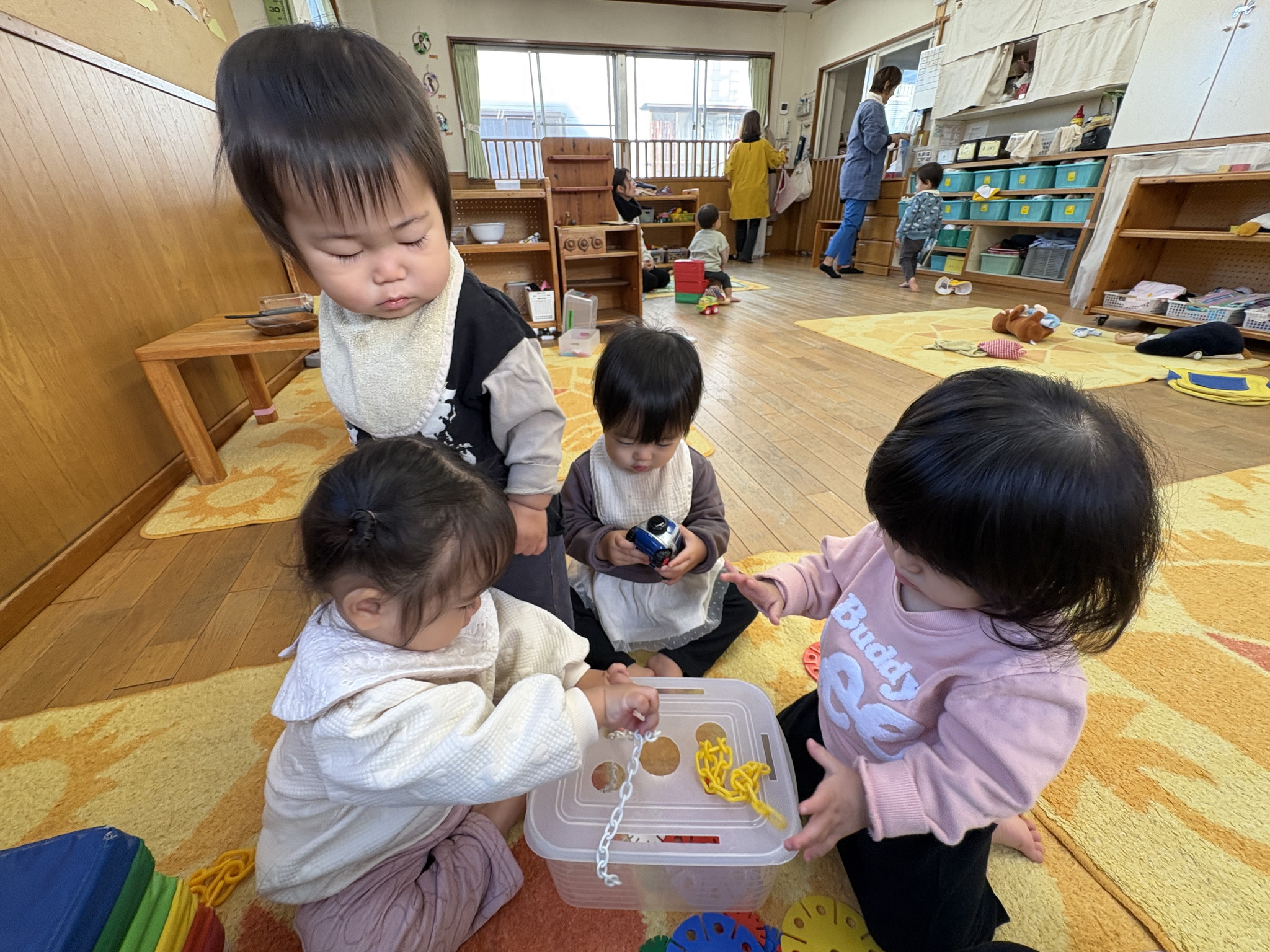 【 ひよこ 】 お友だち大集合^皿^ クリスマスツリーみ~つけた 赤い葉っぱ、きれいだね おさかなさんいた! 押して押して~ お姉さんたちが優しくエスコート♡