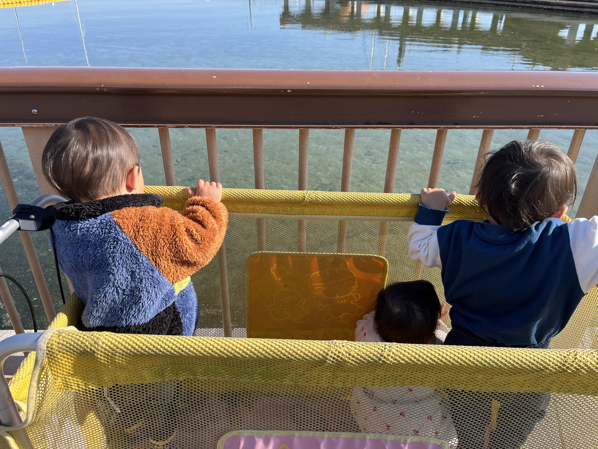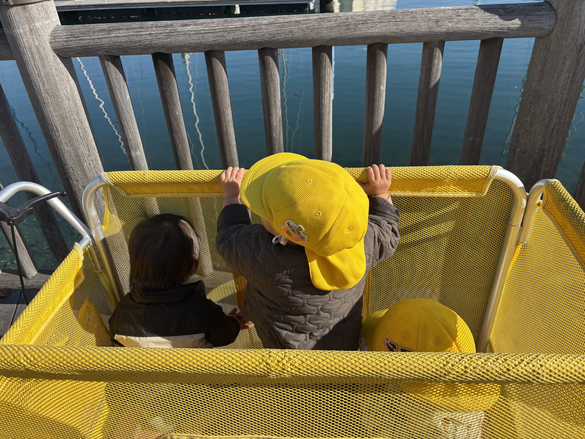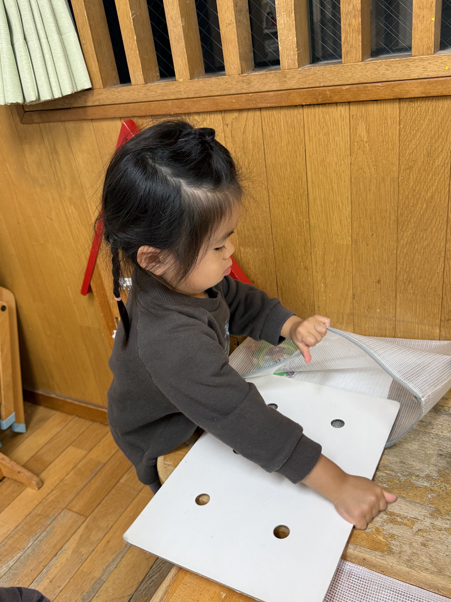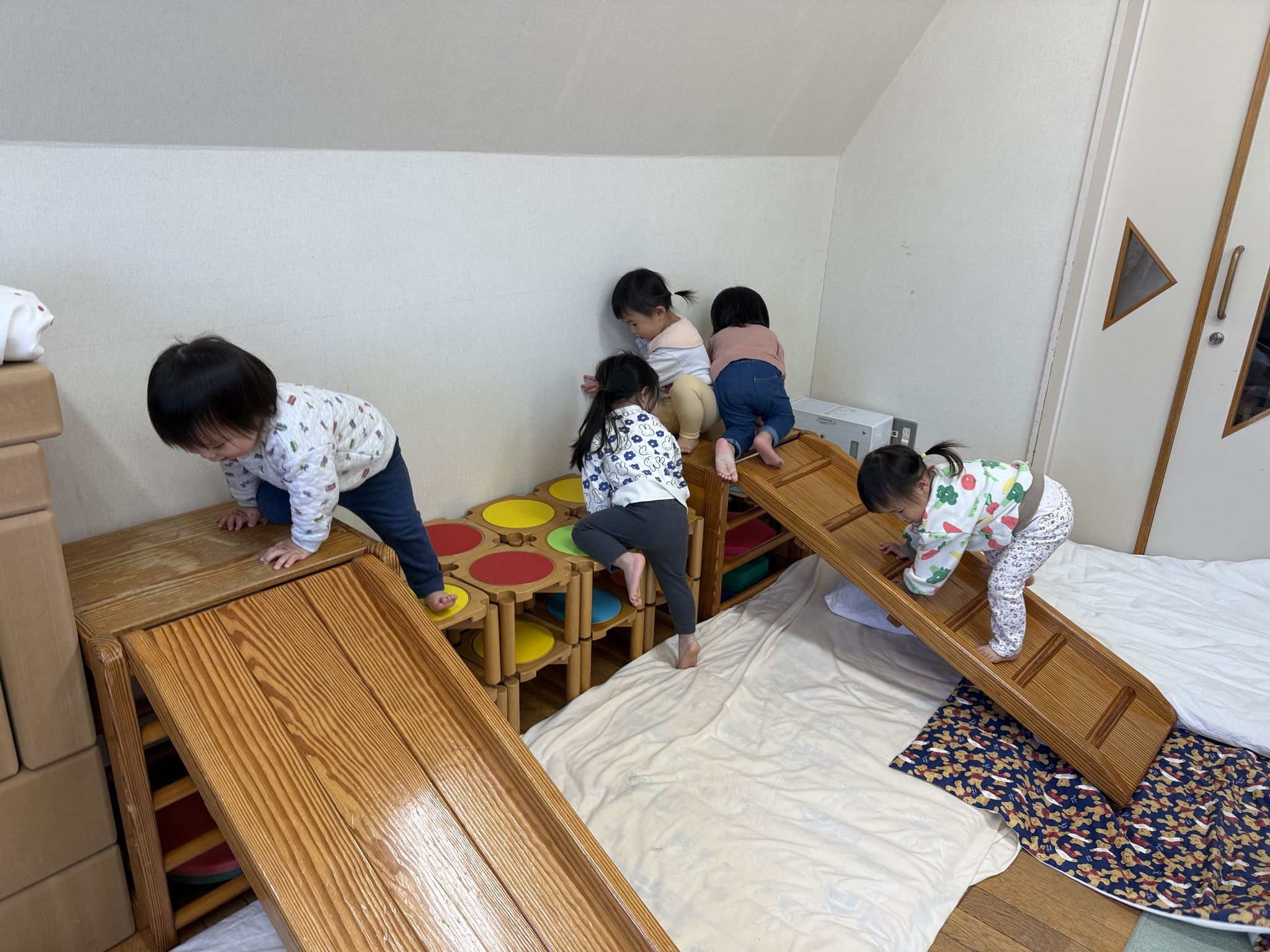 【 ひよこ 】 お友だち大集合^皿^ クリスマスツリーみ~つけた 赤い葉っぱ、きれいだね おさかなさんいた! 押して押して~ お姉さんたちが優しくエスコート♡